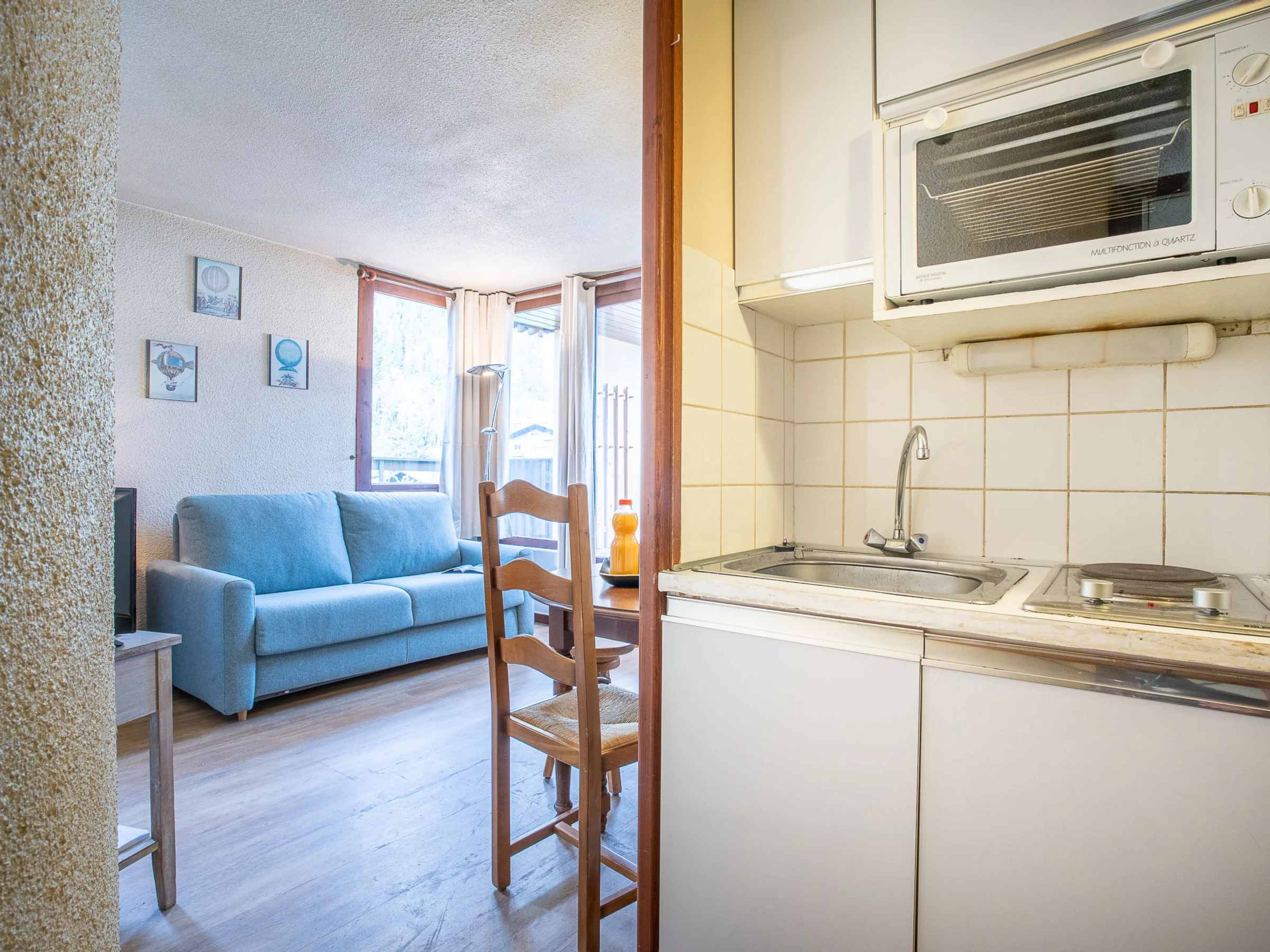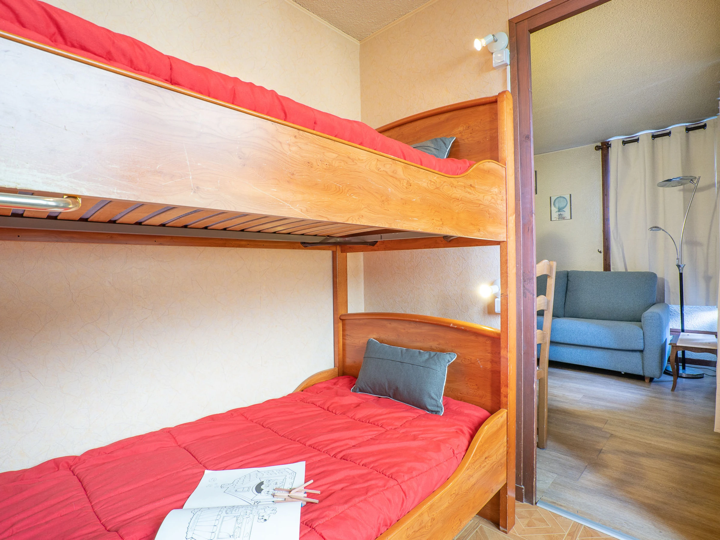 Apartamento de 2 estancias 32 m2 en el 4° piso. Salón-comedor con 1 sofá-cama doble (160 cm, 200 cm de longitud), TV. Salida a la terraza. 1 dorm. con 1 x 2 literas (90 cm, 190 cm de longitud). Rincón-cocina (2 fogones, horno, hervidor de agua eléctrico, microondas, congelador, cafetera eléctrica). Baño/WC. Calefacción eléctrica. Terraza 15 m2, orientación noroeste. Vista bonita a las montañas. El alojamiento dispone de: Internet (Wifi, extra). A tener en cuenta: sin aparcamiento. TV solamente FR. Detector de humo. Pequeña plaza de parking en el subterráneo. Oferta de un particular según el art. 155, IV del CGI.