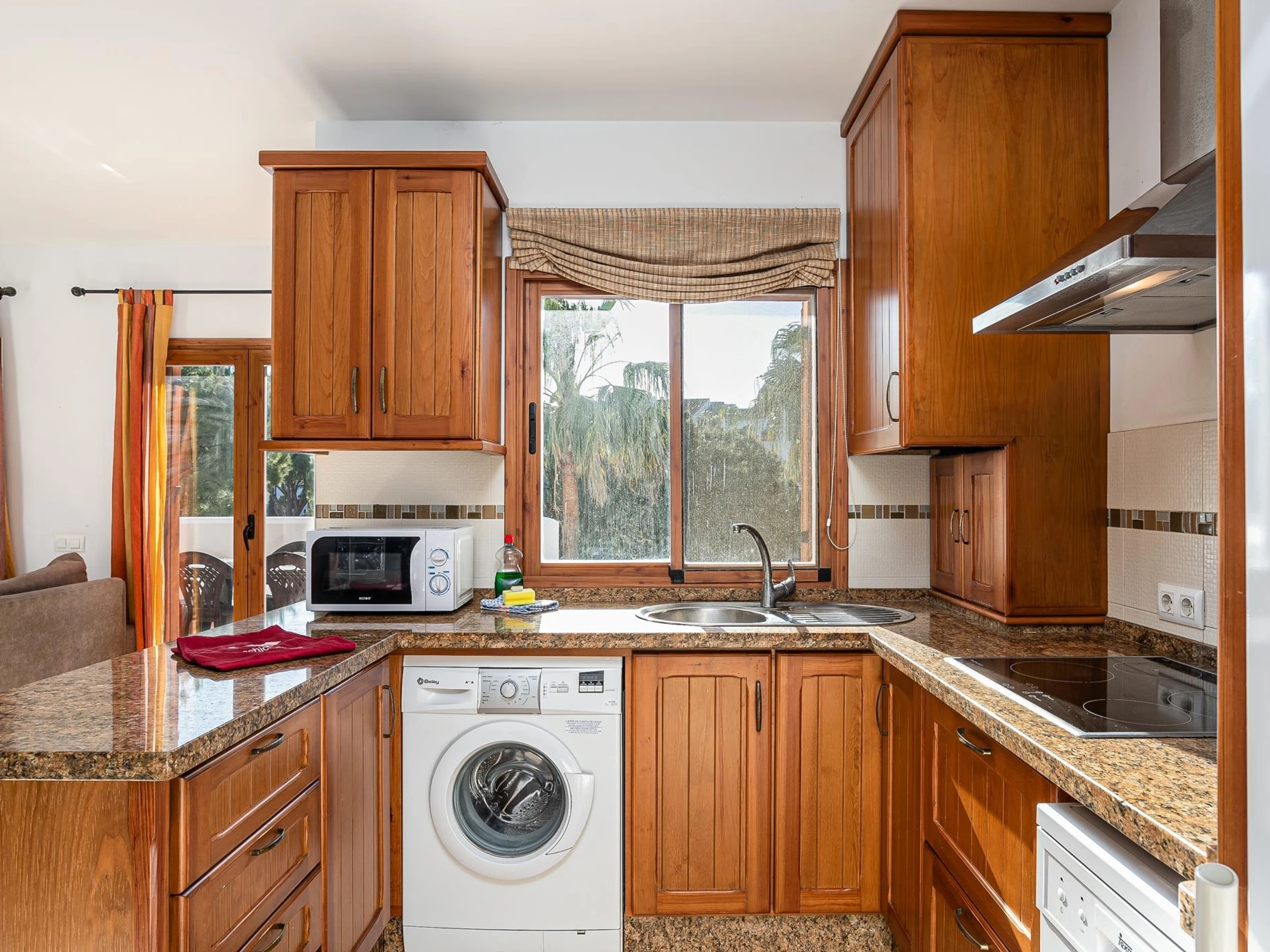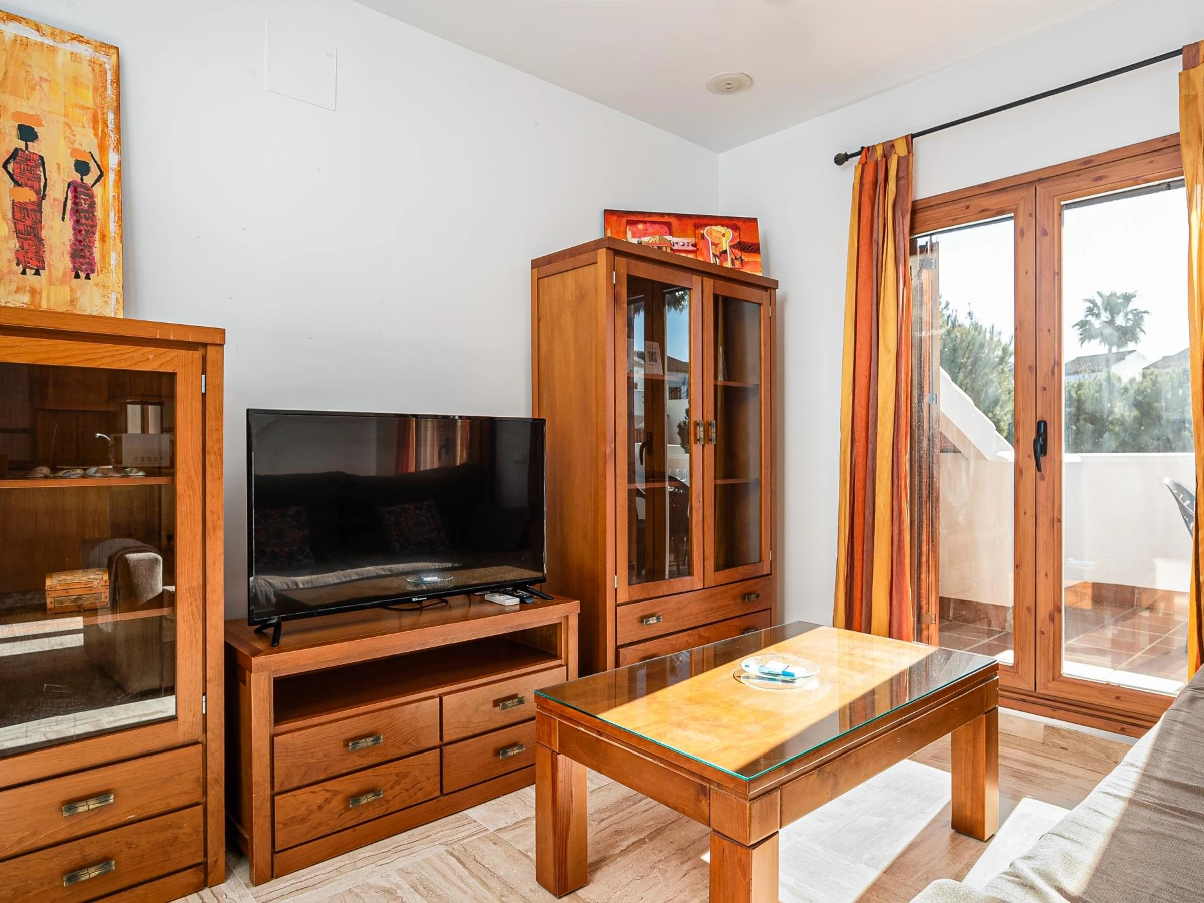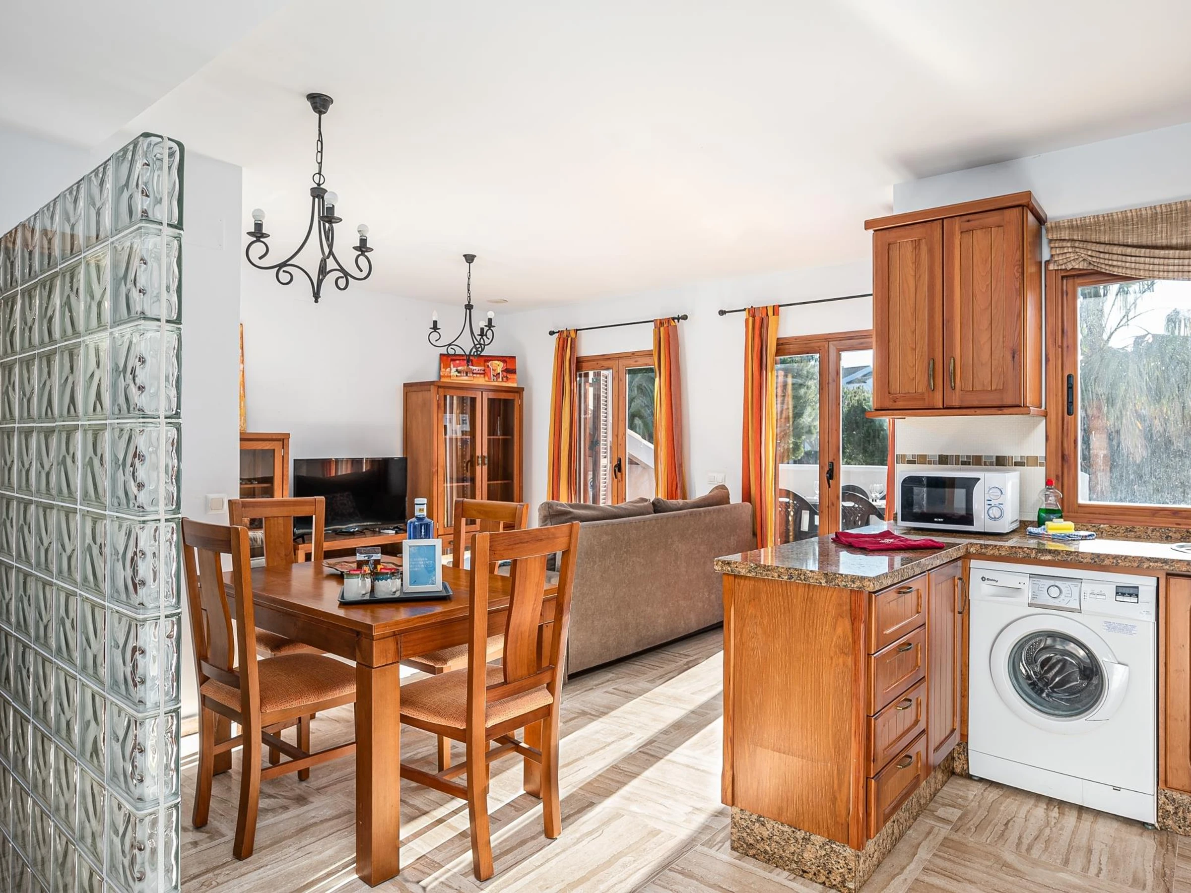Este encantador apartamento destaca por su excelente distribución, diseñada para brindar confort y funcionalidad a sus huéspedes. El salón-comedor, amplio y luminoso, se convierte en el corazón de la vivienda, equipado con grandes ventanales que permiten la entrada de luz natural y conducen directamente a una terraza privada. Desde esta terraza podrás disfrutar de relajantes vistas a las zonas comunes del residencial, que incluyen una magnífica piscina y exuberantes jardines, ideales para momentos de tranquilidad y diversión en un entorno cuidado y atractivo.