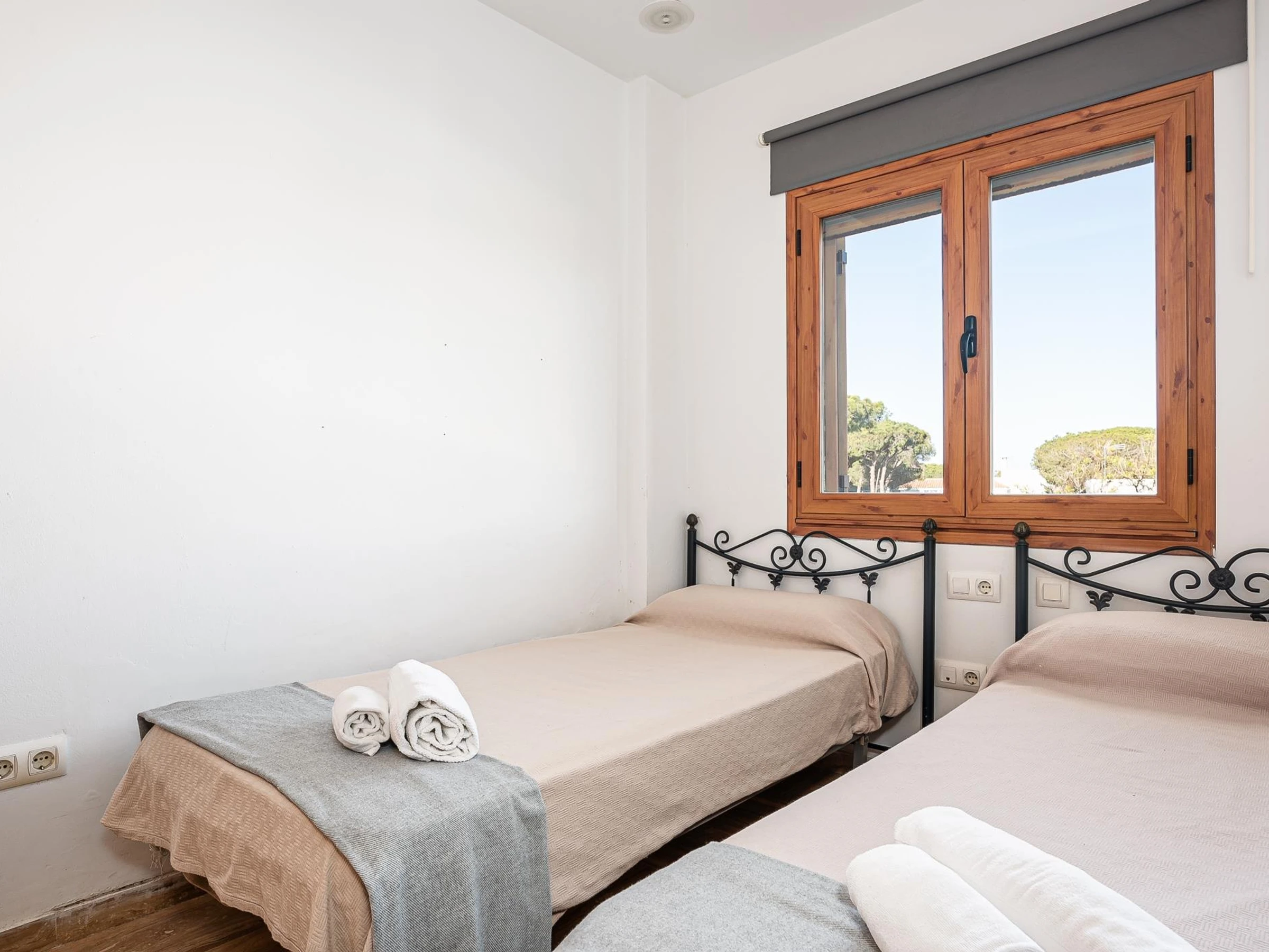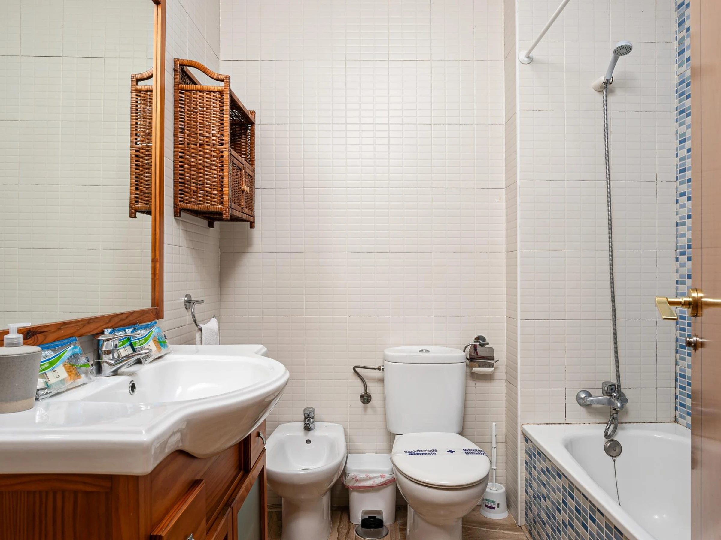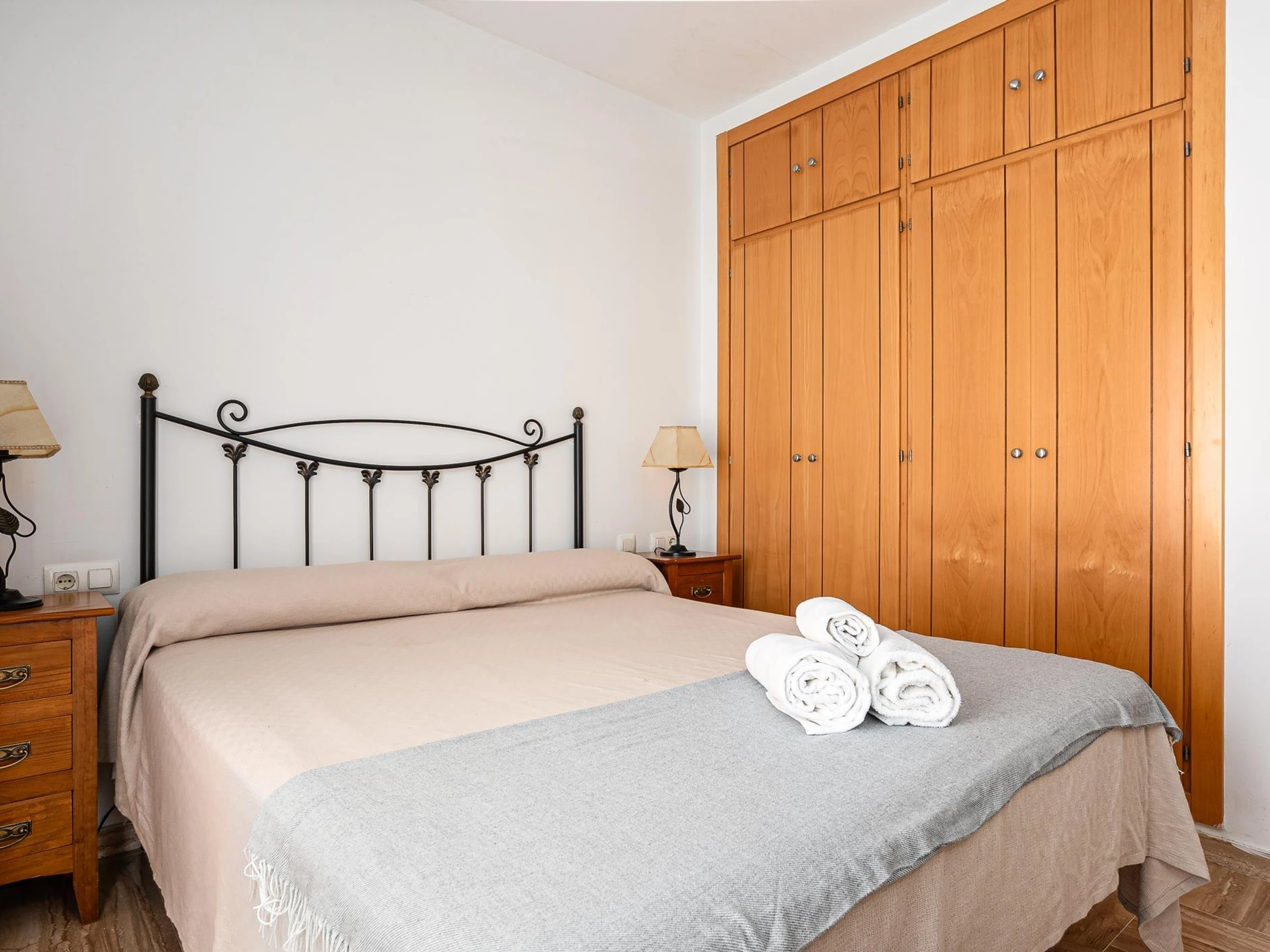 La cocina americana, moderna y perfectamente integrada en el espacio, está equipada con todo lo necesario para preparar deliciosas comidas durante tu estancia. Este apartamento cuenta con dos acogedores dormitorios: el principal, amueblado con una cómoda cama de matrimonio, y el secundario, con dos camas individuales. Ambos dormitorios disponen de armarios empotrados y forrados, proporcionando un amplio espacio para mantener todo organizado durante tu estancia. Además, el baño completo está equipado para cubrir todas tus necesidades, asegurando que cada detalle contribuya a que te sientas como en tu propia casa.