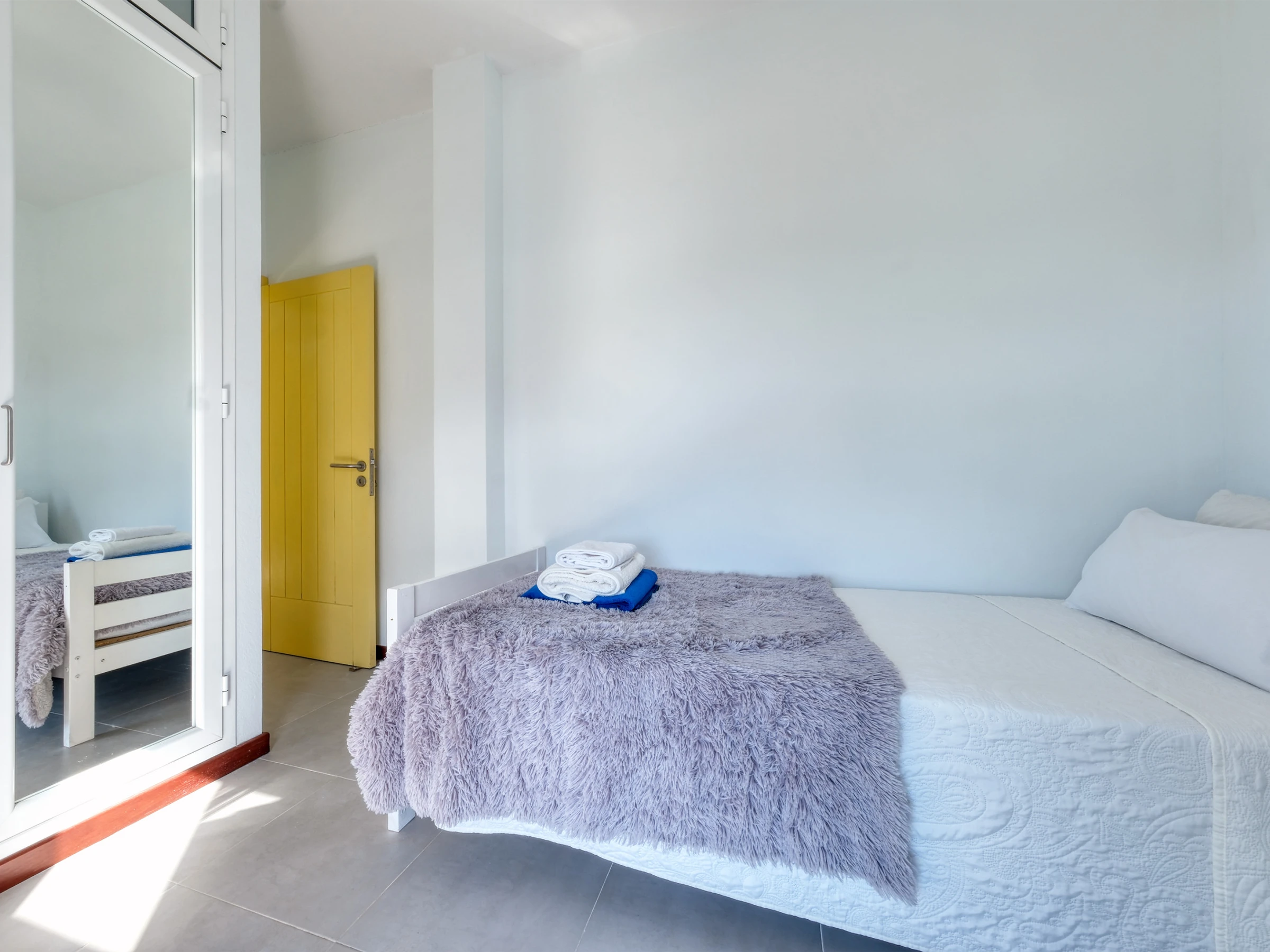 La vivienda dispone de tres habitaciones cuidadosamente distribuidas: una habitación con cama de matrimonio; una habitación con dos camas individuales; y una habitación con una cama individual, ideal para niños o para quienes viajan solos.