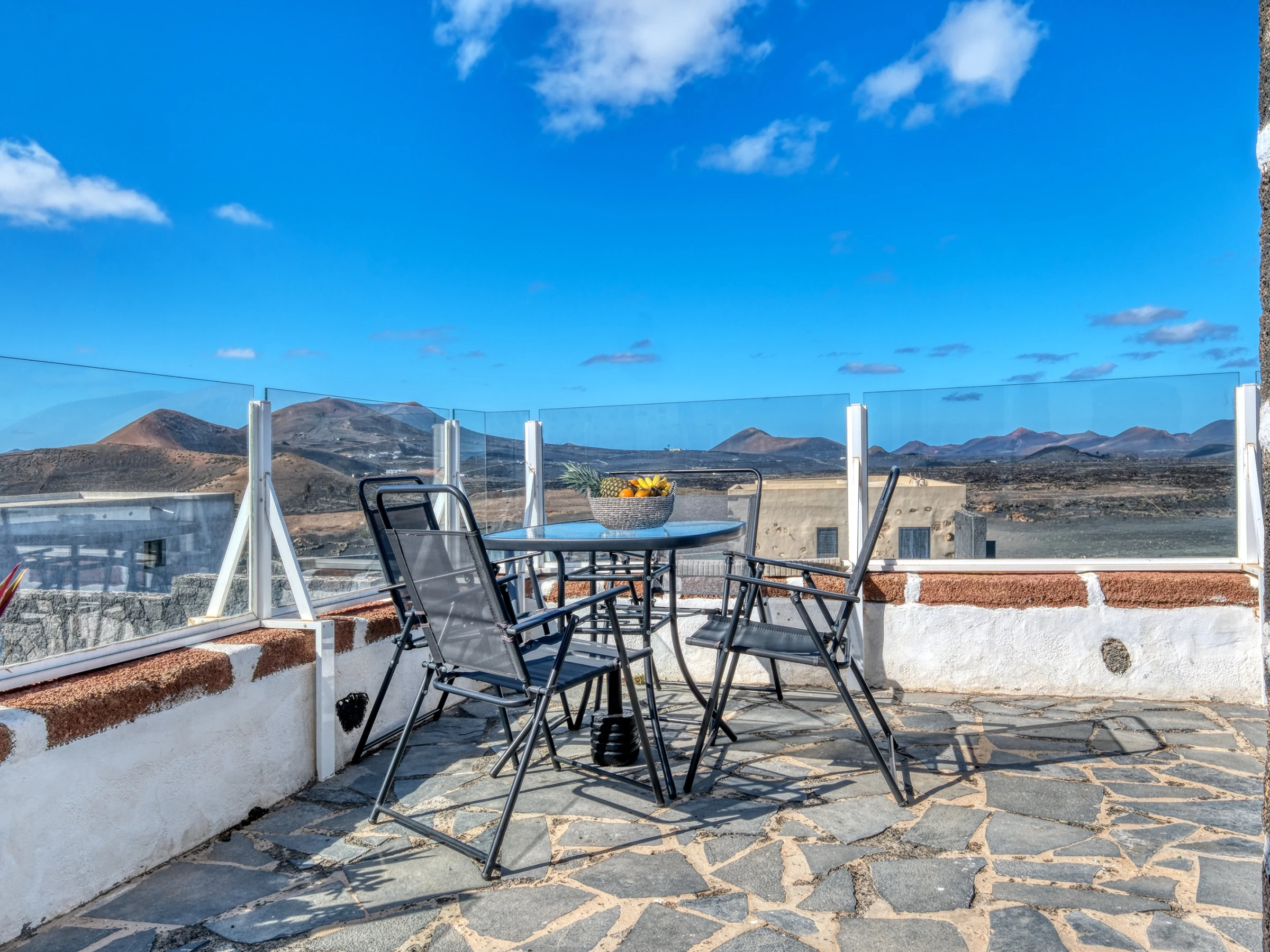 Uno de los grandes atractivos de Casa Mica Rural es su entorno y su terraza, donde podrá relajarse al sol, leer un libro, disfrutar de una comida al aire libre o simplemente contemplar las impresionantes vistas del Parque Nacional de Timanfaya y La Geria.