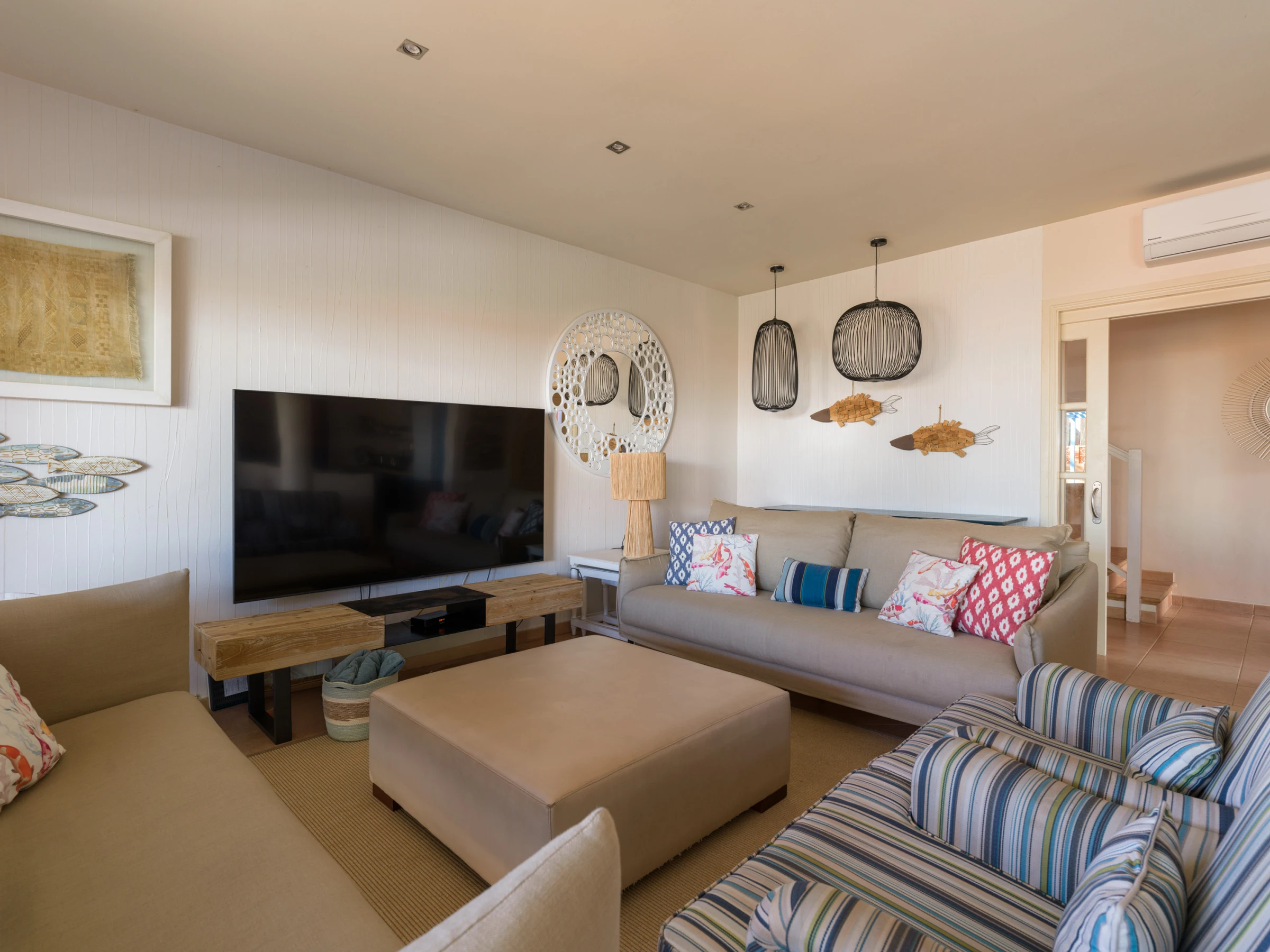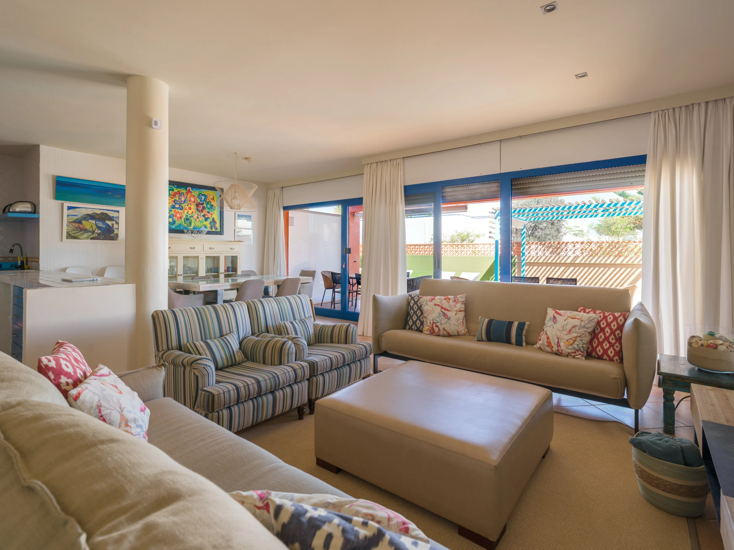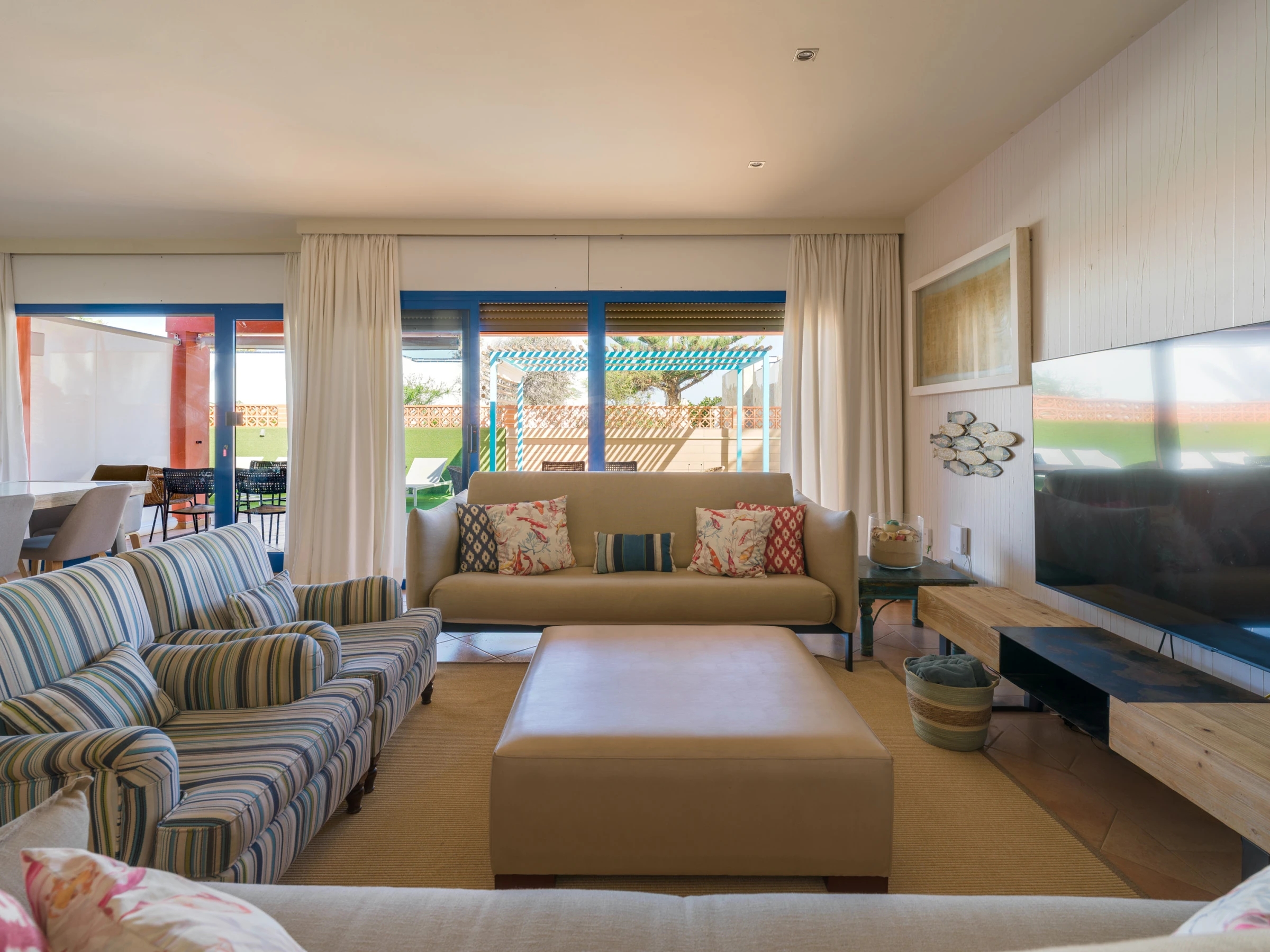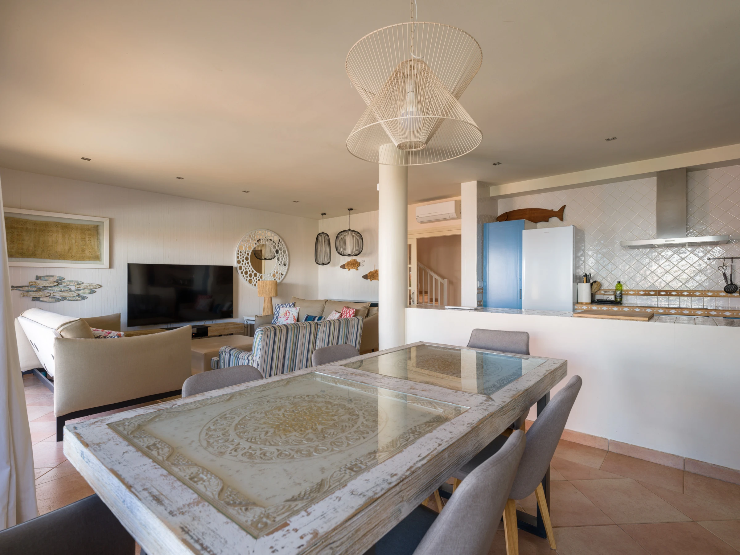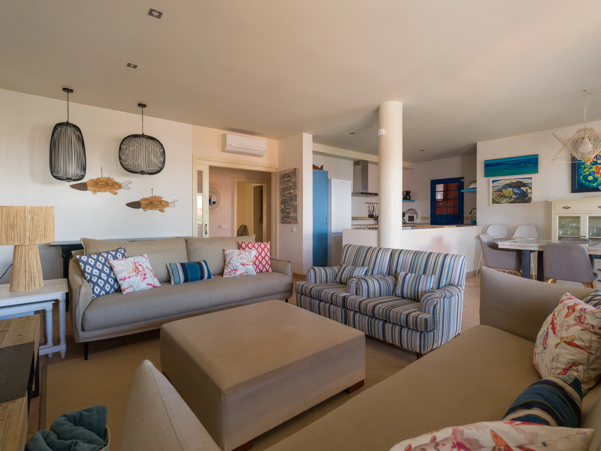La Villa cuenta con 3 dormitorios y 2 baños, con capacidad para hasta 6 personas. Dispone de una cocina americana totalmente equipada con electrodomésticos de última generación, como horno, microondas, lavavajillas y nevera. La zona de comedor y estar es amplia y luminosa, con una cómoda zona de estar.