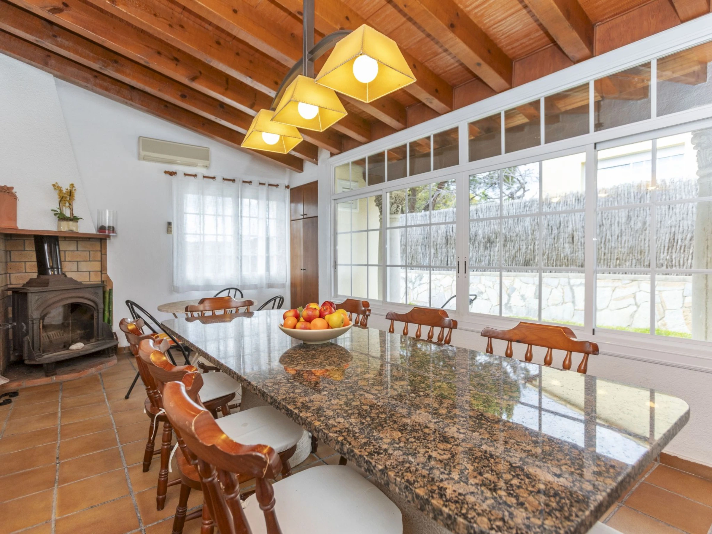 "Bon repos", casa 7 estancias 164 m2 en 2 plantas. Vivienda adecuada para 6 adultos + 3 niños. Espacioso y luminoso, con mobiliario confortable y agradable: salón-comedor grande con chimenea (sólo con función decorativa), mesa de comedor, TV digital y aire acondicionado. Salida a la terraza-jardín. Comedor abierto grande con aire acondicionado. Salida a la terraza-jardín. 1 dorm. doble, grande con 1 cama de matrimonio (150 cm, 200 cm de longitud), baño/WC y aire acondicionado. 1 dorm. doble con 1 cama de matrimonio (135 cm, 190 cm de longitud), aire acondicionado. Cocina (horno, lavavajillas, 3 placas de vitrocerámica, tostadora, hervidor de agua eléctrico, microondas, cafetera eléctrica, Cápsulas de café (Nespresso)) con mesa de comedor, aire acondicionado. Ducha/WC. Planta superior: 1 dorm. doble con 1 cama de matrimonio (135 cm, 190 cm de longitud), aire acondicionado. 1 dorm. con 1 cama (90 cm, 190 cm de longitud). 1 dorm. con 2 camas (90 cm, 190 cm de longitud). Baño/WC. Calefacción gasóleo. Suelo de piedra natural. Terraza grande, jardín grande. Muebles de terraza, barbacoa, tumbonas, porche, rincón para sentarse. Vista parcial al mar. El alojamiento dispone de: lavadora, plancha, trona, cuna, secador de pelo. Internet (Wifi, gratis). Plaza de aparcamiento (1 coche), garaje en el mismo terreno (1 coche). A tener en cuenta: adecuado para familias. Casa para no fumadores. TV solamente ES. Entrada privada. [hidden] // Reg. Nr.: ESFCTU00004302600013861600000000000000[hidden]-638