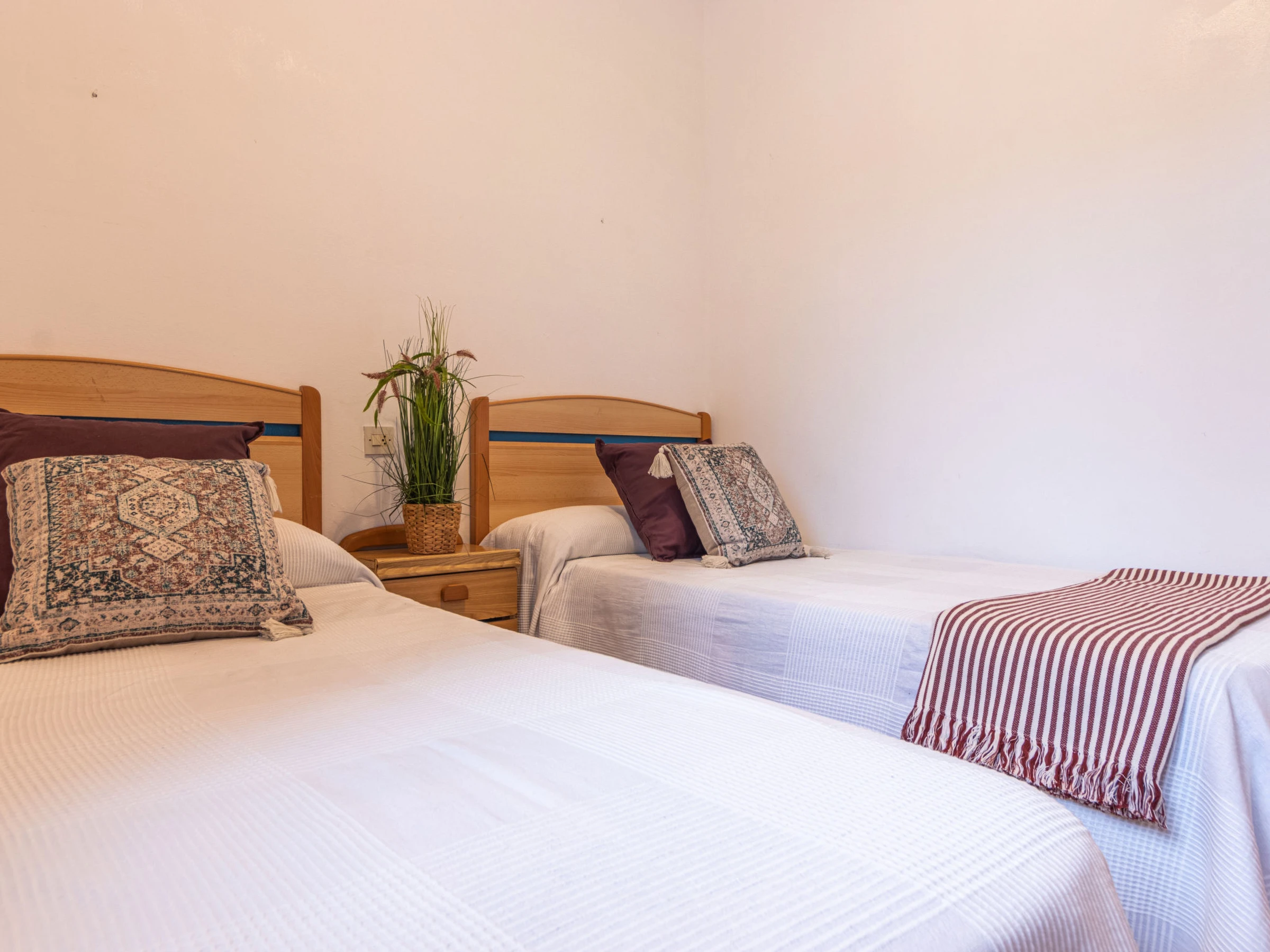 "Tu y Yo", villa 3 estancias 47 m2. Con mobiliario confortable y rústico: salón-comedor con mesa de comedor, TV digital, canales internacionales, aire acondicionado y bomba de calor, caliente. Salida al jardín, a la terraza. 1 dorm. doble con 1 cama de matrimonio (135 cm, 180 cm de longitud). 1 dorm. doble con 2 camas (90 cm, 180 cm de longitud). Cocina abierta (4 fogones, horno, tostadora, hervidor de agua eléctrico, microondas, cafetera eléctrica) con barra americana. Salida a la terraza-jardín. Media bañera/WC. Aire acondicionado, aire caliente. Calefacción no en todas las estancias. Muebles de terraza, barbacoa, tumbonas, rincón para sentarse. Vista al pueblo. El alojamiento dispone de: lavadora, plancha, mosquitera, secador de pelo. Internet (Wifi, gratis). Plaza de aparcamiento junto a la casa. Adecuado para familias. Permitido máximo 2 mascotas / perros. [hidden] // Reg. Nr.: ESFCTU0000430190002326060000000000000000[hidden]4