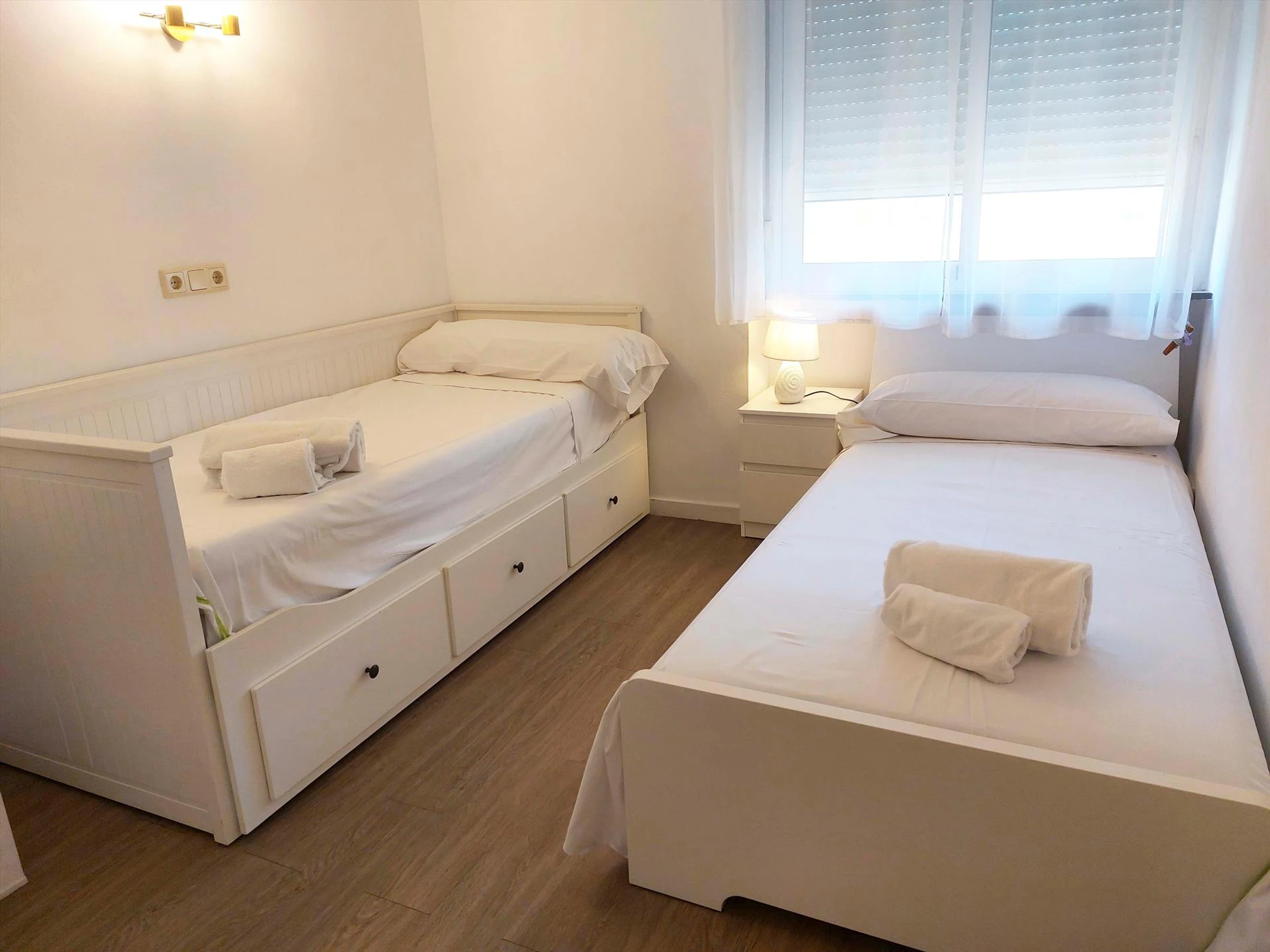 * dormitorio con cama nido y cama individual con aire acondicionado