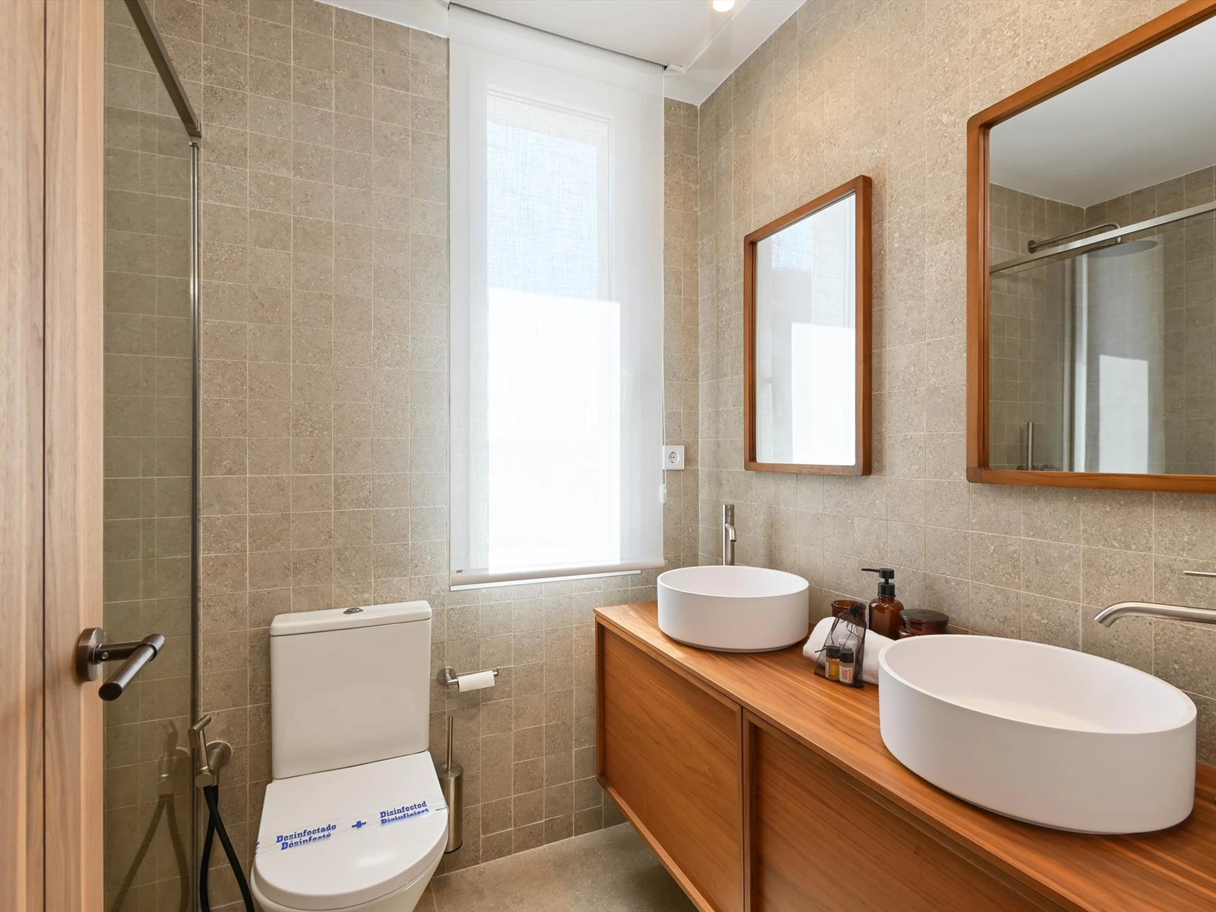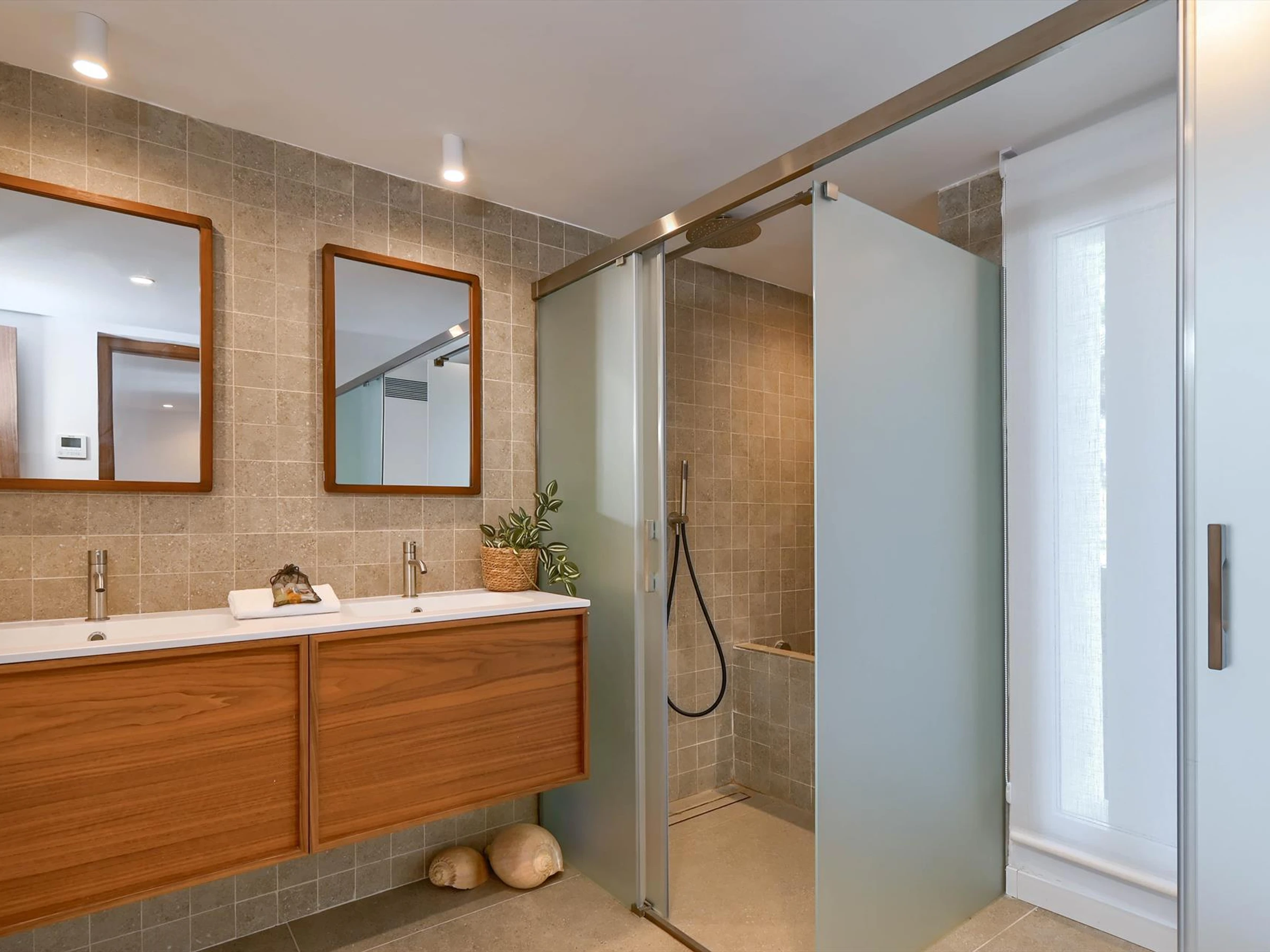 * 2 baños en suite, cada uno con lavabo simple, ducha y aseo