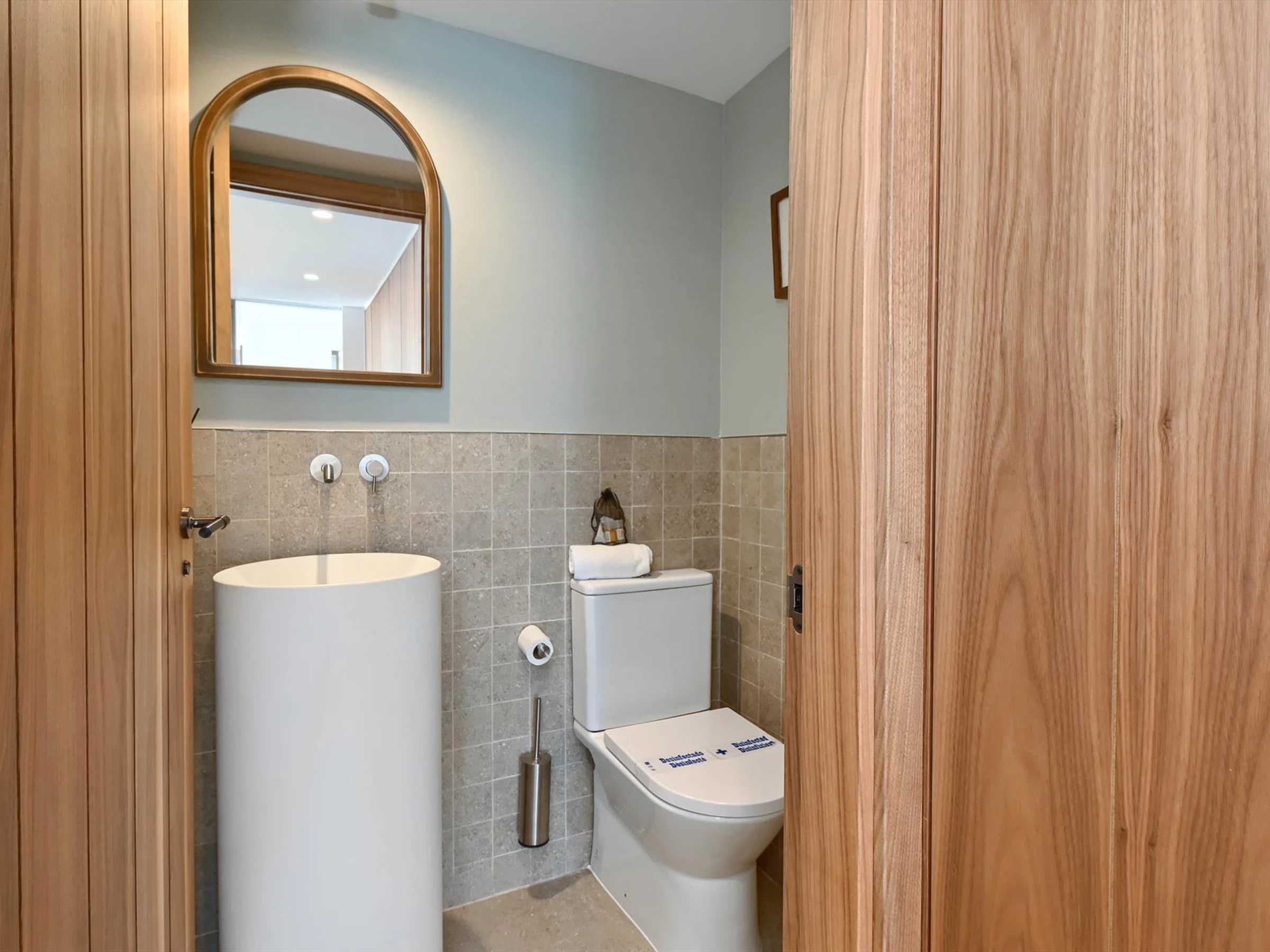 * baño con lavabo simple y aseo Exterior de esta villa de lujo