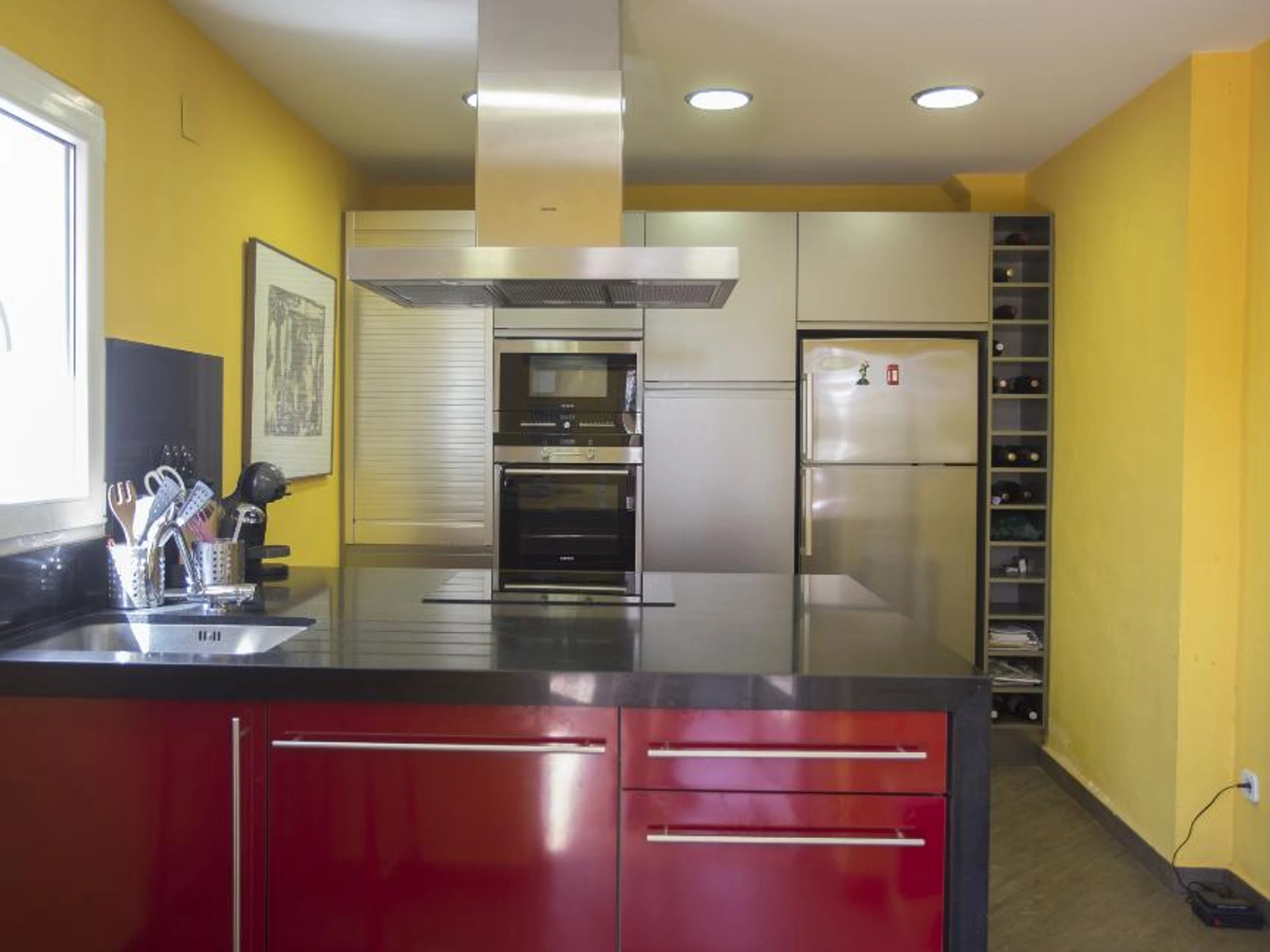 CocinaCocina con vitrocerámica, horno eléctrico, microondas, lavavajillas, frigorífico, congelador, cafetera, hervidor eléctrico, batidora, tostadora y exprimidor.