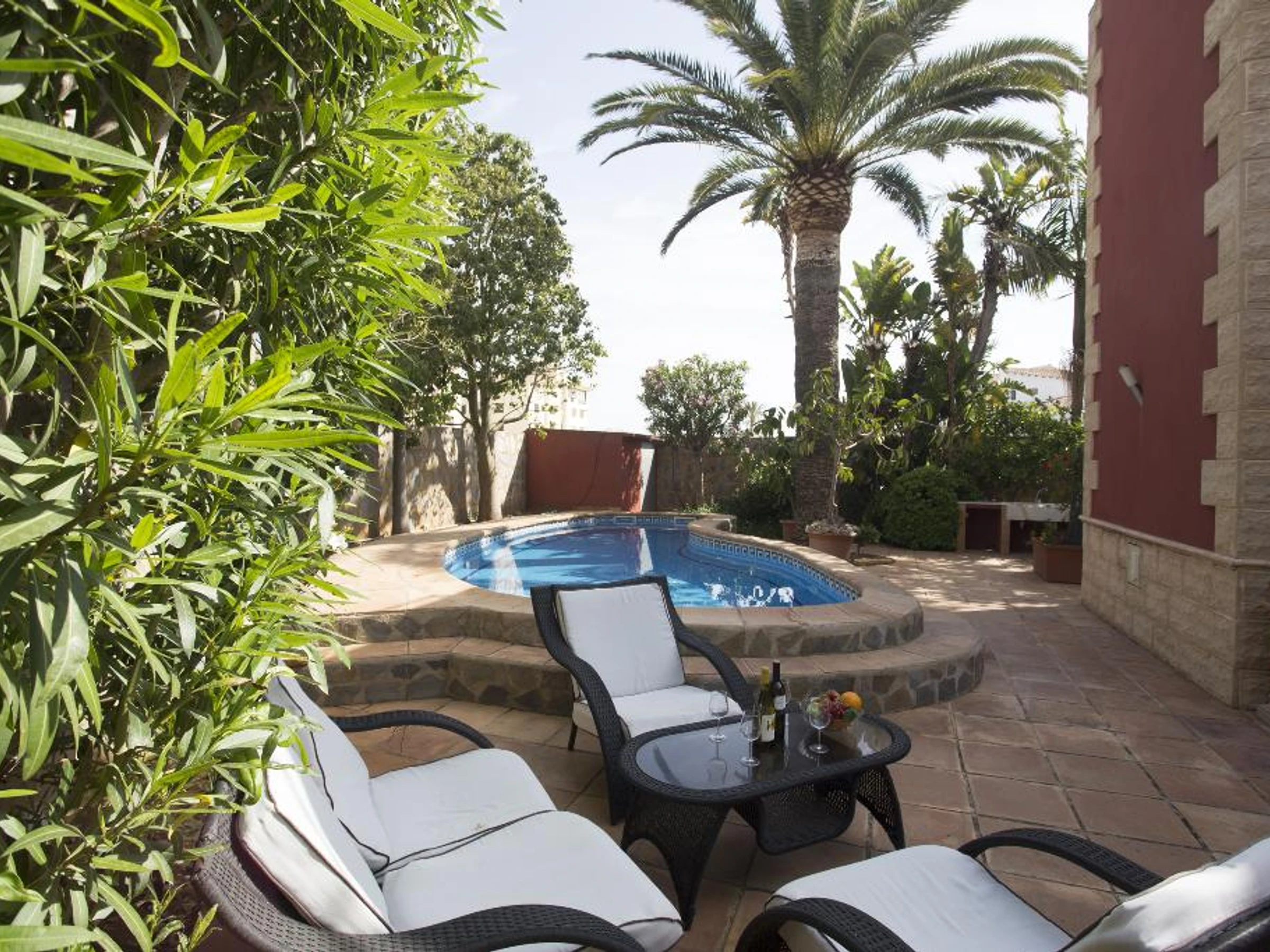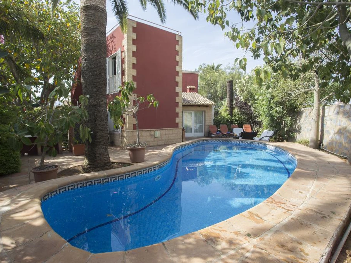 Villa clásica y confortable con piscina privada en Denia, en la Costa Blanca, España para 6 personas. La casa está situada en una zona residencial de playa, cerca de restaurantes y bares, tiendas y supermercados, a 100 m de la playa de Las Marinas, Denia y a 0,1 km de Mediterraneo, Denia.