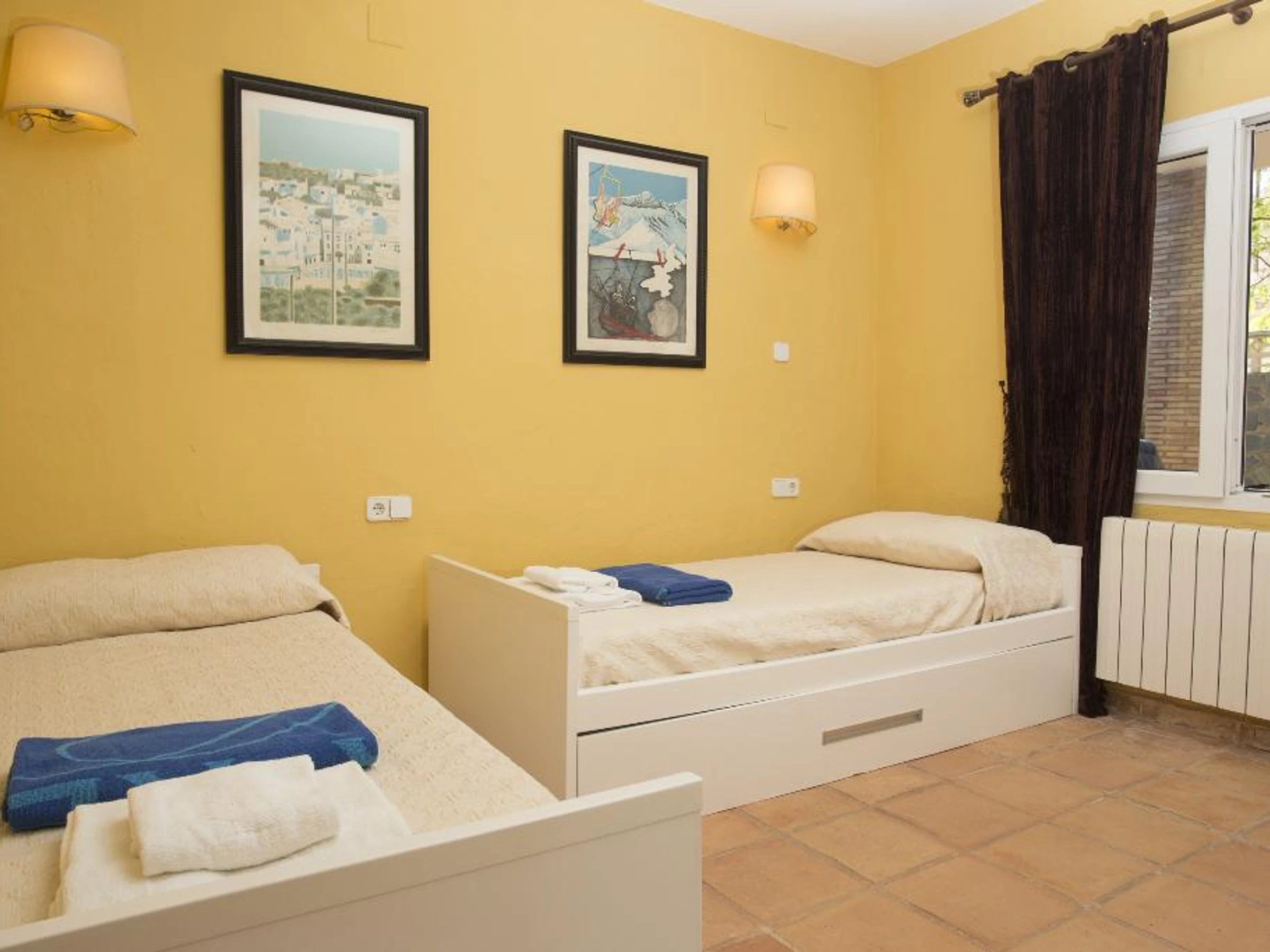 Dormitorios y bañosdormitorio con aire acondicionado, cama doble y baño en suite2 dormitorios, cada uno con 2 camas individuales.cuarto de baño con lavabo individual, bañera, ducha y WCcuarto de baño privado con lavabo individual, ducha y WC