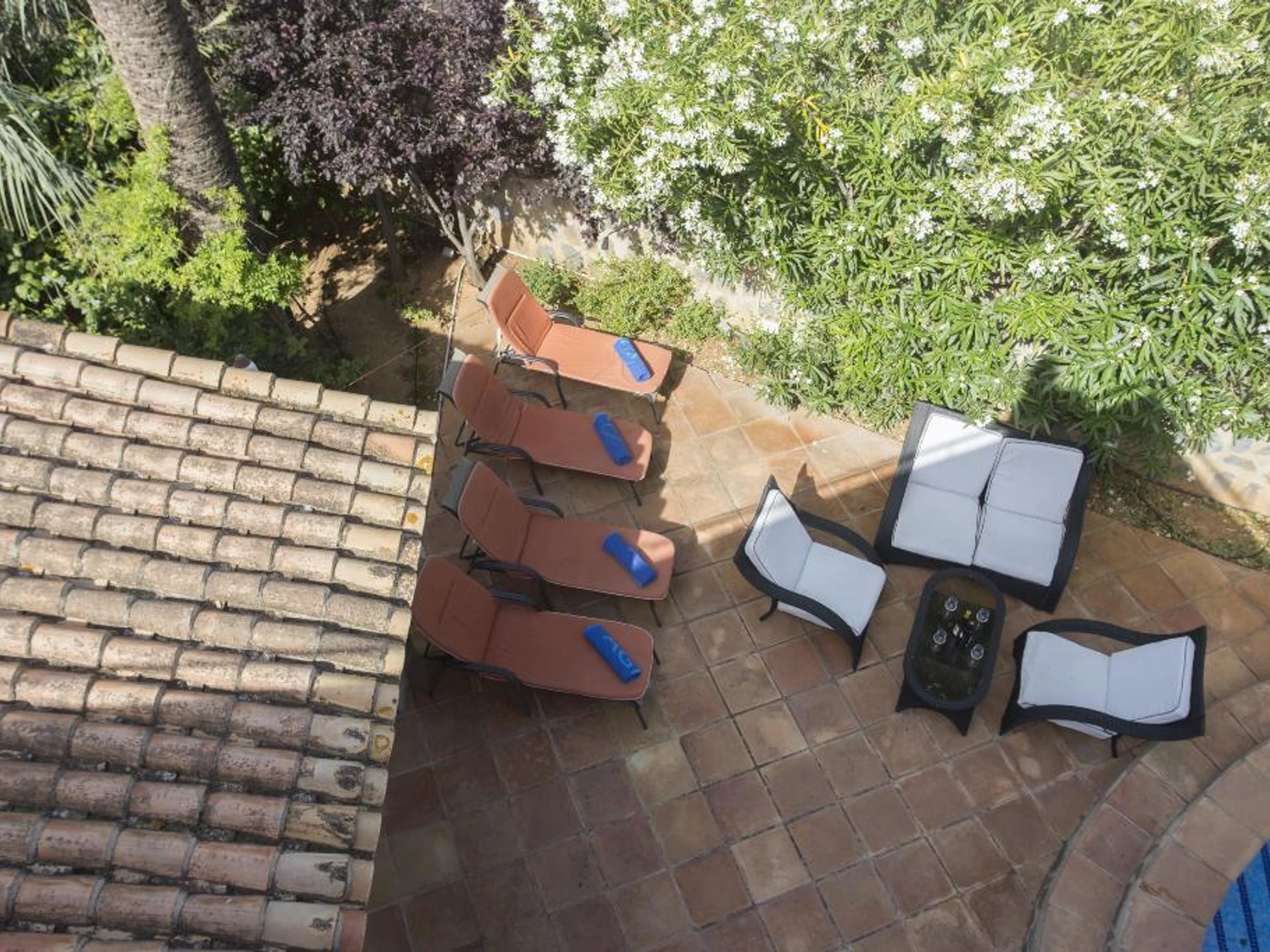Exteriores de la villaparcela cerradaPiscina privada en forma de riñón de 8m x 4m y 2m de profundidad.hermoso jardín con césped, grava, árboles y muebles de jardín con tumbonas2 terrazas, de las cuales 1 cubiertaparilladucha al aire libresala de estar exterior y comedor exterior3 estacionamientos privados cerradosazotea