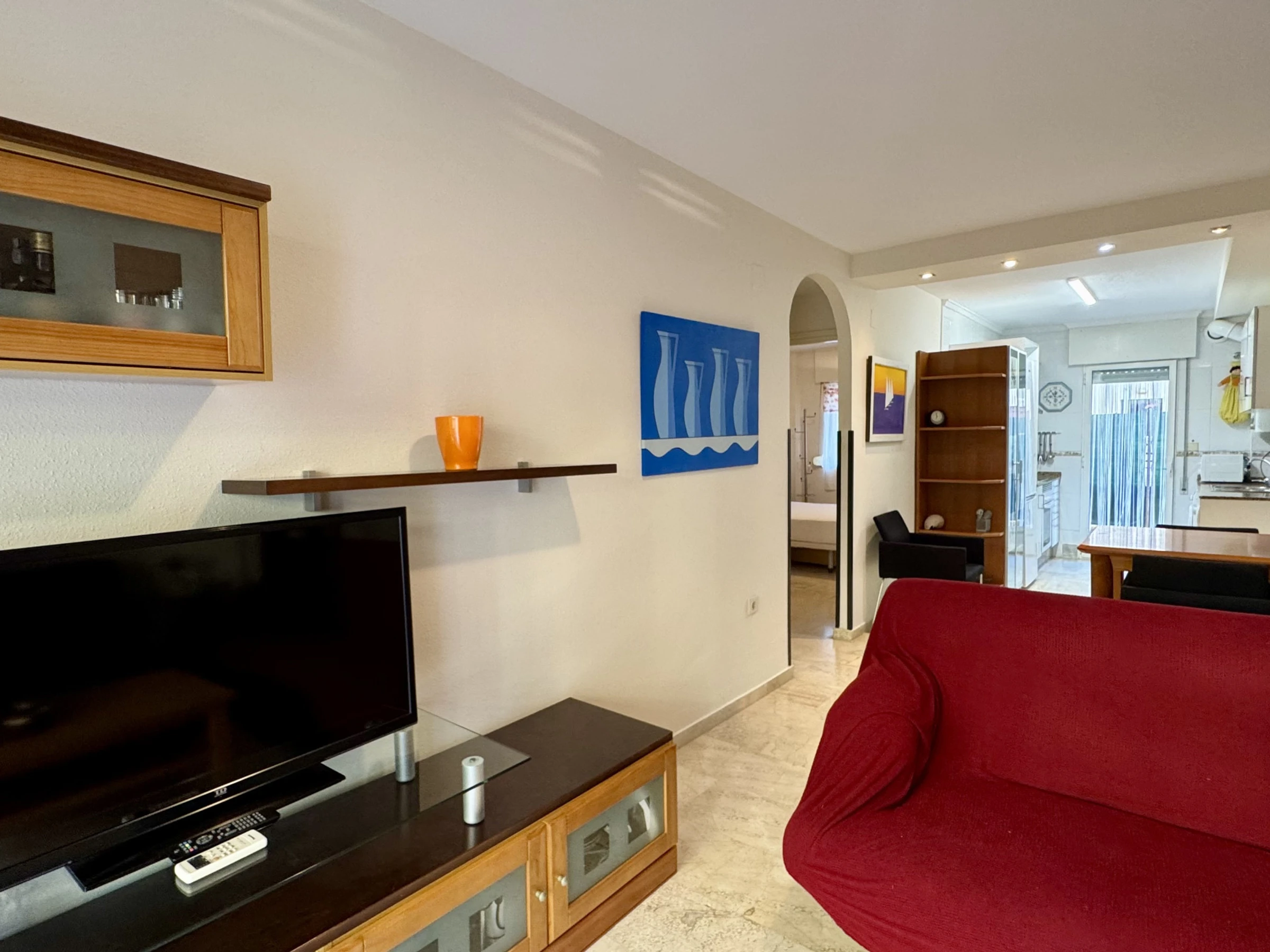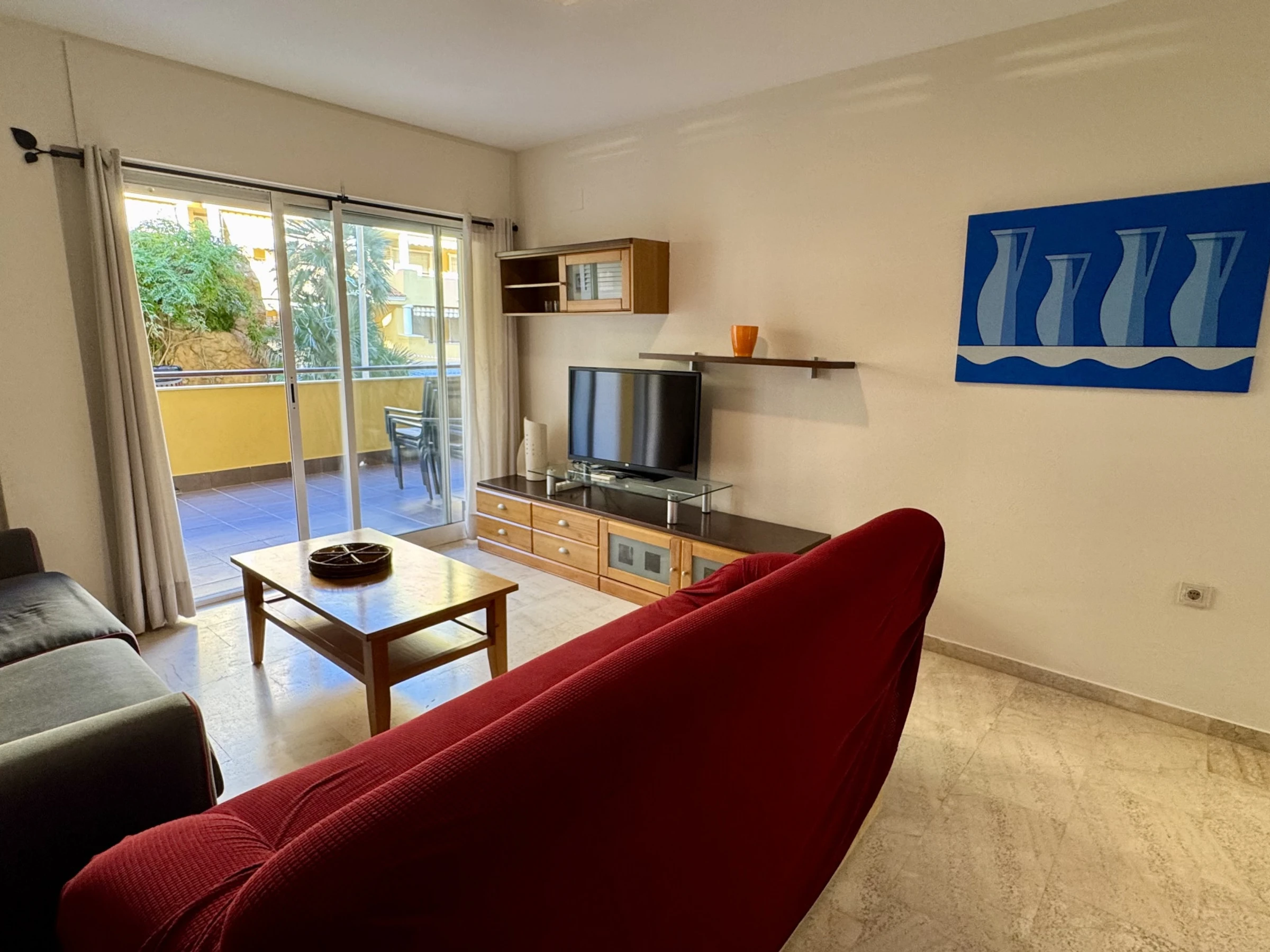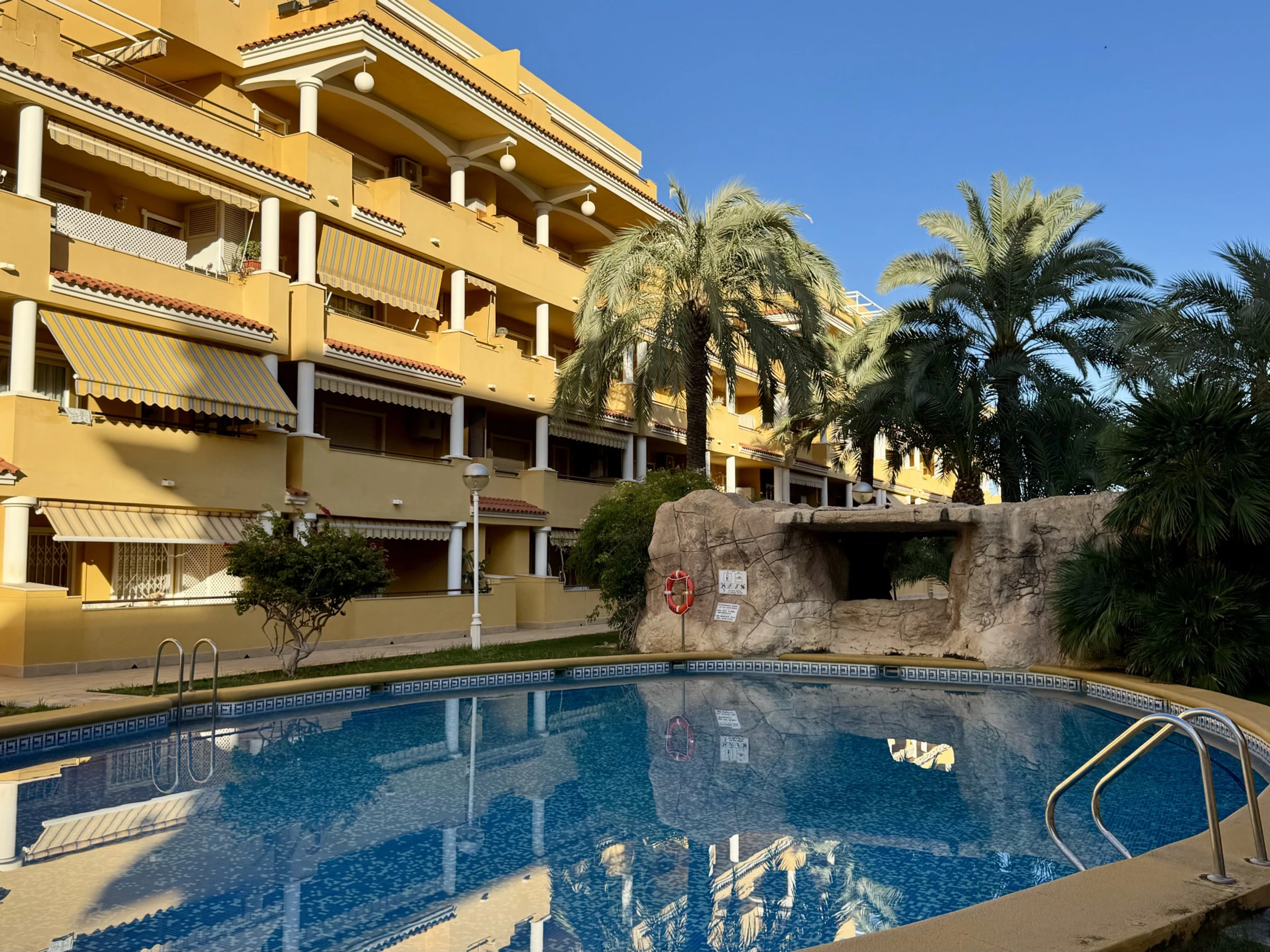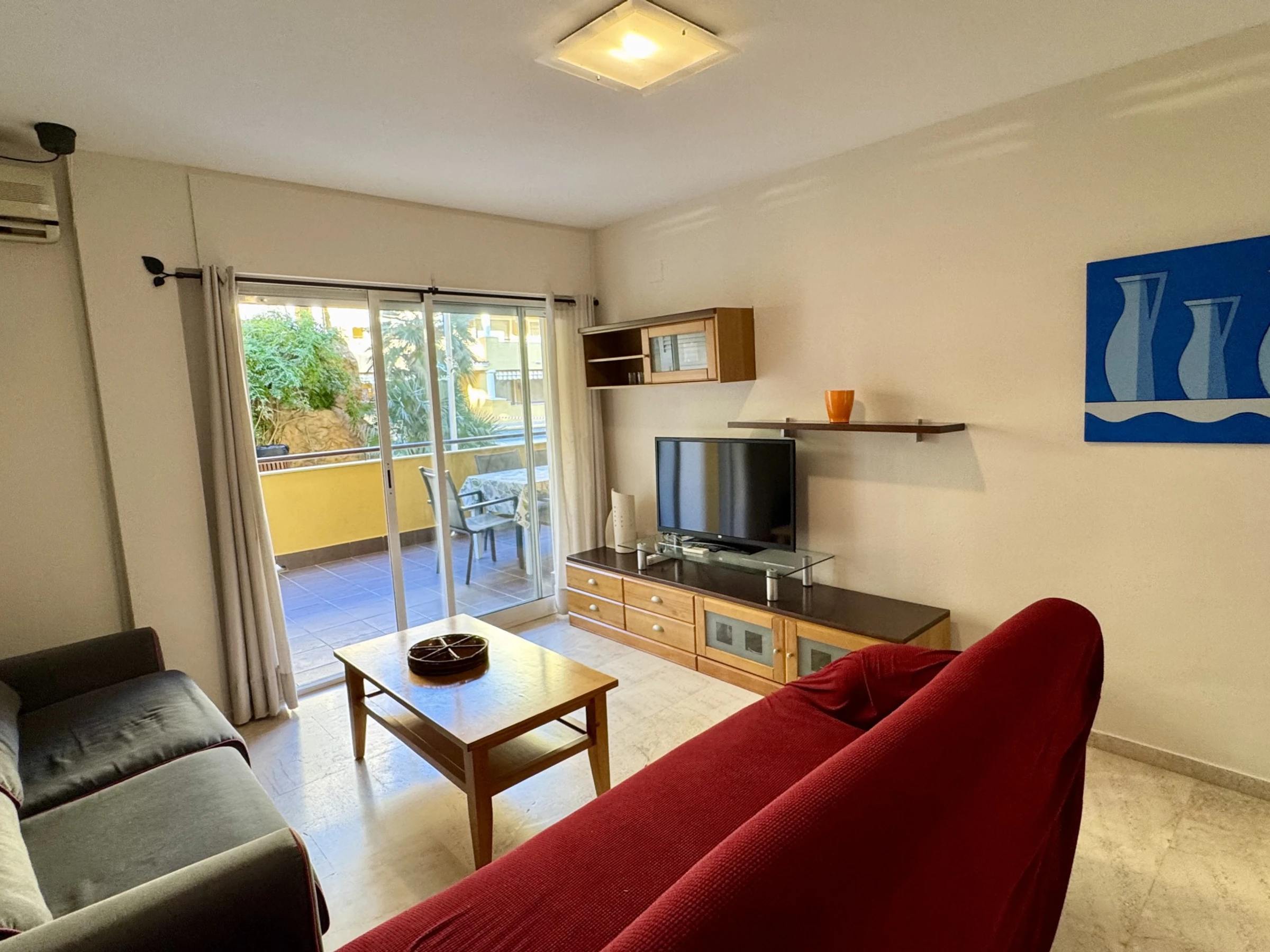 Este bonito apartamento en Denia tiene capacidad para 5 personas, con 2 dormitorios y 75 m² de espacio. Está ubicado en una zona tranquila y ofrece todo lo necesario para unas vacaciones cómodas, como ascensor, aire acondicionado, WiFi gratuito y una terraza de 10 m² con mobiliario de jardín para disfrutar del buen tiempo.