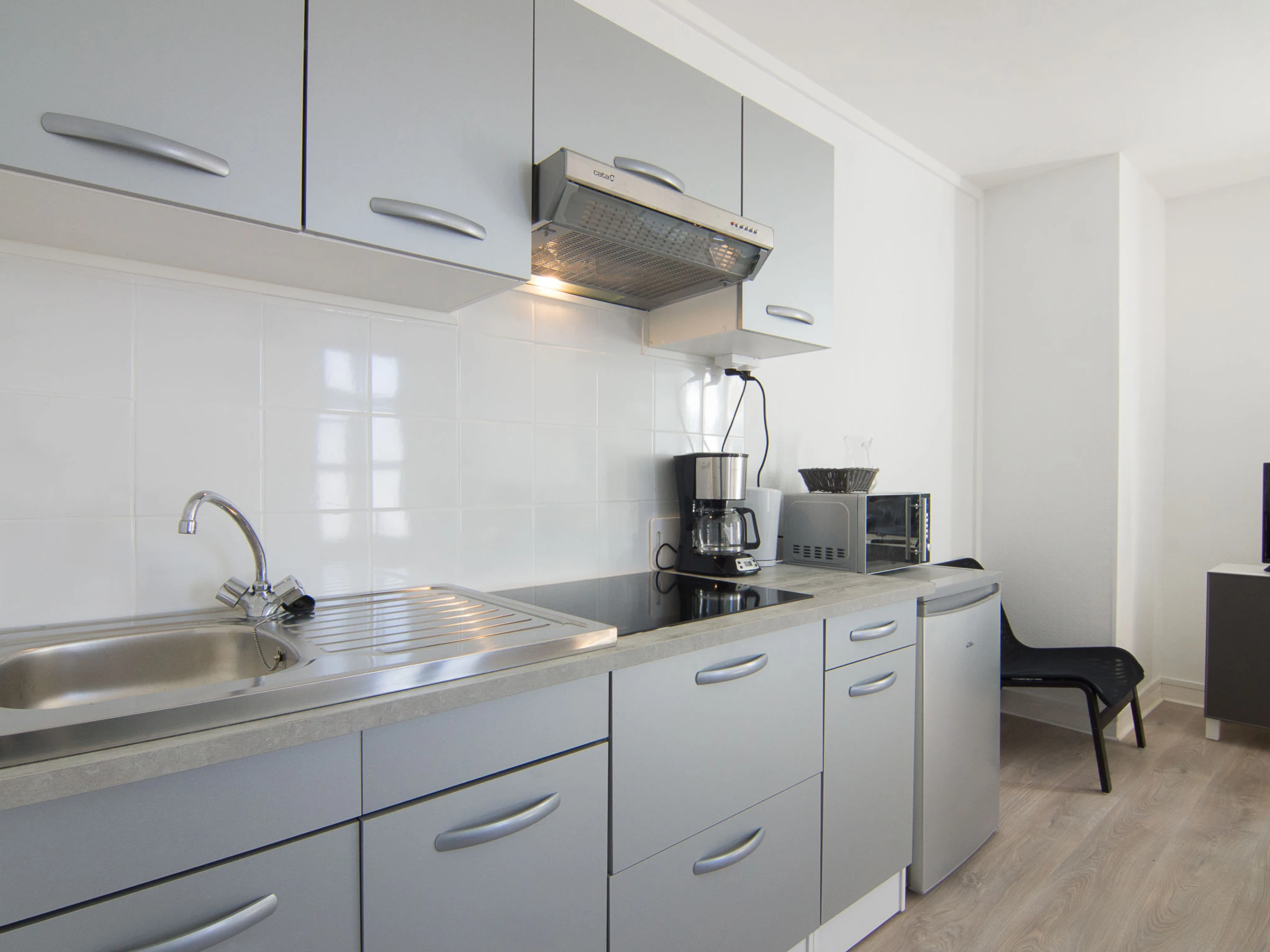 Apartamento de 2 estancias 37 m2, en la planta baja. Con mobiliario sencillo y funcional: salón-comedor con 1 sofá-cama doble (140 cm, 190 cm de longitud), TV (pantalla plana). 1 dorm. con 1 cama doble (140 cm, 190 cm de longitud). Altillo con 1 cama (90 cm, 190 cm de longitud). Rincón-cocina (4 placas de vitrocerámica, tostadora, hervidor de agua eléctrico, microondas, cafetera eléctrica). Baño, WC separado. Calefacción eléctrica. A tener en cuenta: apartamento para no fumadores. Permitido máximo 1 mascota pequeña / perro. Detector de humo. En lugar de un dormitorio cerrado, algunos espacios para dormir están situados en una zona diáfana (galería, alcoba, etc.).