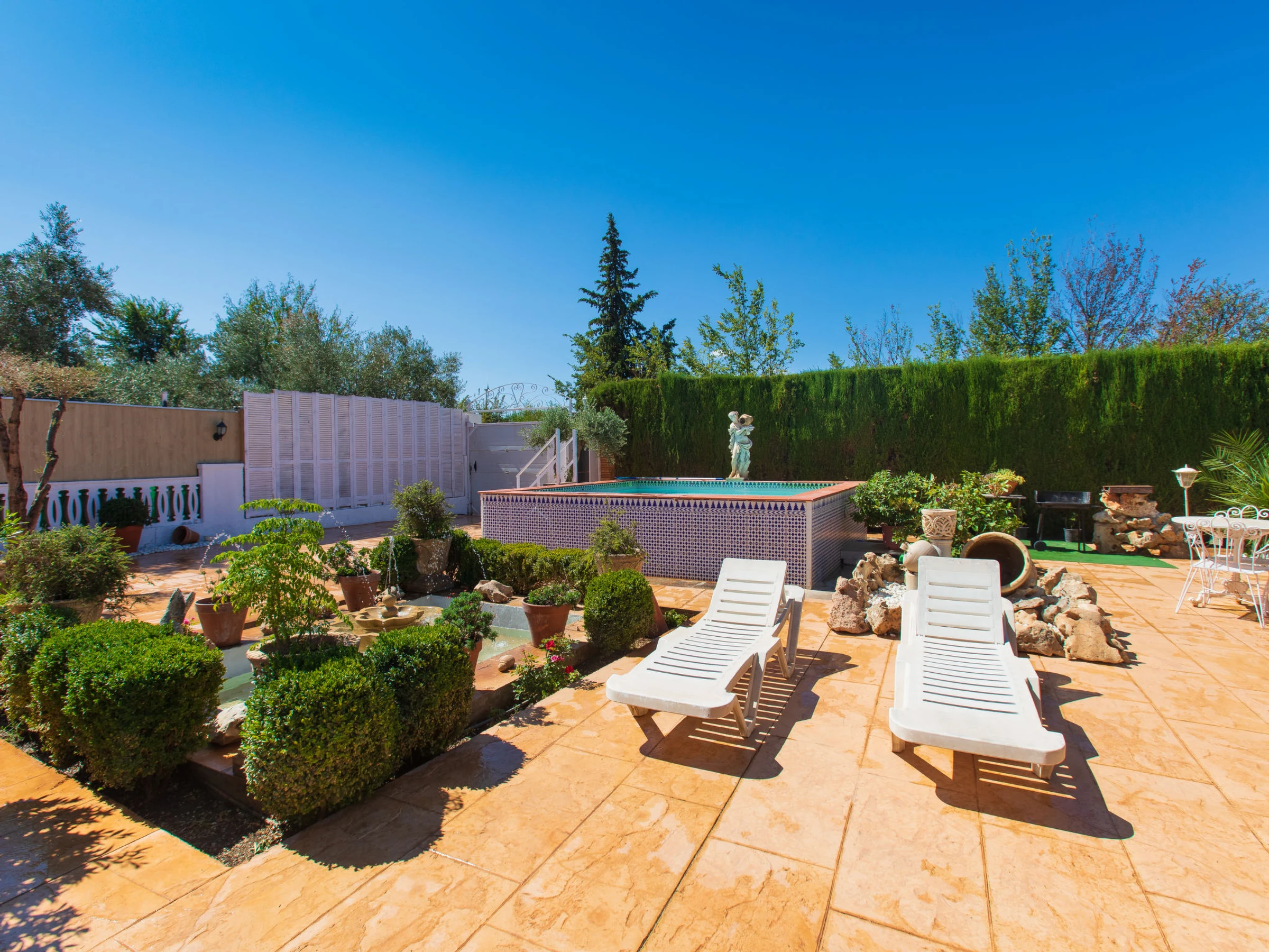 Nigüelas: Casa rústica "Villa Verde", bonita, rústica. Area residencial (villas), a 7 km de un lago. Privado: terreno, jardín natural, piscina rectangular (4 x 4 m, 100 - 100 cm de profundidad, Disponible por temporada: [hidden] - [hidden] En el inmueble: lavadora. Aparcamiento (para 2 coches). Tienda, tienda de comestibles, supermercado 700 m, centro comercial 30 km, restaurante 1.8 km, bar 1.8 km, panadería 700 m, café 1.8 km, zona peatonal 1.8 km, parada autobús "Nigüelas" 1.8 km, estación de tren "Granada" 30 km, playa de arena "Salobreña" 40 km. Puerto deportivo 40 km, campo de golf (18 hoyos) 20 km. Atracciones en los alrededores: Granada, Alpujarras, Sierra Nevada, Almuñecar, La Herradura, Valle de Lecrin. Zonas de esquí populares fácilmente accesibles: Sierra Nevada. Lagos conocidos fácilmente accesibles: Emblase Beznar. A tener en cuenta: coche recomendable. Equipamiento para bebés (incluido). El propietario no acepta grupos de adolescentes/jóvenes. Carga y descarga de equipaje posible en la casa de vacaciones.
