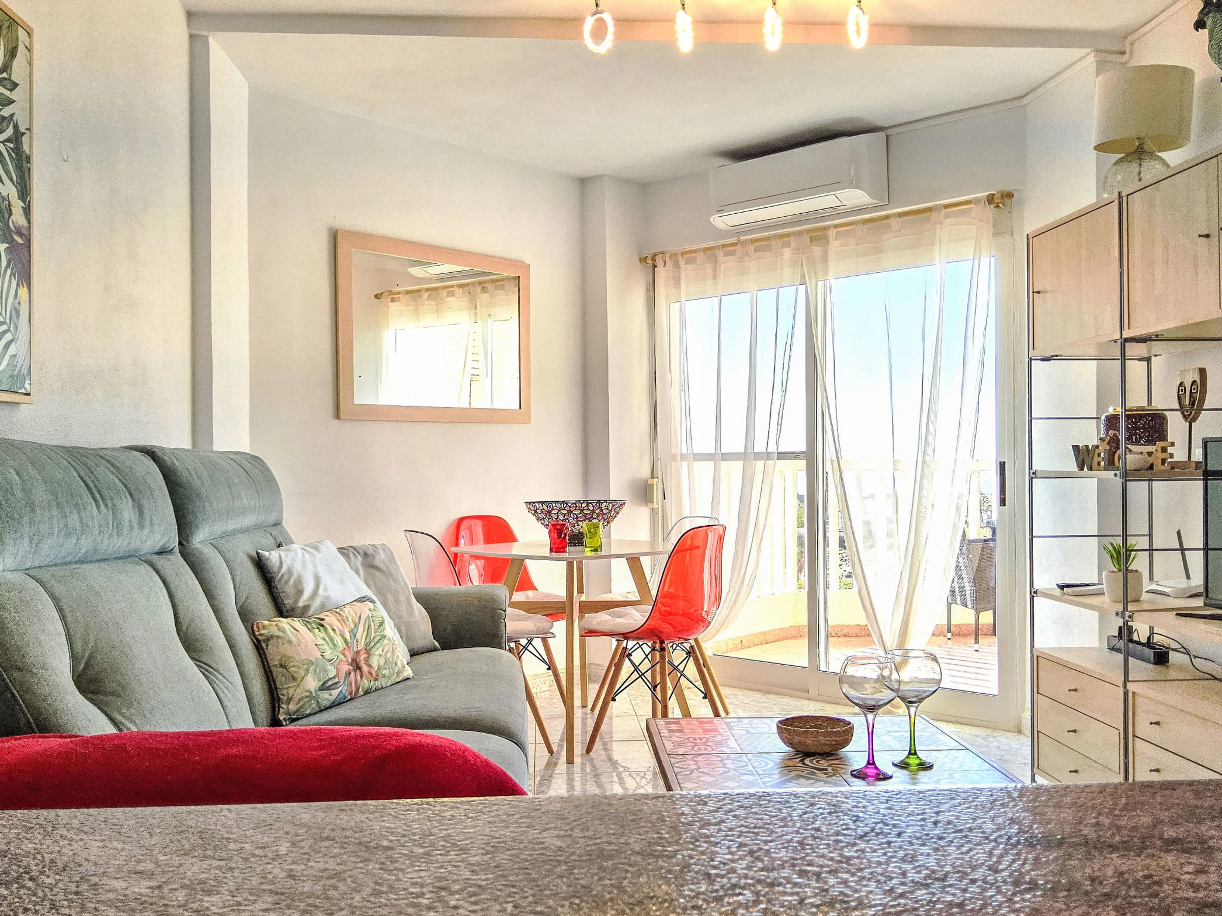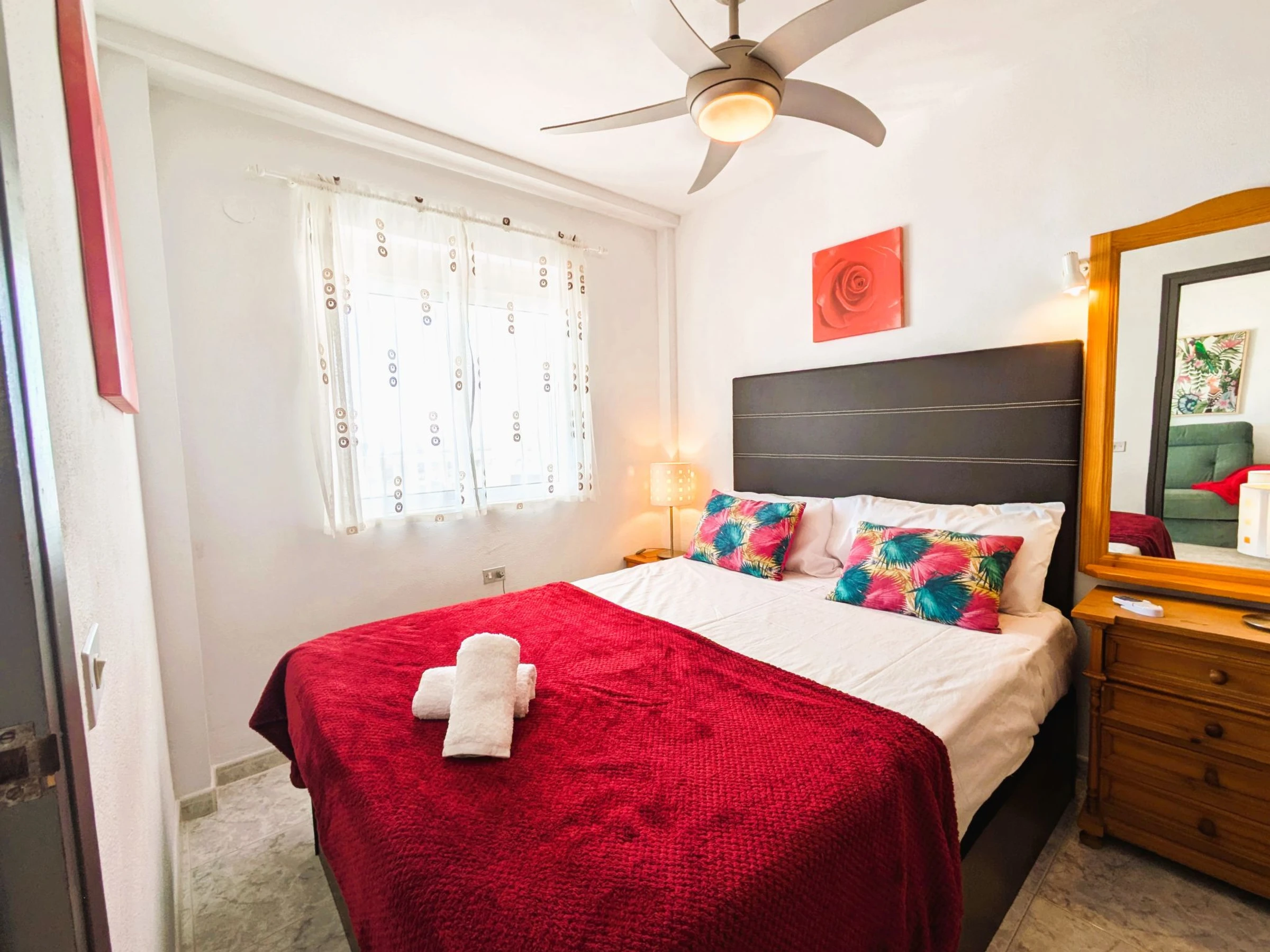 "Parque Amerador", apartamento de 2 estancias 38 m2. Vivienda adecuada para 3 adultos. Luminoso, con mobiliario sencillo y funcional: salón-comedor 12 m2 con 1 sofá-cama doble (160 cm, 190 cm de longitud), TV digital, aire acondicionado y bomba de calor, caliente. Salida a la terraza. 1 dorm. 6 m2 con 1 cama de matrimonio (150 cm, 200 cm de longitud), ventilador. Rincón-cocina (horno, 2 placas de vitrocerámica, tostadora, hervidor de agua eléctrico, microondas, congelador, cafetera eléctrica). Ducha/WC. Aire caliente. Terraza 8 m2. Muebles de terraza. Vista al mar. El alojamiento dispone de: lavadora, plancha, secador de pelo. Internet (Wifi, gratis). Permitido máximo 1 mascota pequeña / perro. EGTV593-A. [hidden] // Reg. Nr.: ESFCTU00000305600011721400000000000000000[hidden]4