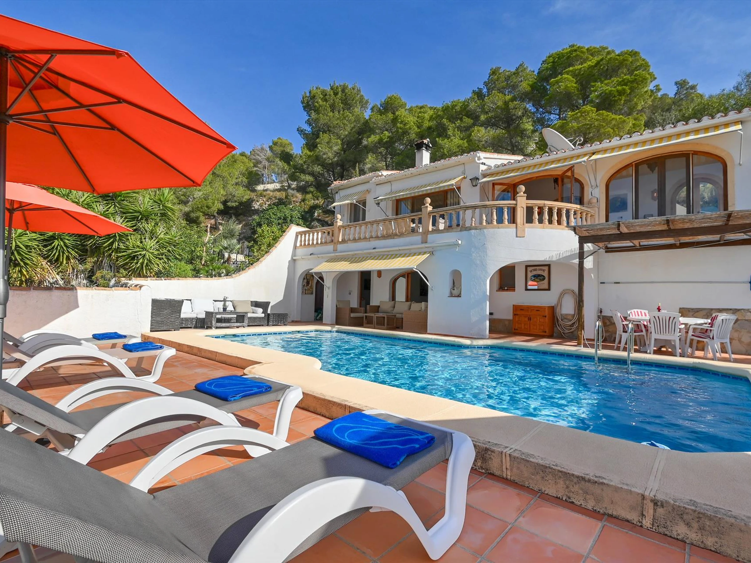 Villa bonita y confortable con piscina privada en Jávea, Costa Blanca, España para 6 personas. La casa está situada en una zona residencial de playa ya 4 km de la playa de El Arenal, Jávea.