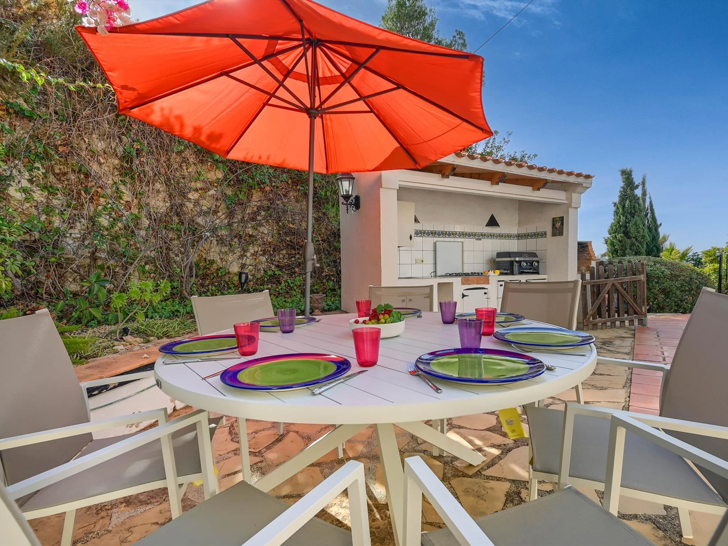 La villa tiene 3 dormitorios y 3 baños, repartidos en 2 niveles. El alojamiento ofrece mucha privacidad, un jardín con árboles, una piscina maravillosa y unas bonitas vistas al valle ya la montaña. Su comodidad y la cercanía a la playa, actividades deportivas, lugares de interés y cultura hacen de esta una villa adecuada para pasar sus vacaciones en España con familiares o amigos e incluso con sus mascotas.