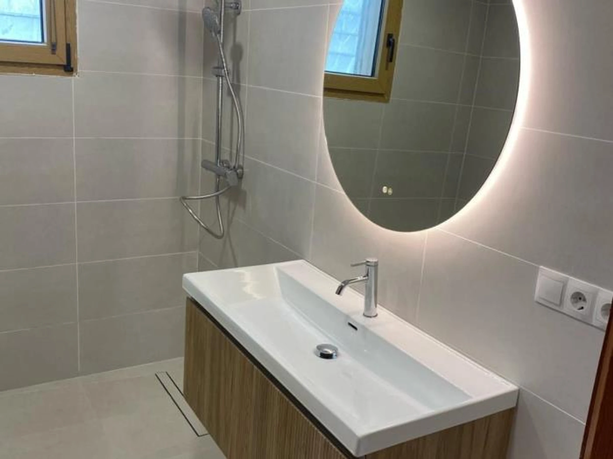 La villa cuenta con tres habitaciones espaciosas, cada una equipada con aire acondicionado para garantizar su comodidad en cualquier época del año. Los dos baños, ambos con ducha, están diseñados con un estilo moderno y elegante.