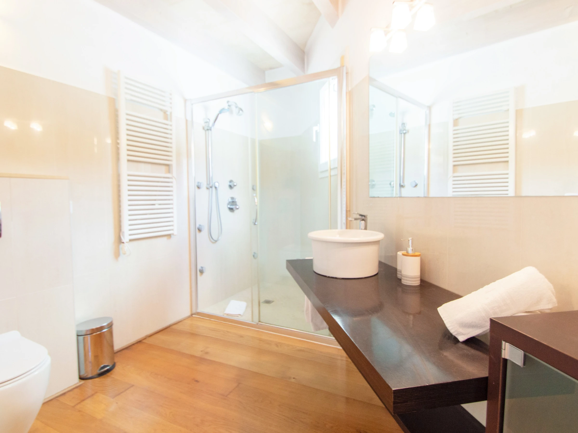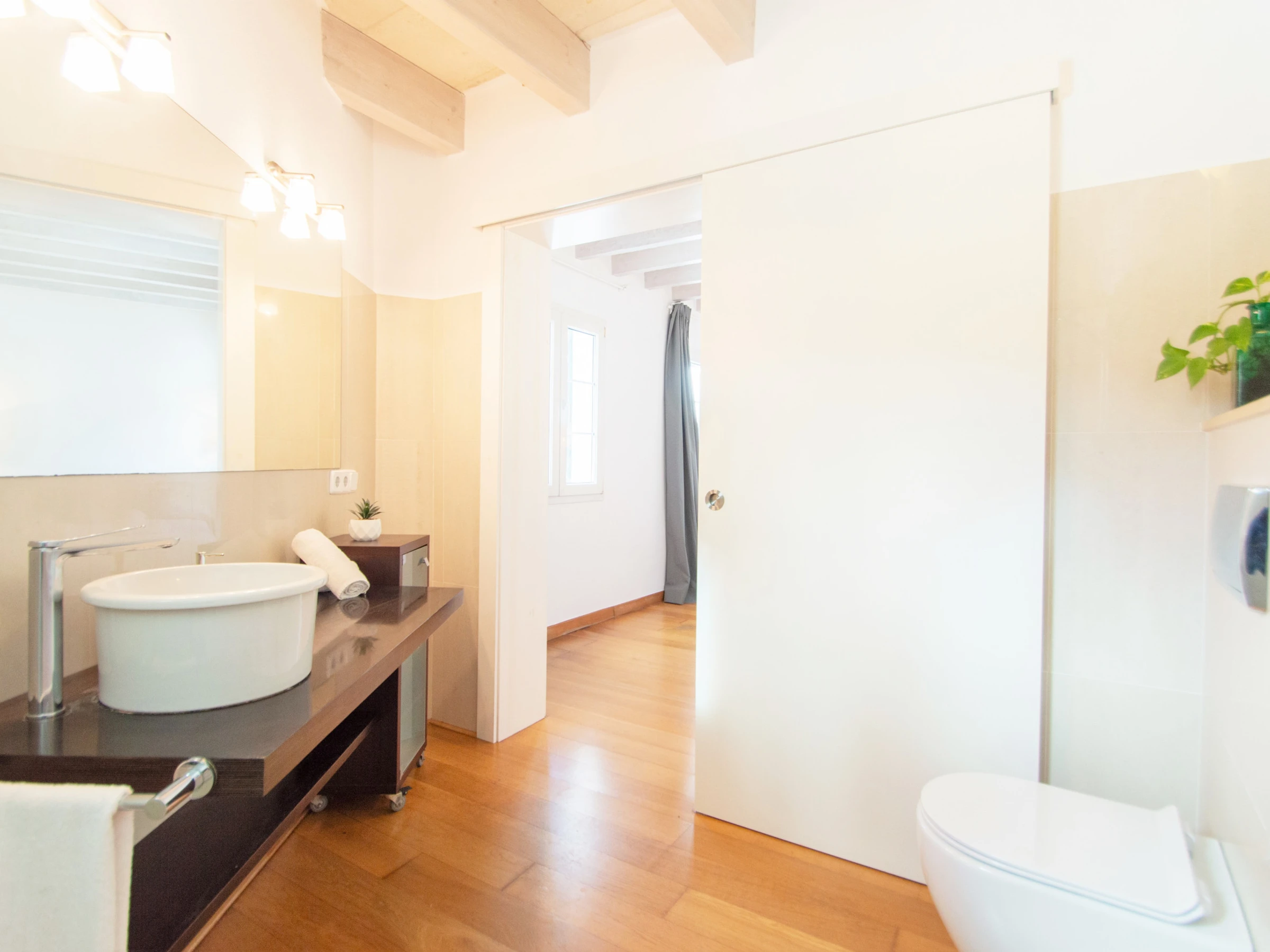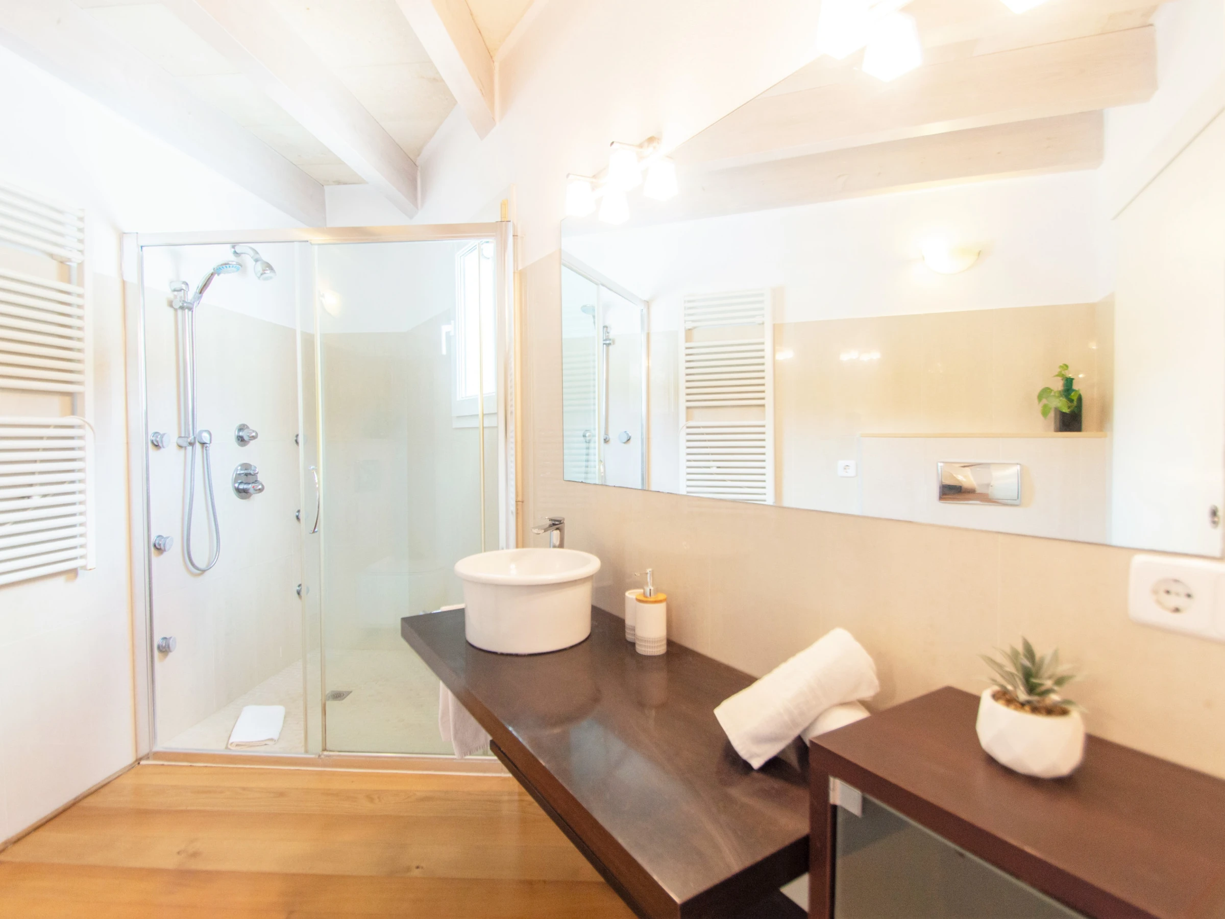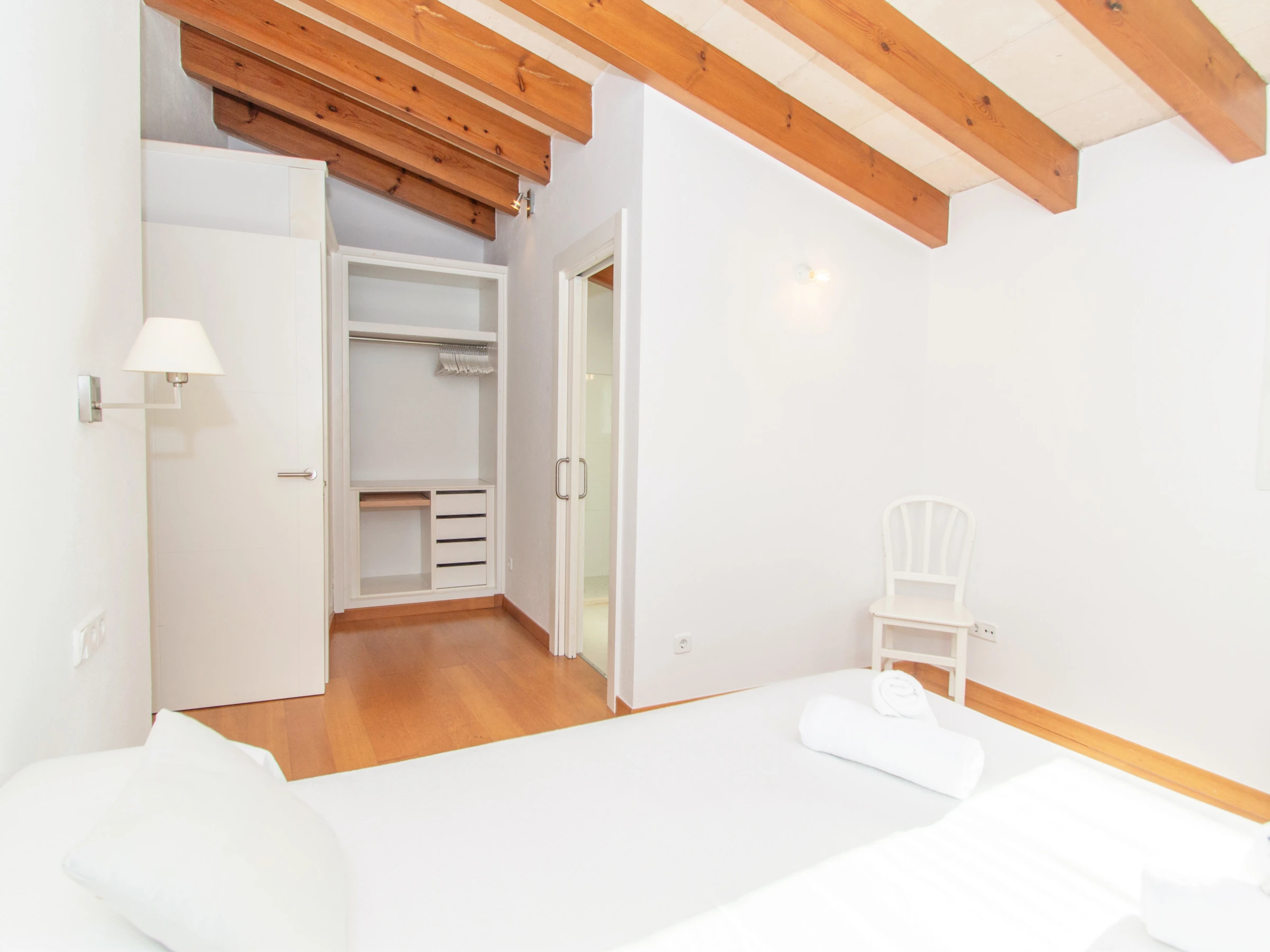 En esta planta también se encuentra la primera habitación doble en suite. Esta está equipada con cama de matrimonio, un amplio vestidor, aire acondicionado y baño en suite. El baño está completamente equipado con gran plato de ducha y secador.