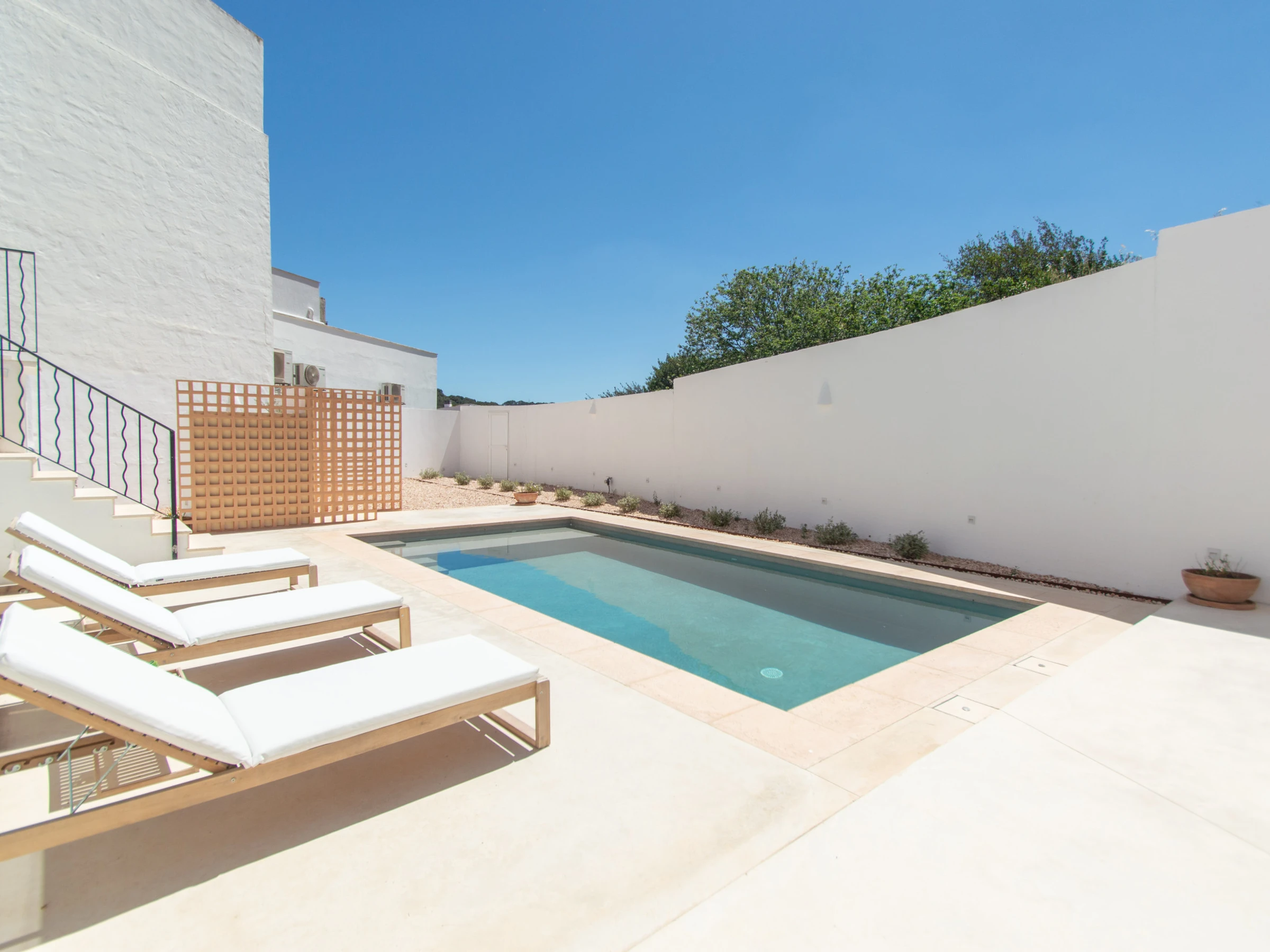 Casa Lluminosa es una bonita y moderna casa de pueblo a en alquiler en Menorca, de estilo minimalista con piscina. Está situada en el centro histórico de Ferreries, una zona muy tranquila y residencial de Ferreries, justo en el centro de Menorca. Su ubicación, la hace un lugar estratégico e ideal para tener al alcance toda la isla en cuestión de minutos.
