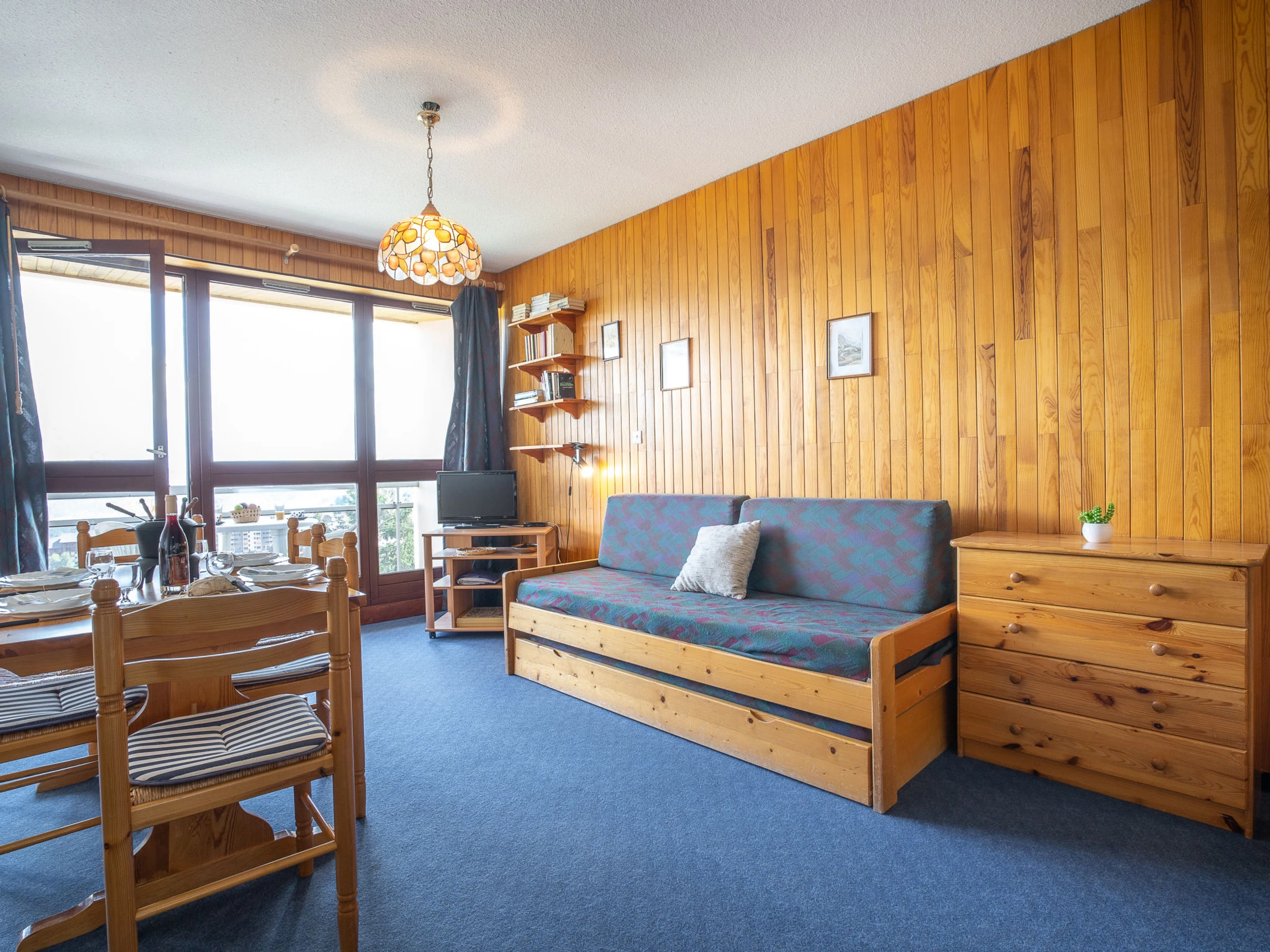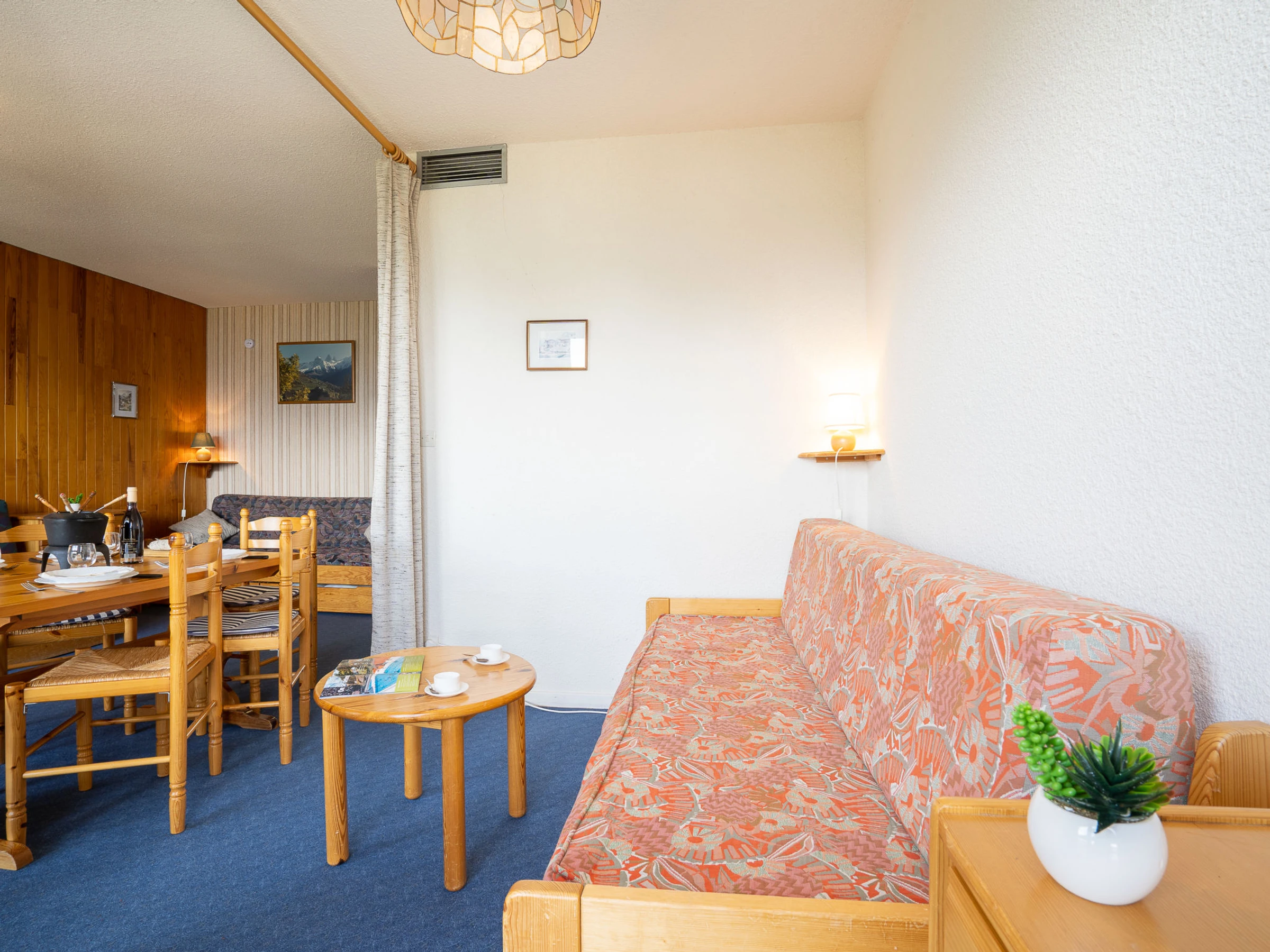 Estudio 32 m2 en el 2° piso. Con mobiliario muy sencillo: salón-comedor con 1 cama-nido (2 pers. 2 x 80 cm, 190 cm de longitud), TV (pantalla plana). Salida al balcón. Rincón-dormitorio con cortina con 1 cama-nido (2 pers. 2 x 80 cm, 190 cm de longitud). Salida al balcón. Pequeña cocina (2 fogones, horno pequeño, tostadora, hervidor de agua eléctrico, microondas, cafetera eléctrica, set de Fondue (queso)). Baño, WC separado. Calefacción. Moqueta. Balcón 6 m2, orientación sur. Muebles de balcón. Vista bonita a las montañas y a la localidad. El alojamiento dispone de: plancha, secador de pelo. Internet (Wifi, extra). A tener en cuenta: detector de humo. En lugar de un dormitorio cerrado, algunos espacios para dormir están situados en una zona diáfana (galería, alcoba, etc.). Oferta de un particular según el art. 155, IV del CGI. [hidden]
