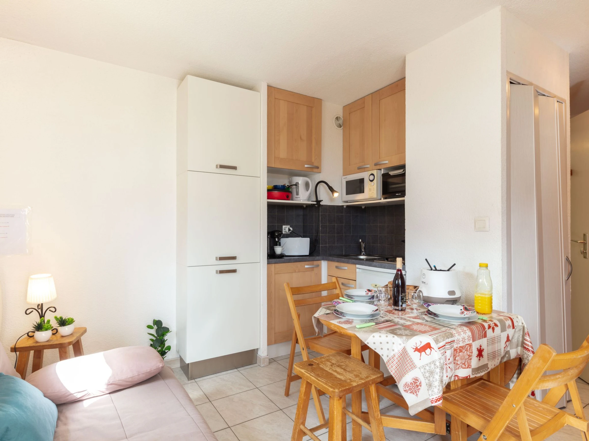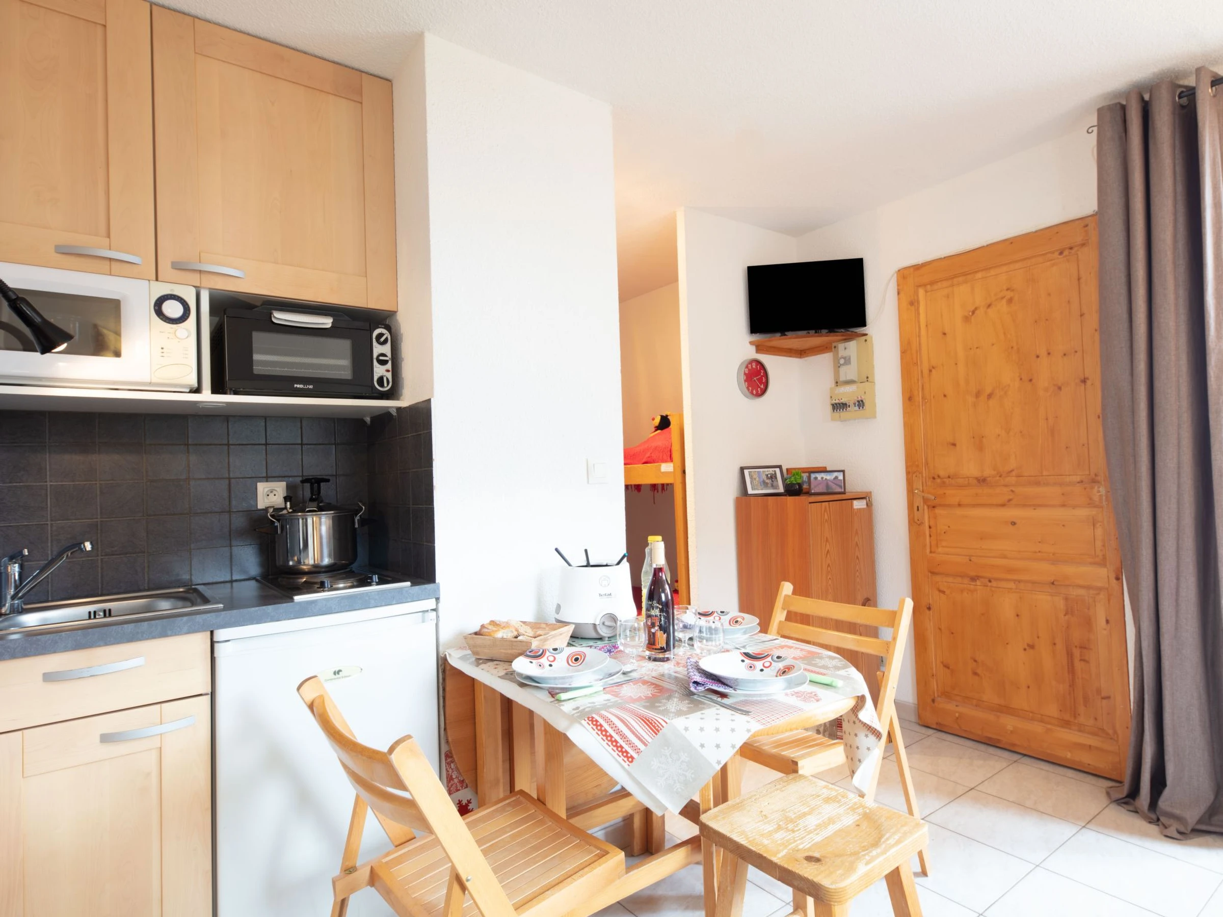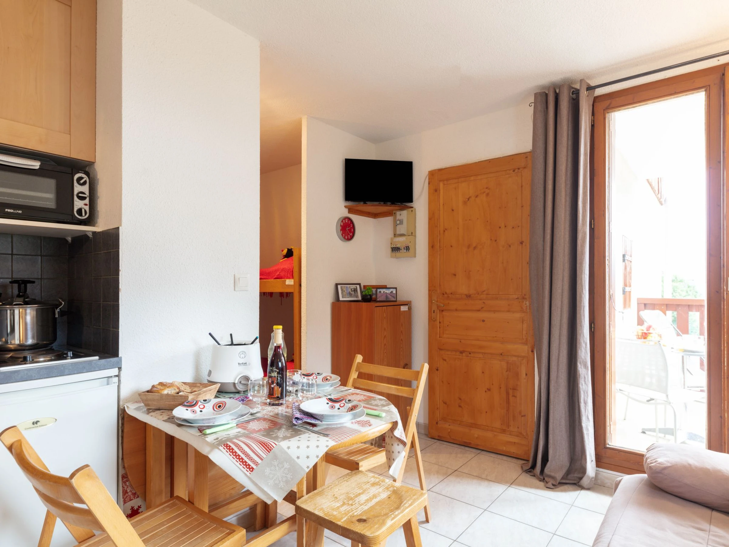 Apartamento de 2 estancias 25 m2 en el 1° piso. Con mobiliario bonito: salón-comedor pequeño con TV (pantalla plana). Salida a la terraza. Entrada con 1 x 2 literas (70 cm, 190 cm de longitud). 1 dorm. con 1 cama de matrimonio (140 cm, 190 cm de longitud). Rincón-cocina (2 fogones, horno pequeño, tostadora, hervidor de agua eléctrico, microondas, cafetera eléctrica, Cápsulas de café (TASSIMO), horno Raclette, set de Fondue (queso)). Ducha/WC. Calefacción eléctrica, calentador. Balcón 6 m2, orientación oeste. Muebles de balcón, tumbonas (2). Vista bonita a las montañas y al paisaje. El alojamiento dispone de: secador de pelo. Internet (Wifi, extra). A tener en cuenta: detector de humo. Piso en un edificio. Cuidado : Las llaves de la vivienda La Toussuire están en la oficina Le Corbier( La estación de esquí La Toussuire está a 4km ). Para llegadas en autobús, por favor contactar con el responsable de llaves 48h antes de su llegada. El wifi tiene un coste adicional a pagar en plaza. Oferta de un particular según el art. 155, IV del CGI.