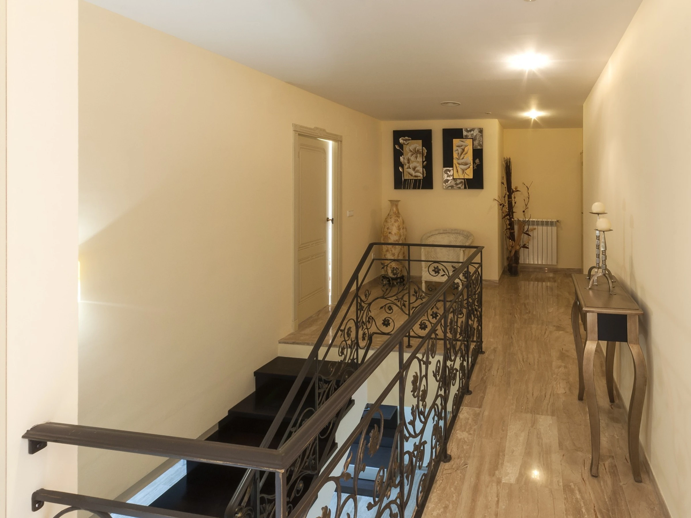 En el mismo piso, encontrarán un baño con ducha y dos dormitorios: uno con dos camas individuales y un armario, y otro con dos literas. Arriba, en el último piso, hay tres dormitorios adicionales, cada uno con una cama doble y acceso directo a una hermosa terraza. Uno de estos dormitorios incluye un baño en suite con bañera de hidromasaje, y un segundo baño con ducha de hidromasaje completa este piso.