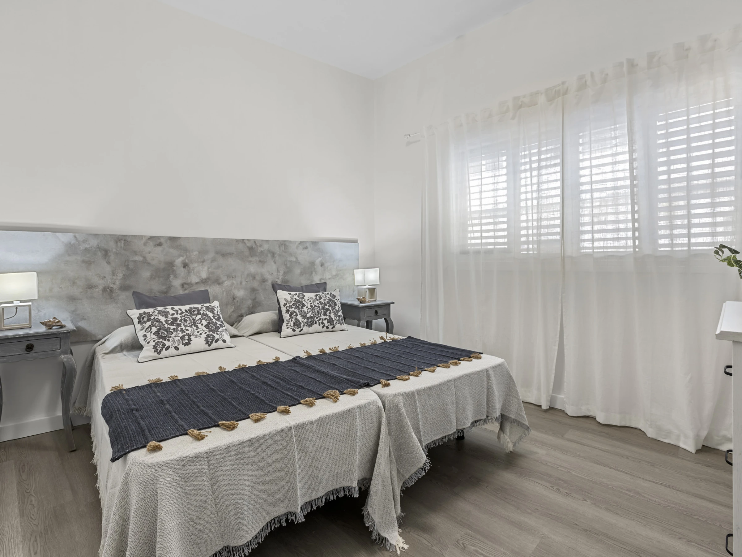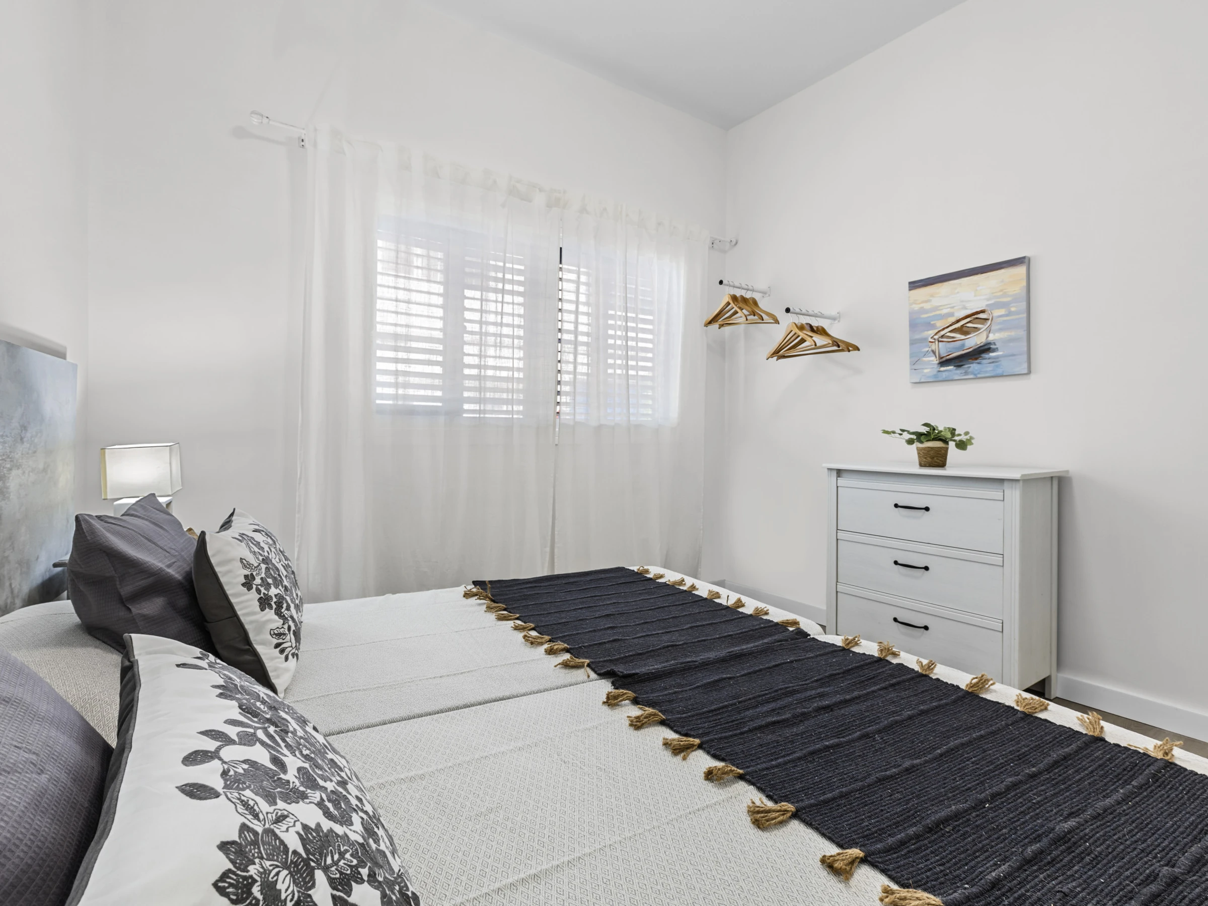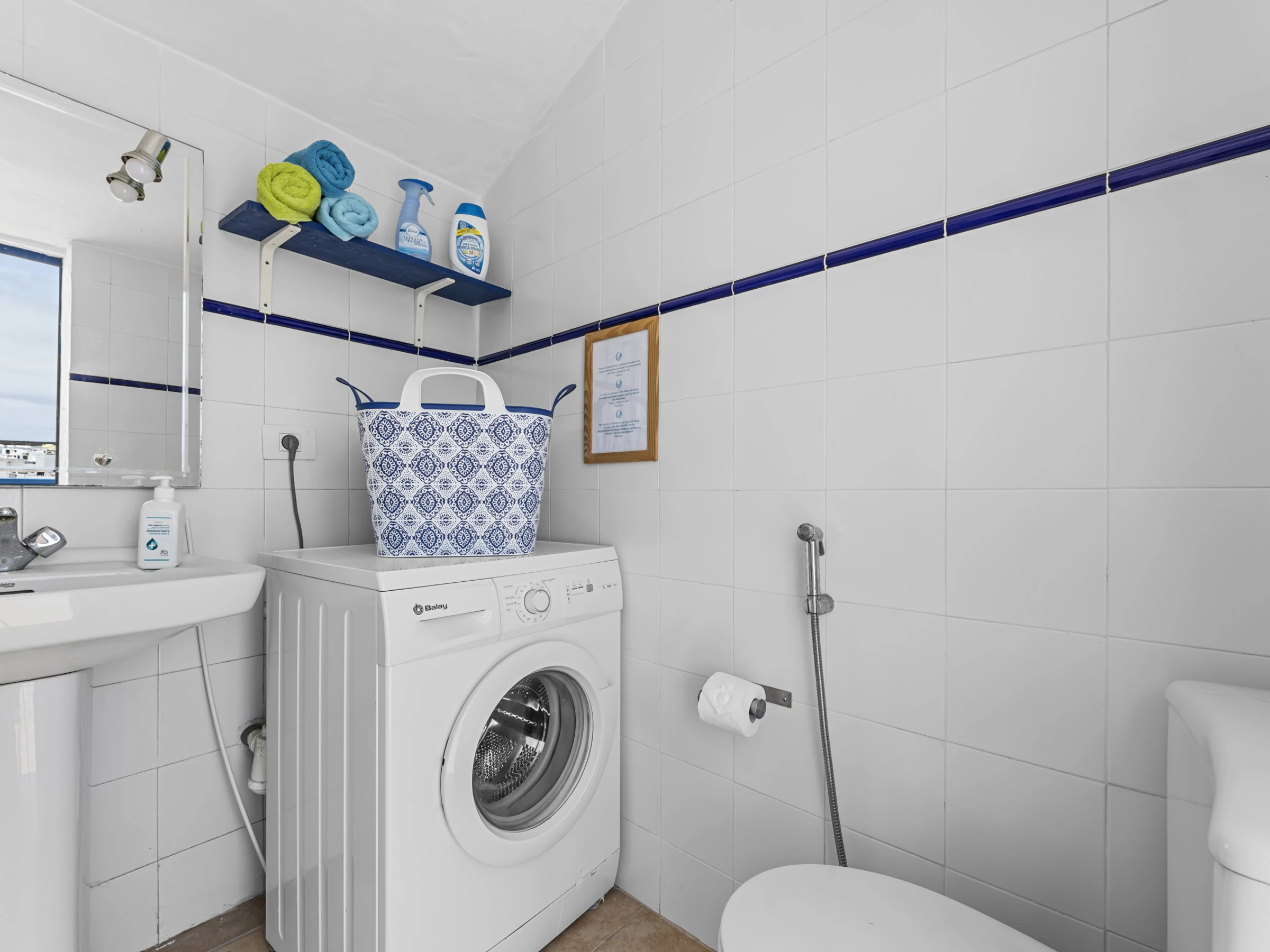 El apartamento cuenta con una habitación equipada con dos camas individuales, ideal para amigos o parejas que prefieren dormir separados. Dispone de un baño completo con ducha, lo que garantiza comodidad y privacidad durante tu estancia. La cocina, aunque pequeña, está bien equipada con nevera, microondas, tostadora, hervidor y menaje básico, permitiéndote preparar comidas sencillas.