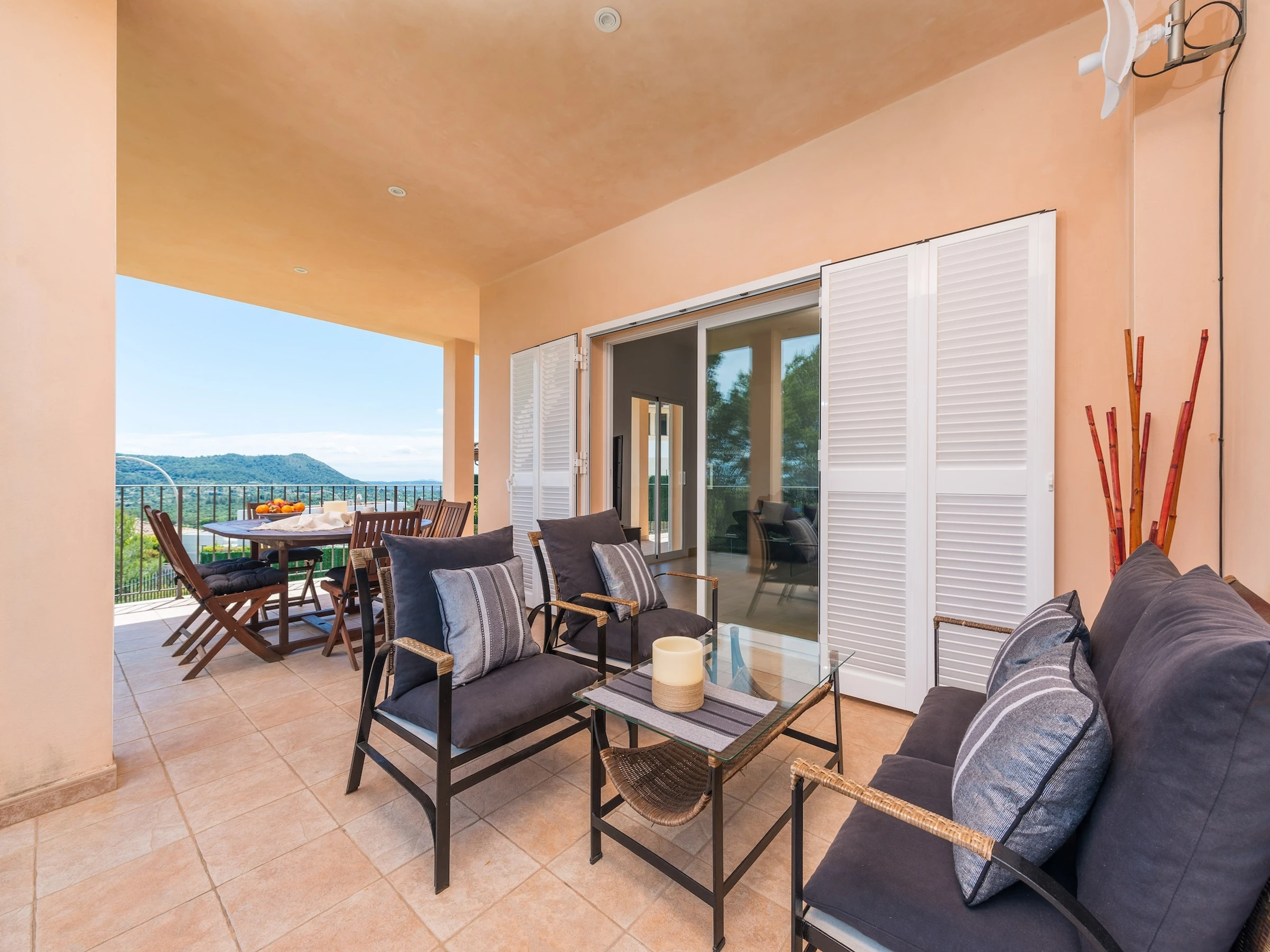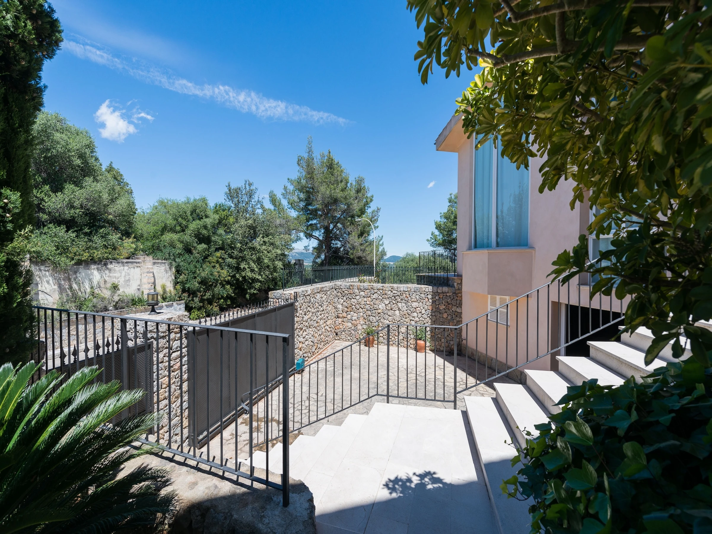 El exterior destaca por su cuidado jardín y las zonas de relax en las que podemos disfrutar de verdad del verano en Mallorca. Cuenta con una fabulosa piscina de cloro de forma irregular que mide 7 x 4 metros y que tiene un profundidad que va desde 1 a 1.5 metros, donde grandes y pequeños podemos disfrutar de un relajante baño en un entorno tranquilo rodeado de naturaleza. Además, podrás tomar el sol en una de las 6 tumbonas mientras los pequeños juegan en la hierba. Una de las cosas más impresionantes de la casa son las maravillosas vistas que podemos admirar desde varios puntos del exterior: la zona de sofás en la nos podemos tomar una copa al atardecer, el porche delantero, amueblado con una fantástica mesa de comedor exterior para 8 personas, y que continúa hasta el otro lateral de la casa que ofrece otra mesa de comedor y zona de sofás, ideal para tomar el vermouth antes de comer. Hay también una barbacoa en la que podrás cocinar deliciosas carnes y verduras a la brasa. La propiedad se encuentra vallada y hay vecinos en los alrededores.