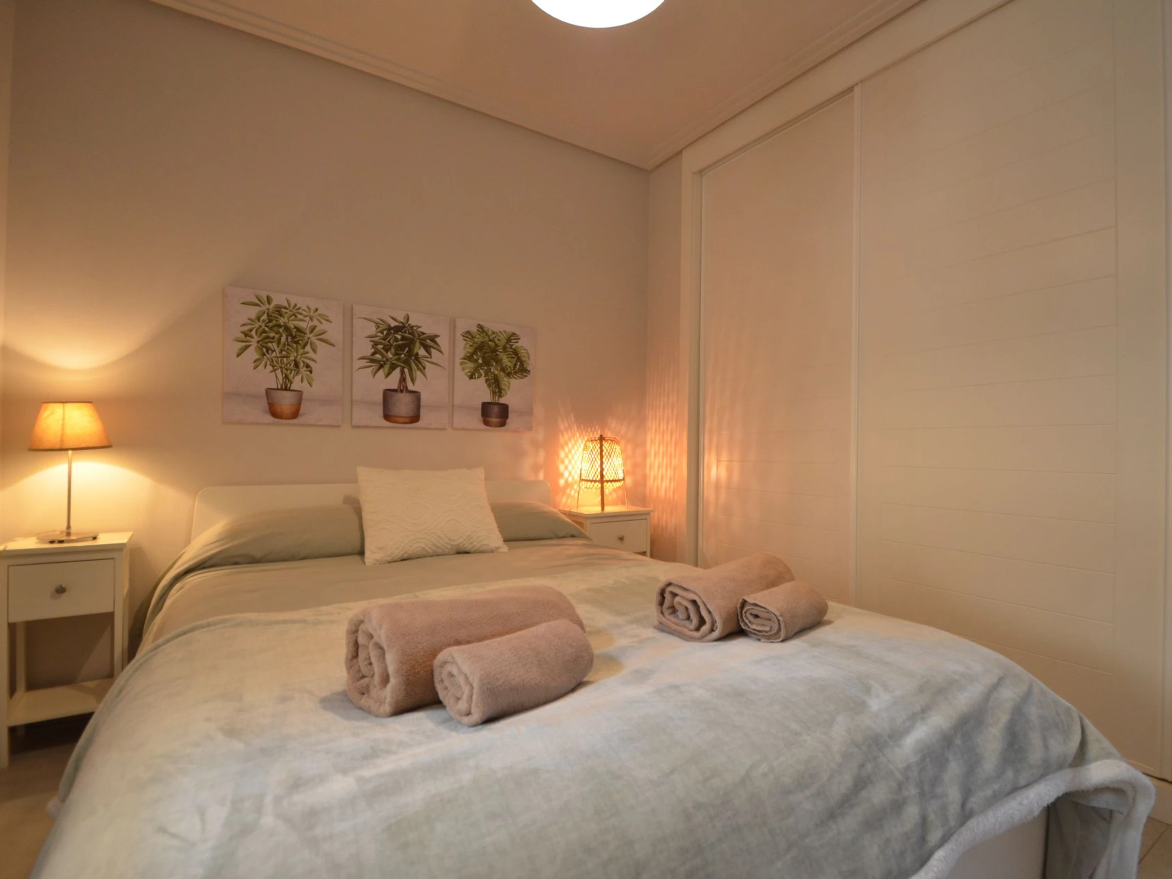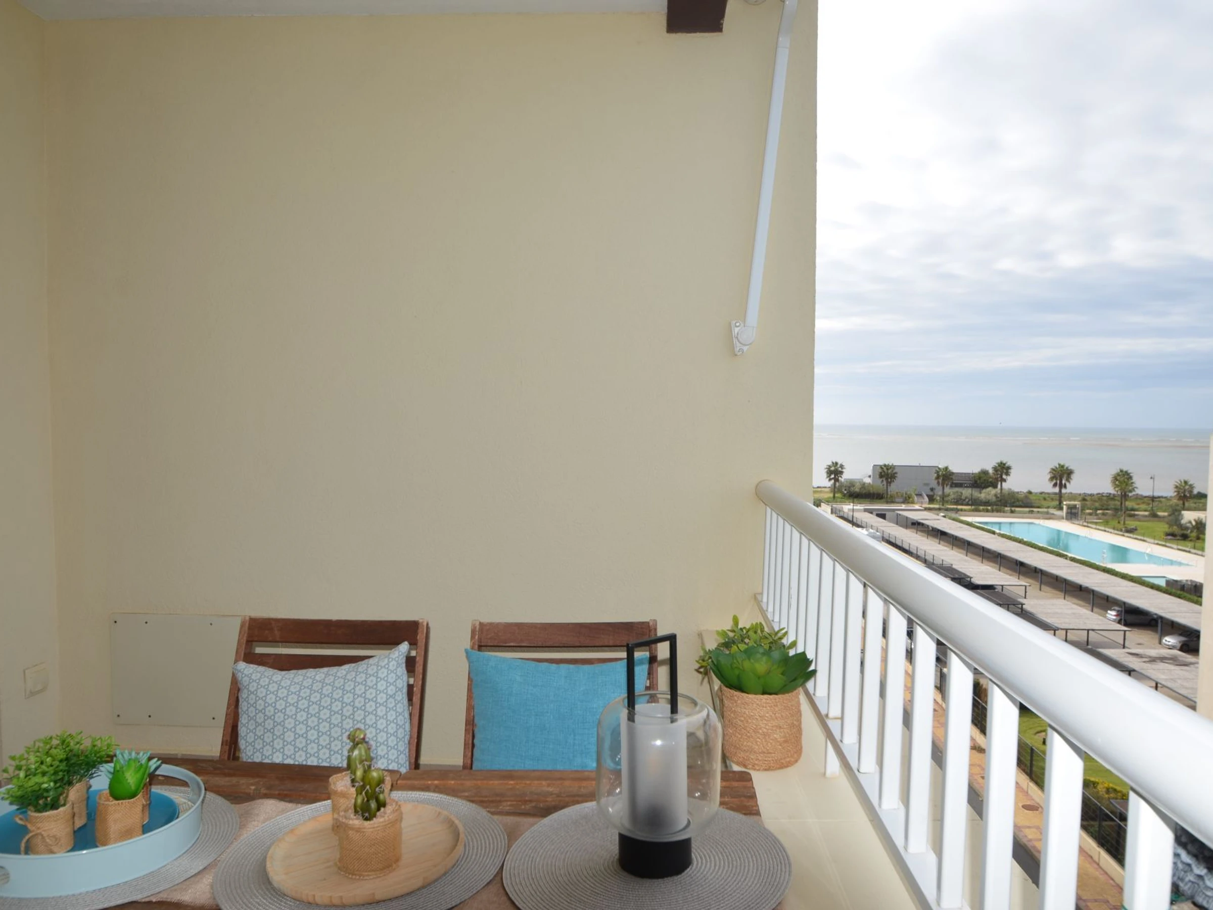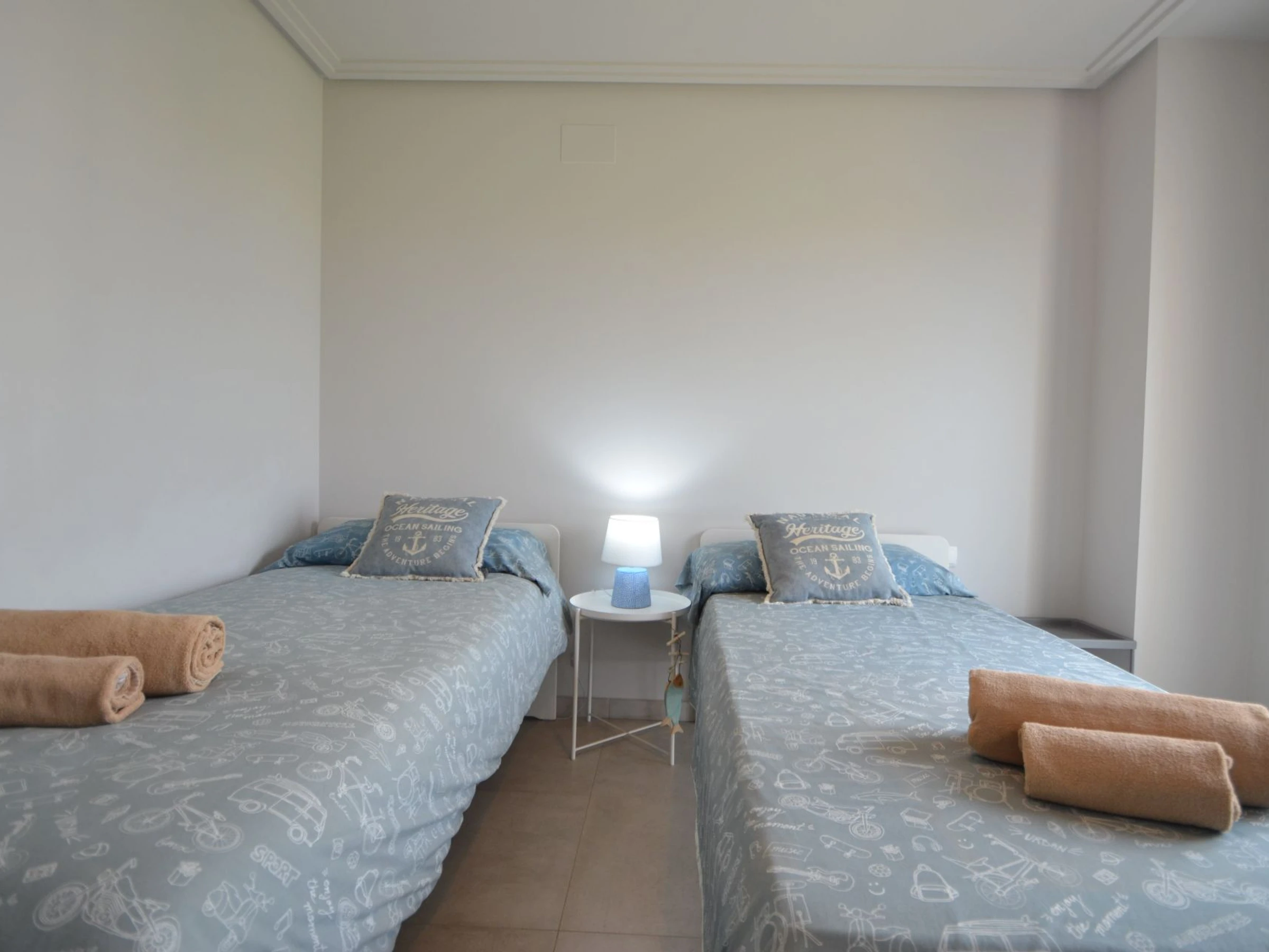 Apartamento de dos dormitorios y un baño, en primera línea de playa con piscina comunitaria y plaza de garaje incluida en el precio, vista despejadas y jardín, totalmente equipado. Terraza equipada. Ascensor, Aire acondicionado, ropa de cama y baño, TV plasma, menaje completo, horno-microondas, cafetera, tostadora, todo lo necesario para sentirse como en casa.