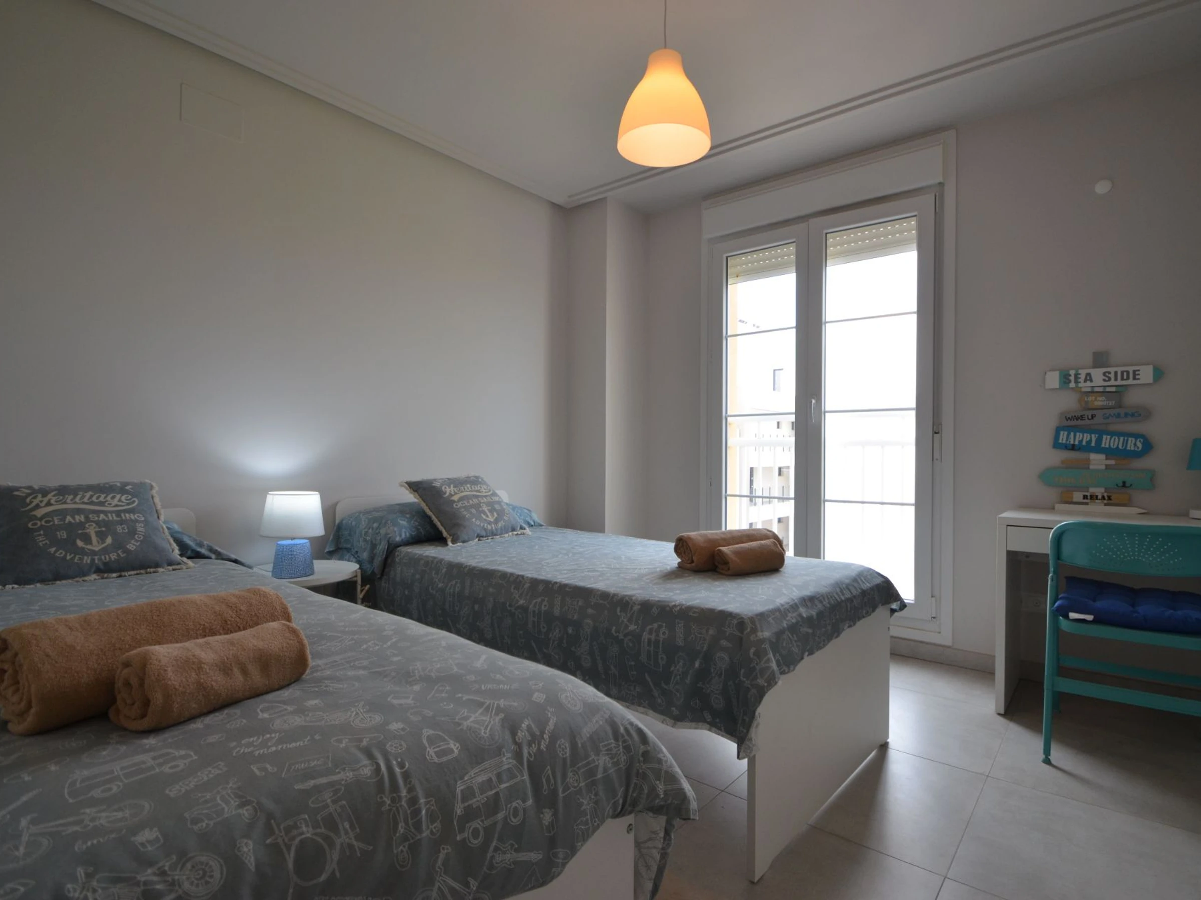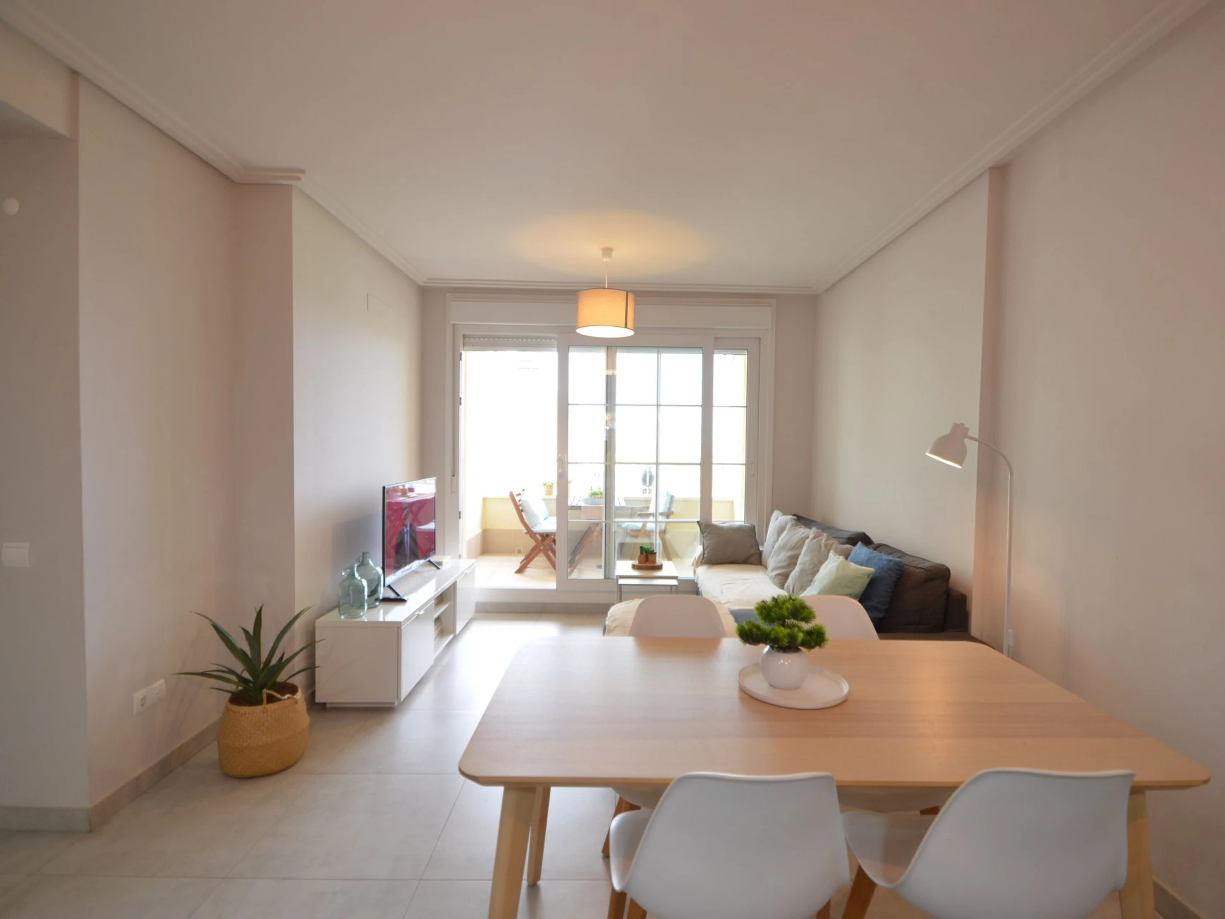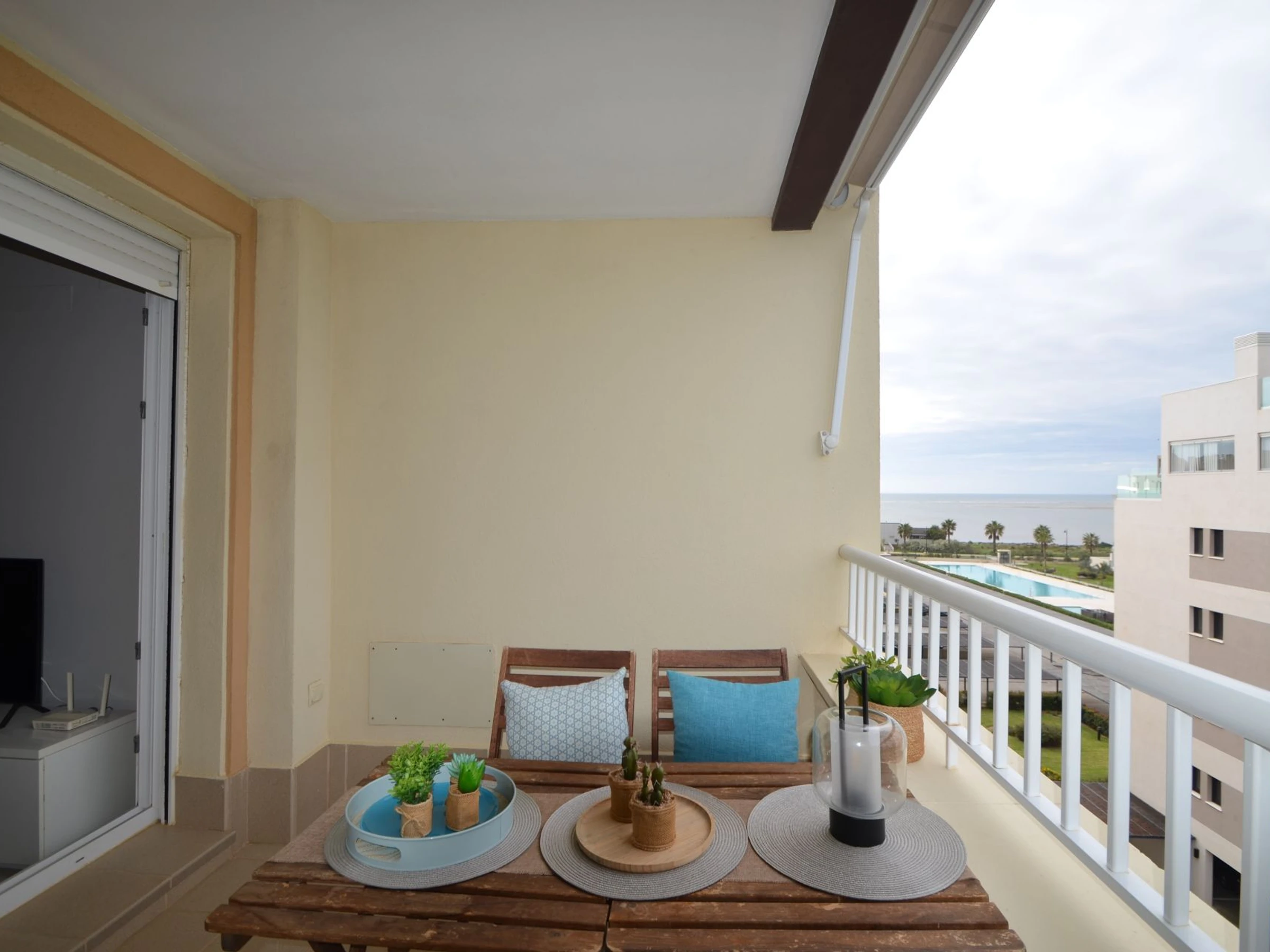 Apartamento de dos dormitorios y un baño, en primera línea de playa con piscina comunitaria y plaza de garaje incluida en el precio, vista despejadas y jardín, totalmente equipado. Terraza equipada. Ascensor, Aire acondicionado, ropa de cama y baño, TV plasma, menaje completo, horno-microondas, cafetera, tostadora, todo lo necesario para sentirse como en casa.