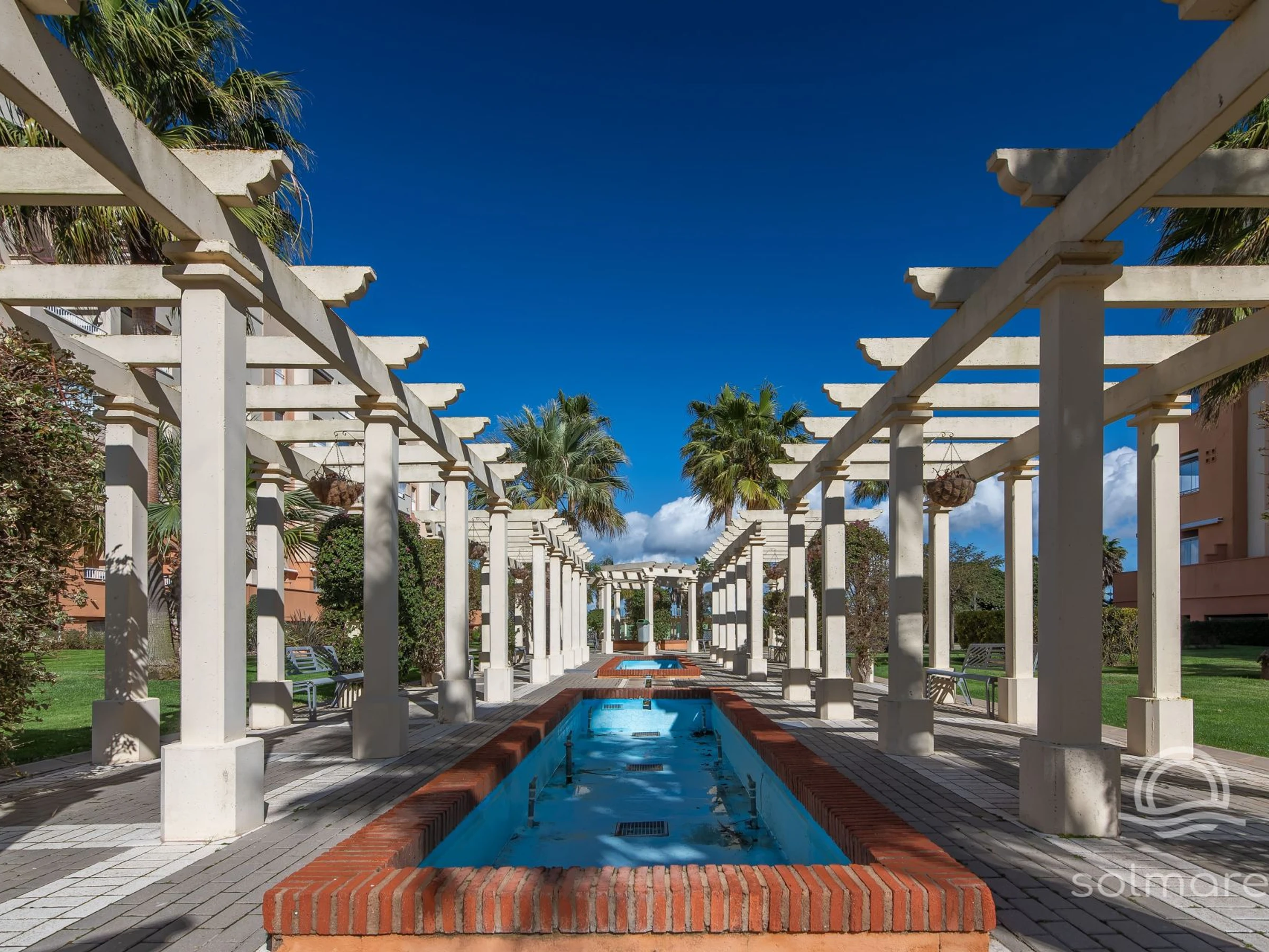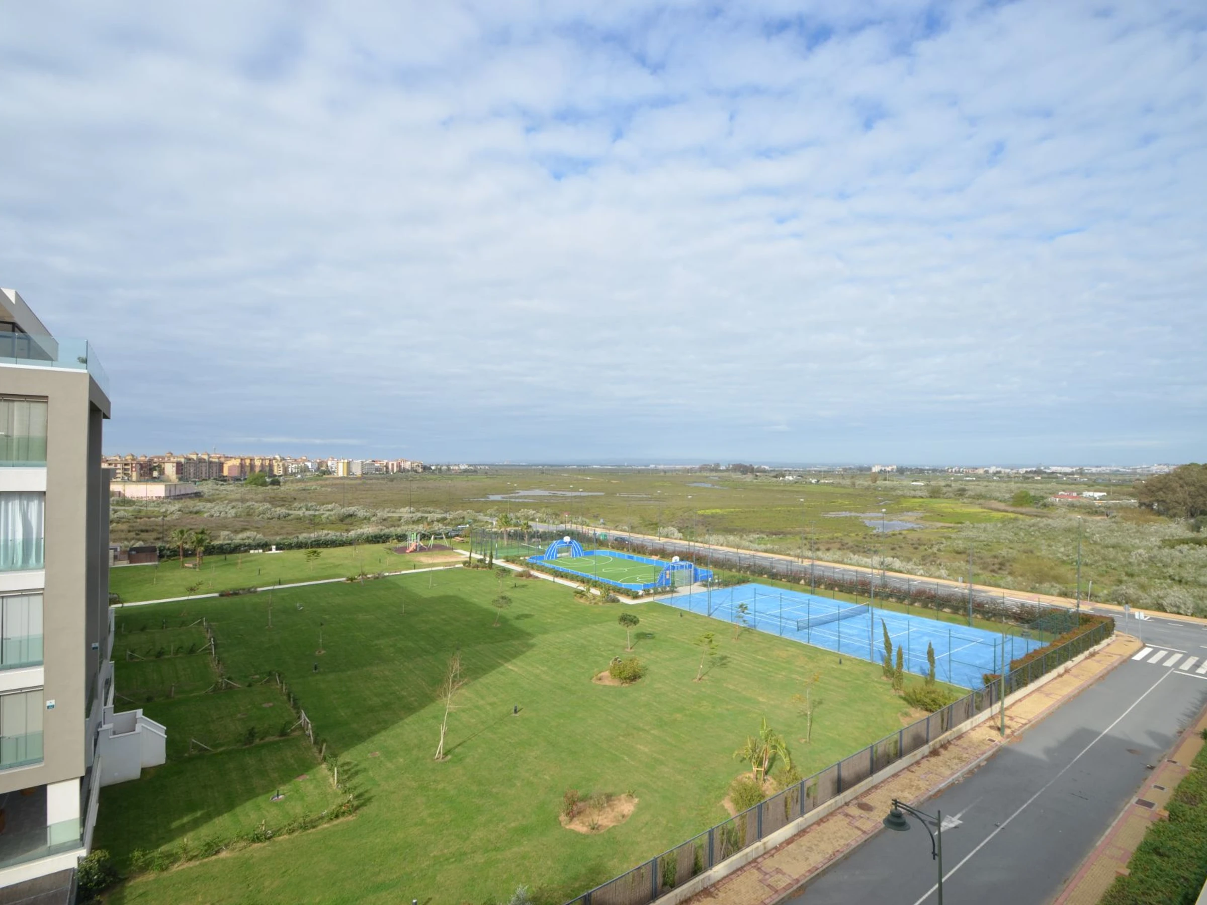 Precioso residencial con amplias zonas ajardinadas. Acceso directo a la playa a través del paseo marítimo de 7 km, qué une los extremos de nuestras playas de Isla Canela y Punta del Moral, ideal para caminar, hacer deporte o pasear en bicicleta con la familia.