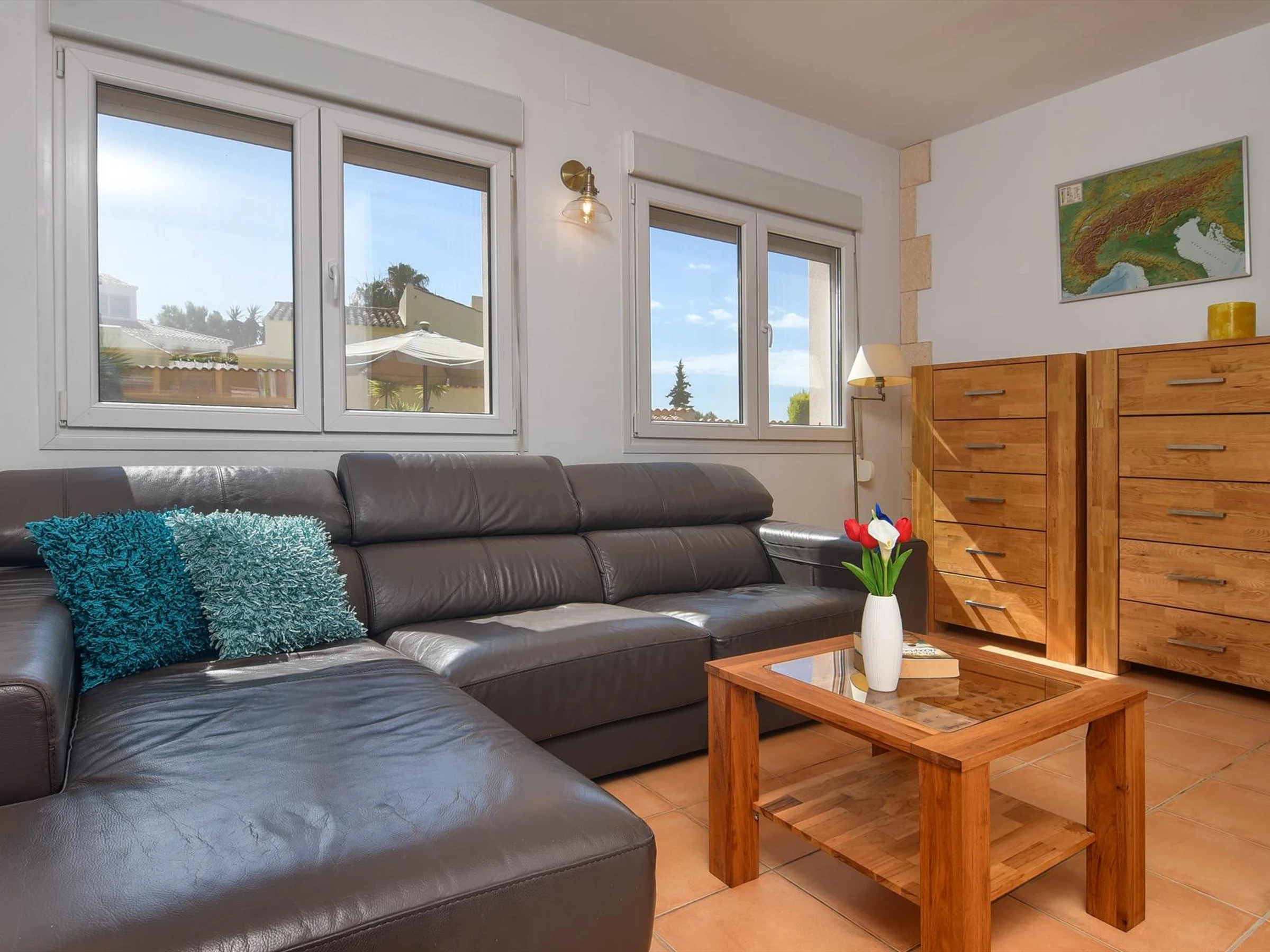 Interior de la villaSalón/comedor con aire acondicionado, televisión y reproductor BlueRay.chimenea en salón (leña)2 dormitorios y 2 bañosantena satelital (IPTV)cuarto de lavado con lavadora