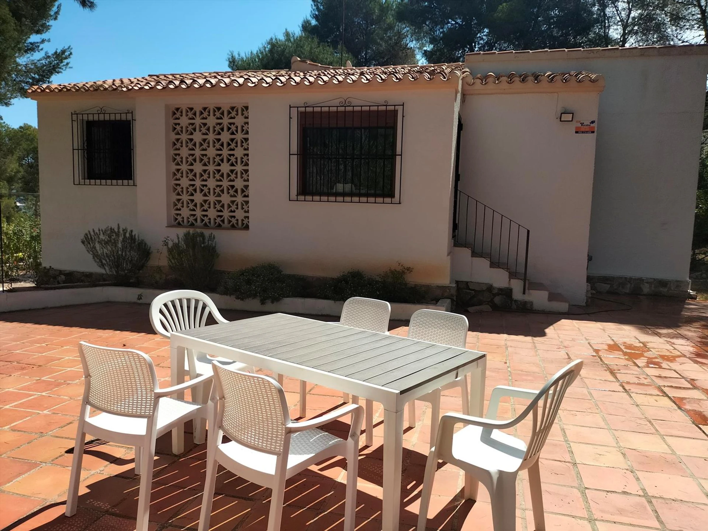 Casa de vacaciones bonita y confortable en Jávea, Costa Blanca, España con piscina privada para 7 personas. La casa está situada en una zona costera, forestal y residencial y a 4 km de la playa del Arenal. La casa tiene 3 dormitorios y 2 cuartos de baño.