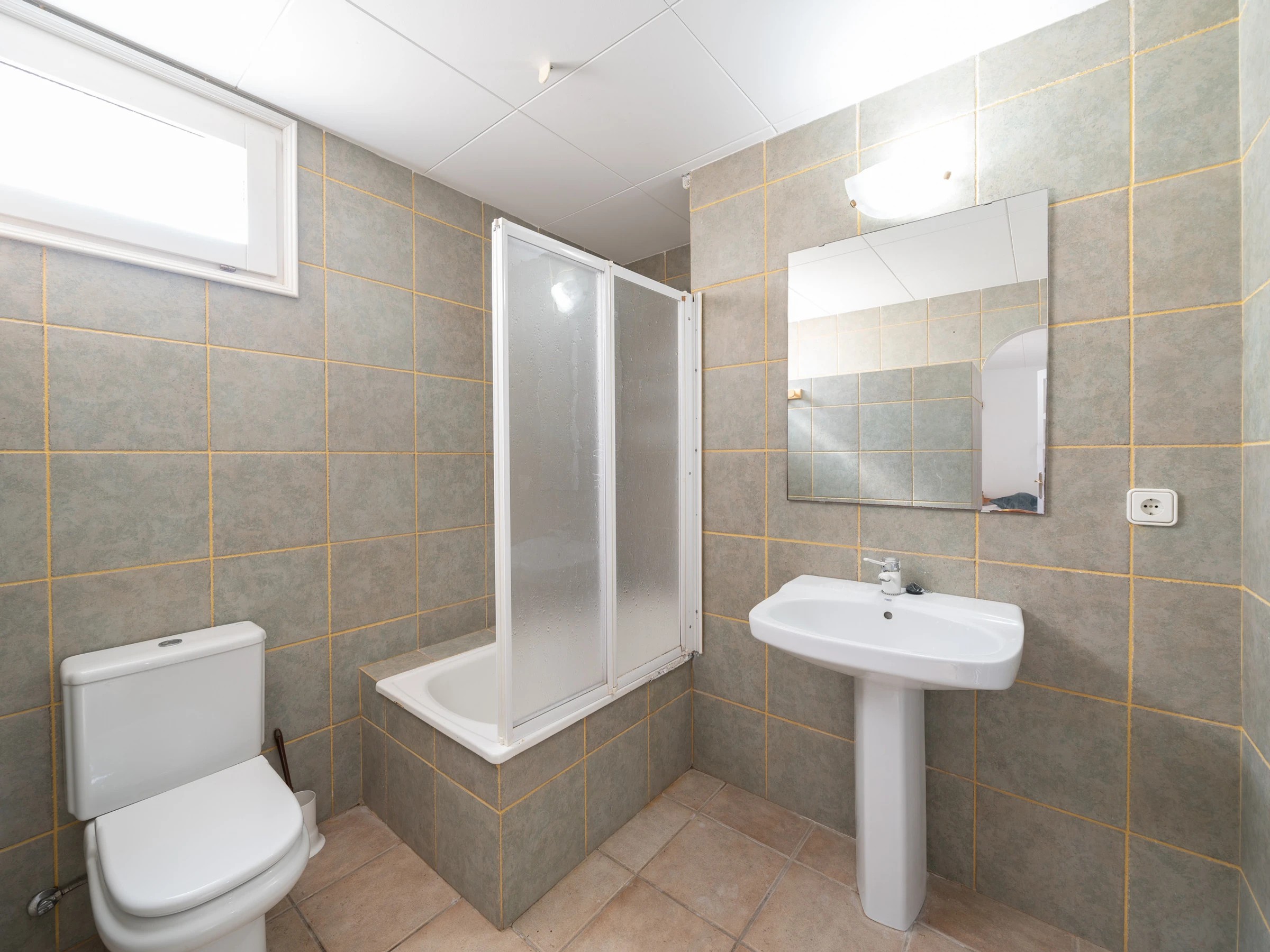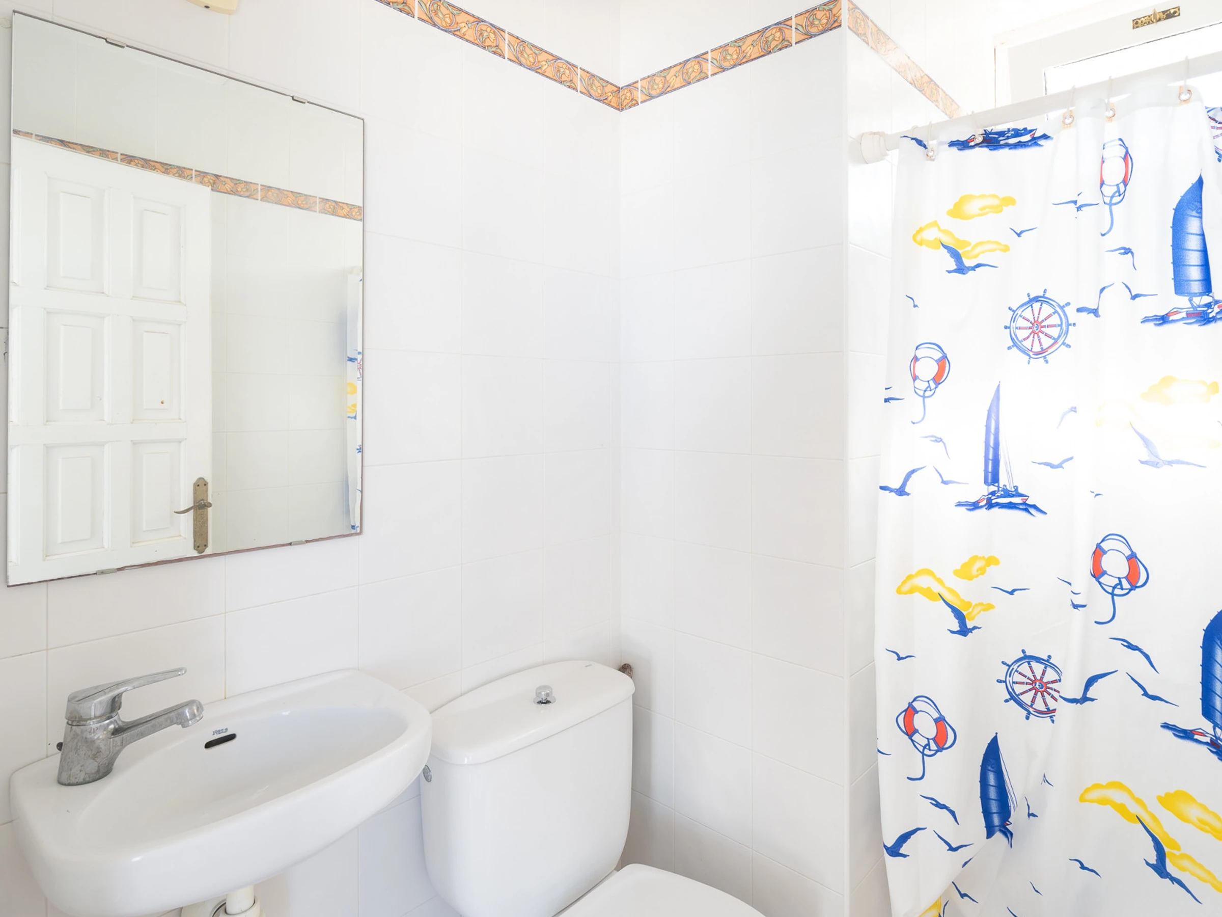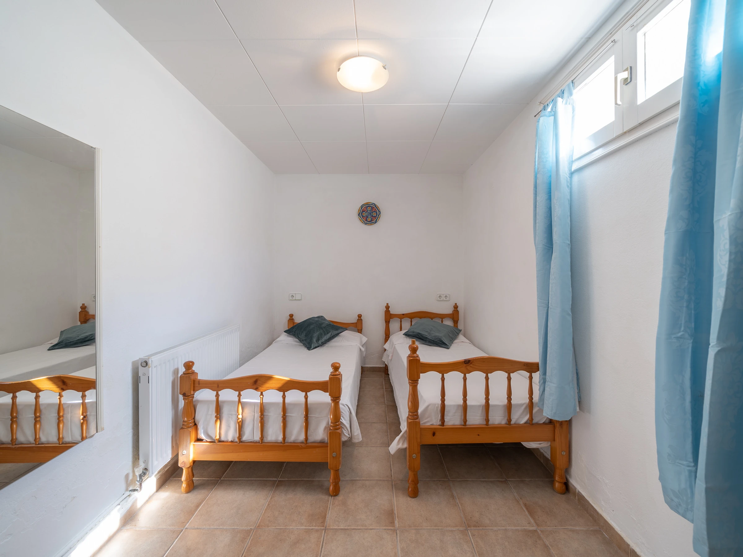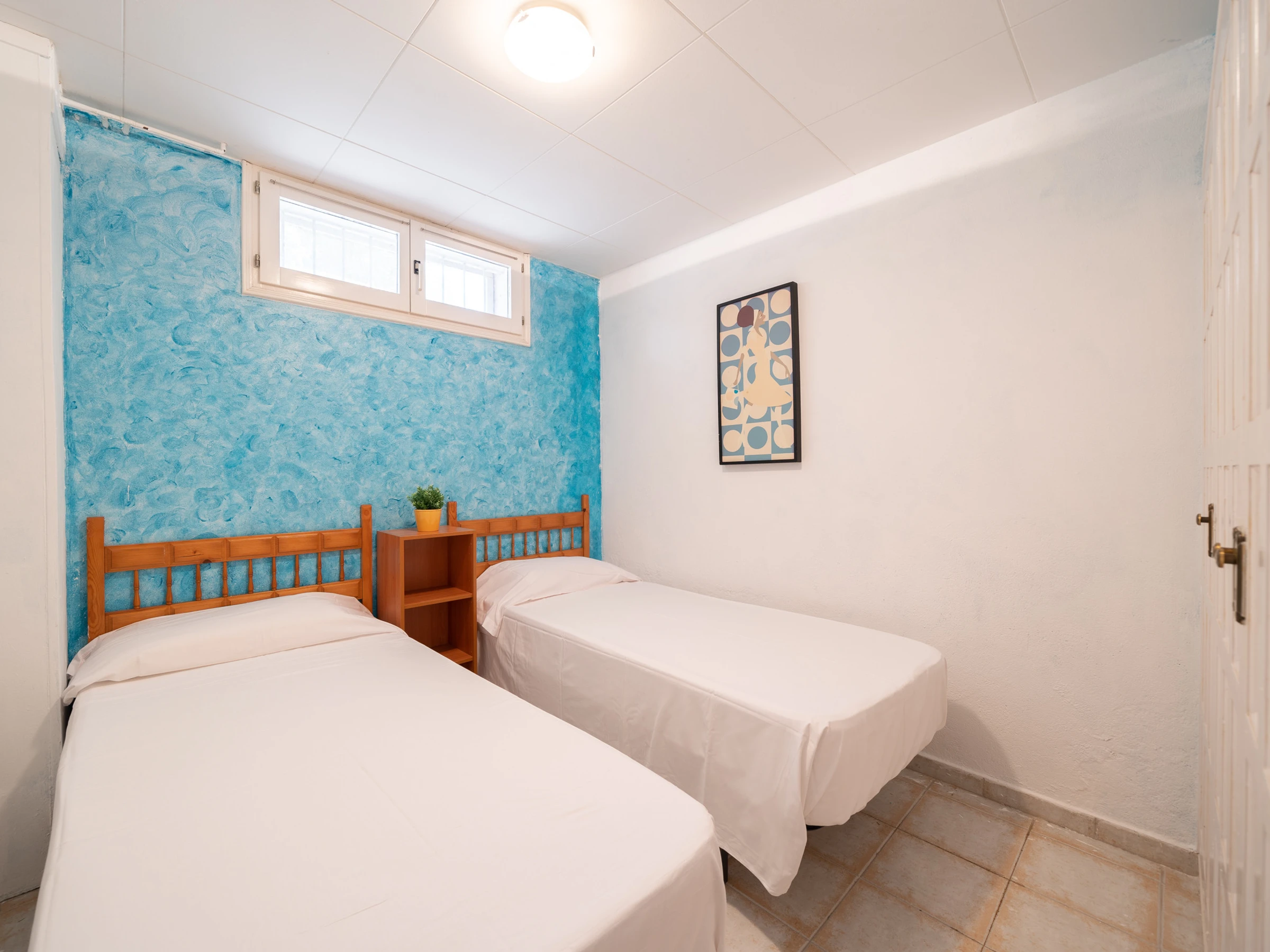 En la planta baja, una amplia sala de estar con barra americana y salida a la terraza, un baño con bañera y dos habitaciones con dos camas individuales (90 cm) cada una.