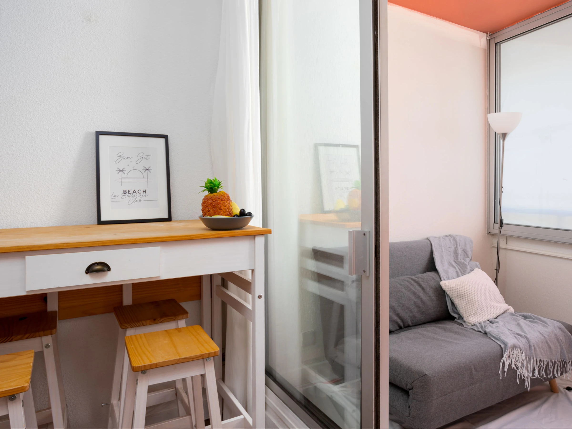 Estudio 19 m2 en el 1° piso. Con mobiliario confortable: salón-comedor con 1 sofá-cama doble (140 cm, 190 cm de longitud), TV (pantalla plana). Rincón-cocina (2 fogones, tostadora, hervidor de agua eléctrico, microondas, cafetera eléctrica). Ducha/WC. Calefacción eléctrica. Muebles de terraza, porche. Vista. El alojamiento dispone de: secador de pelo. Internet (Wifi, gratis). A tener en cuenta: permitido máximo 1 mascota pequeña / perro. Detector de humo. Oferta de un particular según el art. 155, IV del CGI.