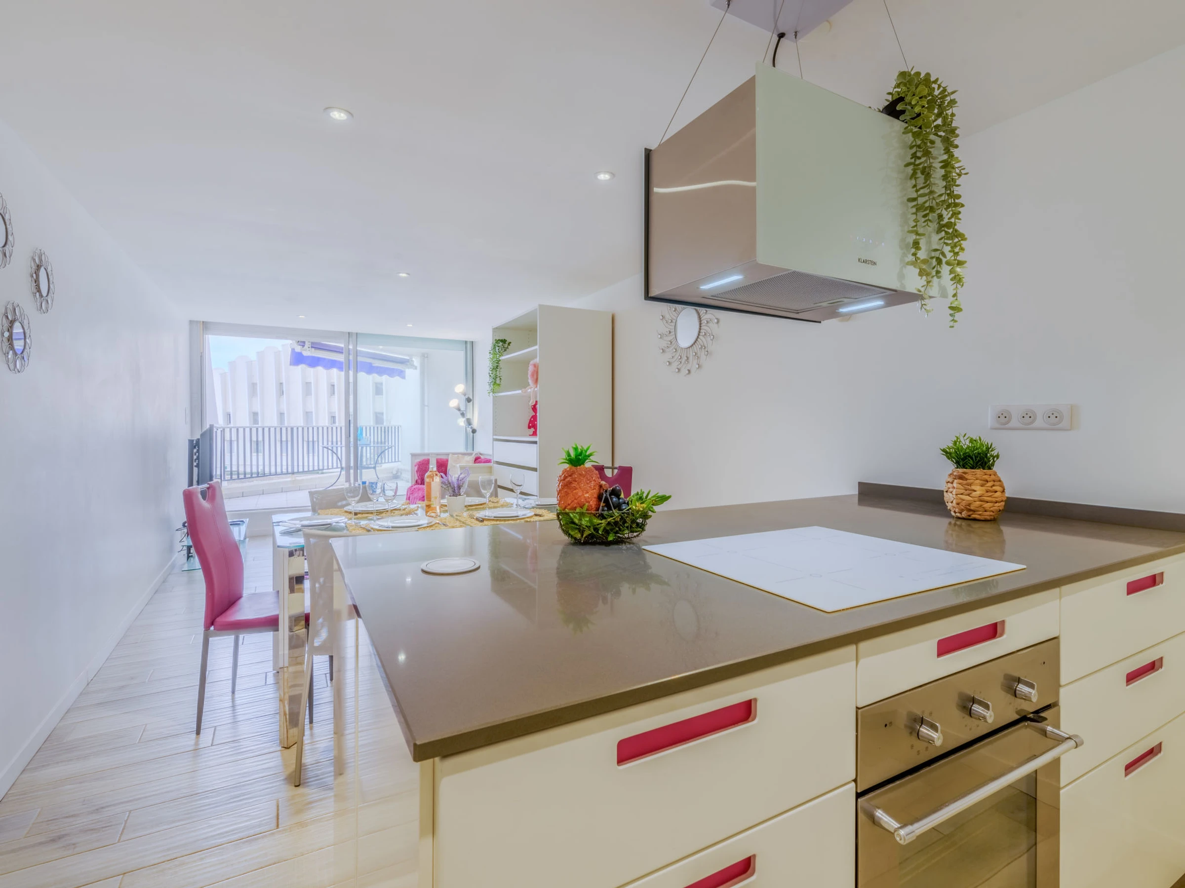 "Le Parador", apartamento de 3 estancias 61 m2 en el 1° piso, orientación sur. Con mobiliario confortable: salón-comedor con 1 sofá-cama doble (140 cm, 190 cm de longitud), TV (pantalla plana). Salida a la terraza, orientación sur. 1 dorm. con 1 cama de matrimonio (140 cm, 190 cm de longitud), persianas eléctricas. Salida a la terraza, orientación norte. 1 dorm. con 2 camas (90 cm, 190 cm de longitud), persianas eléctricas. Salida a la terraza, orientación norte. Cocina abierta (horno, lavavajillas, 4 Placas de inducción, tostadora, hervidor de agua eléctrico, microondas, cafetera eléctrica) con barra americana. Baño, WC separado. Calefacción eléctrica. Terraza 12 m2, orientación sur, 2 terrazas pequeñas 2 m2, orientación norte. Muebles de terraza. Vista al mar y al jardín. El alojamiento dispone de: lavadora, plancha. Internet (Wifi, extra). Garaje n. 24 (1 coche), altura 180 cm, ancho 270 cm. A tener en cuenta: detector de humo, sin ascensor. Oferta de un particular según el art. 155, IV del CGI.