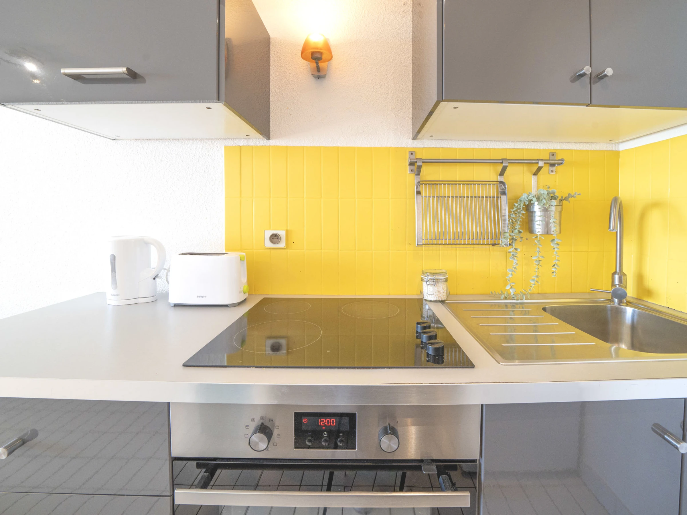 Apartamento de 2 estancias 42 m2 en el 5° piso, orientación sur. Salón-comedor con 1 sofá-cama doble (140 cm, 190 cm de longitud), TV (pantalla plana). Salida a la terraza. 1 dorm. con 1 cama (80 cm, 190 cm de longitud), 1 x 2 literas (80 cm, 190 cm de longitud). Cocina abierta (horno, 3 placas de vitrocerámica, tostadora, hervidor de agua eléctrico, microondas, congelador, cafetera eléctrica). Baño, WC separado. Terraza 9 m2 parcialmente cubierta, orientación sur. Muebles de terraza. Vista muy bonita al mar. El alojamiento dispone de: lavadora. Internet (Wifi, extra). Plaza de aparcamiento. A tener en cuenta: detector de humo.