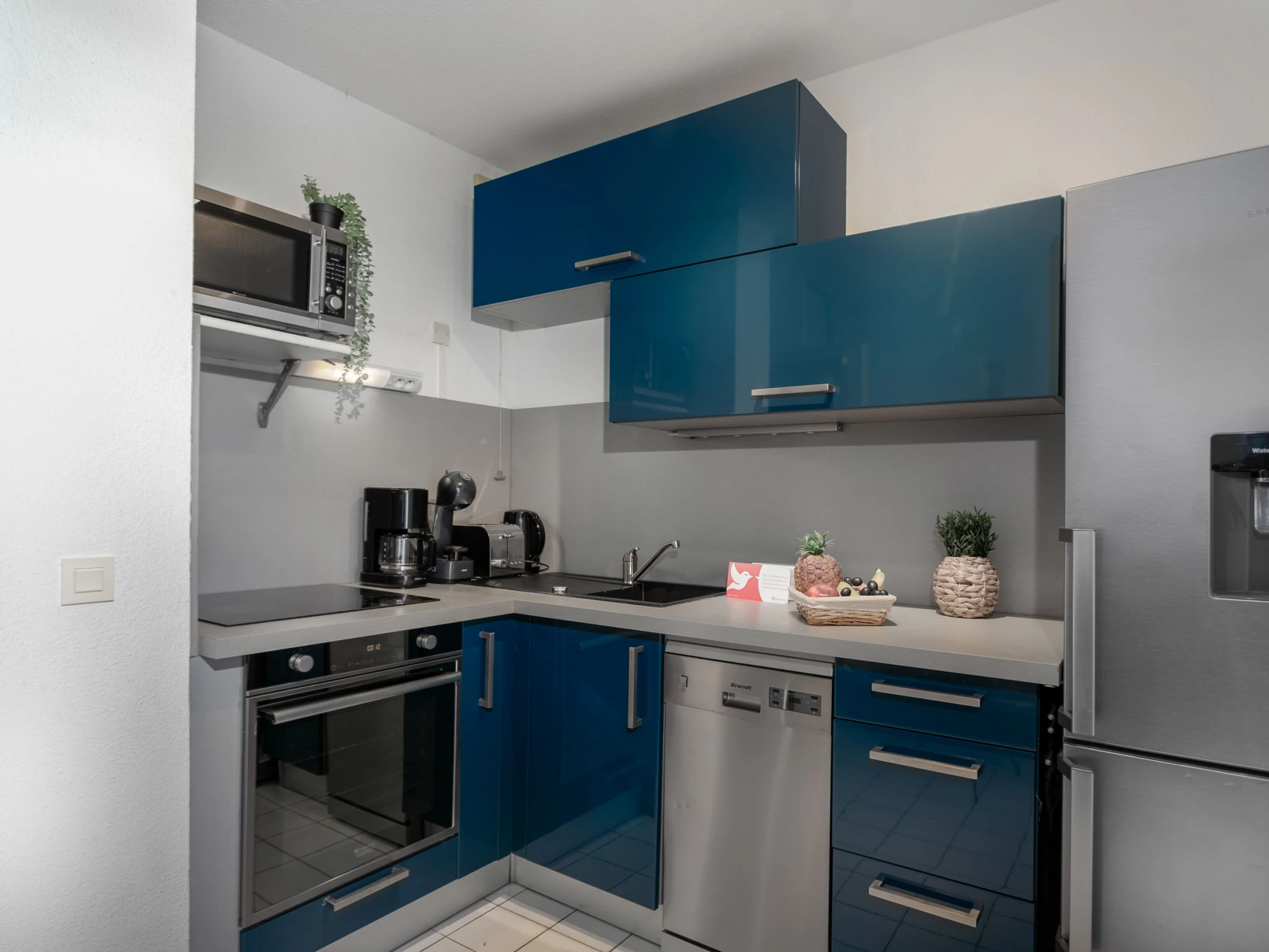 Apartamento de 2 estancias 25 m2, en planta baja elevada. Salón-comedor con TV (pantalla plana). Salida a la terraza. 1 dorm. 5 m2, pequeño con 1 cama de matrimonio (140 cm, 190 cm de longitud). Entrada con 1 x 2 literas (90 cm, 190 cm de longitud). Cocina abierta (horno, lavavajillas, 4 placas de vitrocerámica, tostadora, hervidor de agua eléctrico, microondas, congelador, cafetera eléctrica). Ducha, WC separado. Aire acondicionado. Terraza-jardín 10 m2, orientación noroeste. Muebles de terraza. El alojamiento dispone de: Internet (Wifi). Plaza de aparcamiento. A tener en cuenta: permitido máximo 1 mascota / perro. Detector de humo, sin ascensor. [hidden]