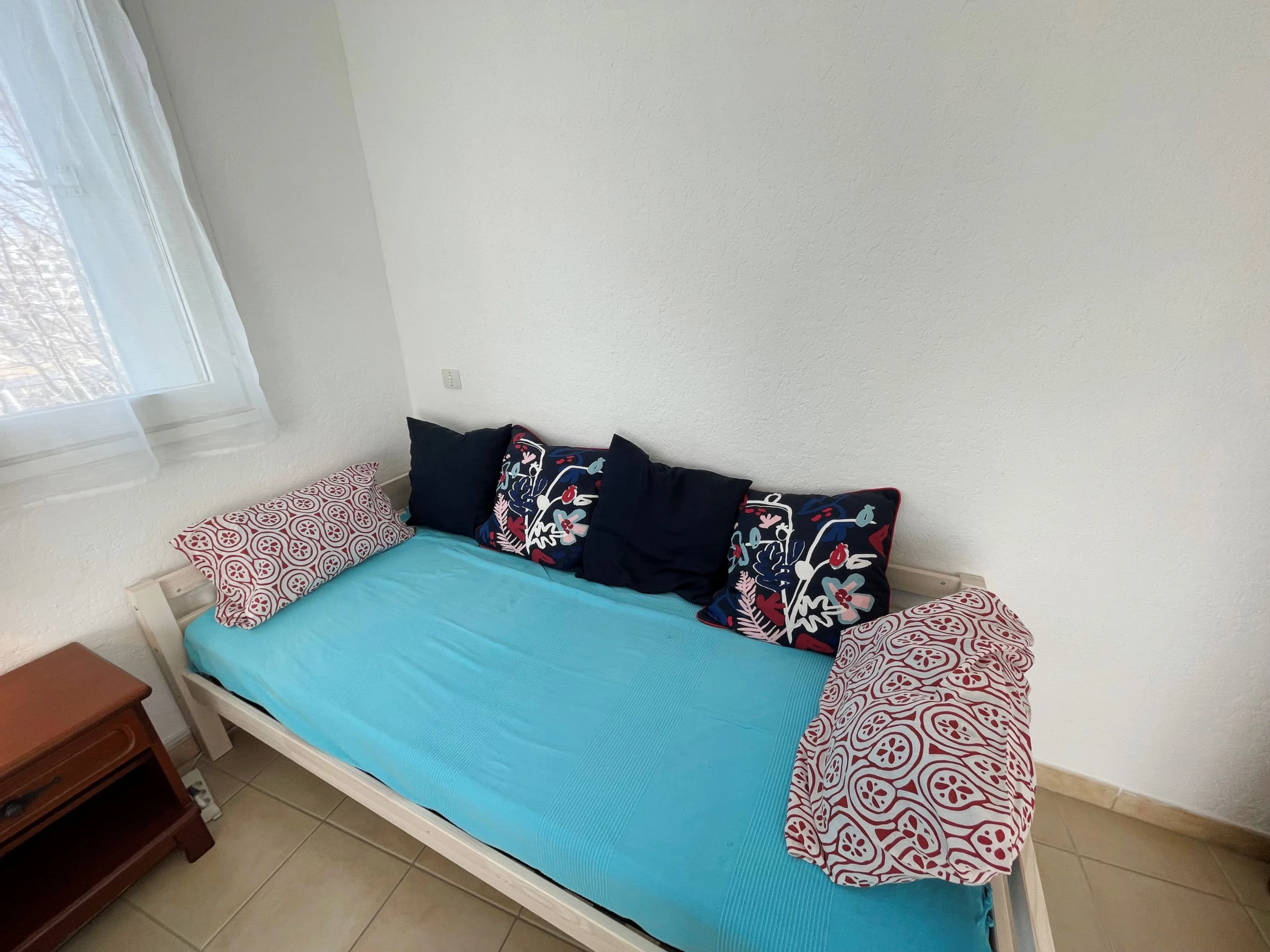 Apartamento de 3 estancias 67 m2 en el 3° piso. Parcialmente reformado: salón-comedor con TV (pantalla plana). 1 dorm. con 1 cama de matrimonio (140 cm, 190 cm de longitud). 1 dorm. con 1 cama (90 cm, 190 cm de longitud), 1 cama de matrimonio (140 cm, 190 cm de longitud). Rincón-cocina (horno, lavavajillas, 3 placas de vitrocerámica, tostadora, hervidor de agua eléctrico, microondas, congelador, cafetera eléctrica). Ducha, WC separado. Calefacción eléctrica. Terraza 6 m2, cubierta terraza grande 50 m2, orientación sur. Muebles de terraza. Vista bonita al mar. El alojamiento dispone de: lavadora. Internet (Wifi, extra). Garaje, altura 180 cm, ancho 390 cm. A tener en cuenta: permitido máximo 1 mascota pequeña / perro. Detector de humo. Oferta de un particular según el art. 155, IV del CGI.