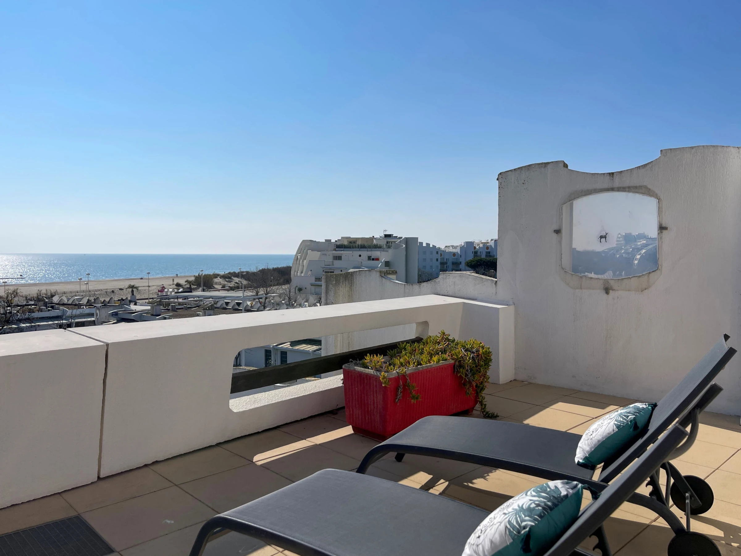 Residencia "Jardins d'Ulysse II", de 5 plantas. En el barrio de la Motte du Couchant, a 1 km del centro, a 100 m del mar, a 80 m de la playa. En el complejo: ascensor. Centro comercial 50 m, restaurante, a 25 minutos del centro andando, parada autobús 400 m, estación de tren "Montpellier" 25 km, playa de arena, piscina cubierta 3 km, piscina termal "Thalasso Spa" 3 km. Puerto deportivo 900 m, campo de golf (18 hoyos) 3.5 km, escuela de vela 900 m, tenis 3 km, centro ecuestre 1 km. Atracciones en los alrededores: Le Seaquarium du Grau Du Roi 10 km, Les Remparts d'Aigues Mortes 12 km, Les Saintes Maries de la Mer 40 km. A tener en cuenta: aeropuerto en la proximidad 20 km de la casa.