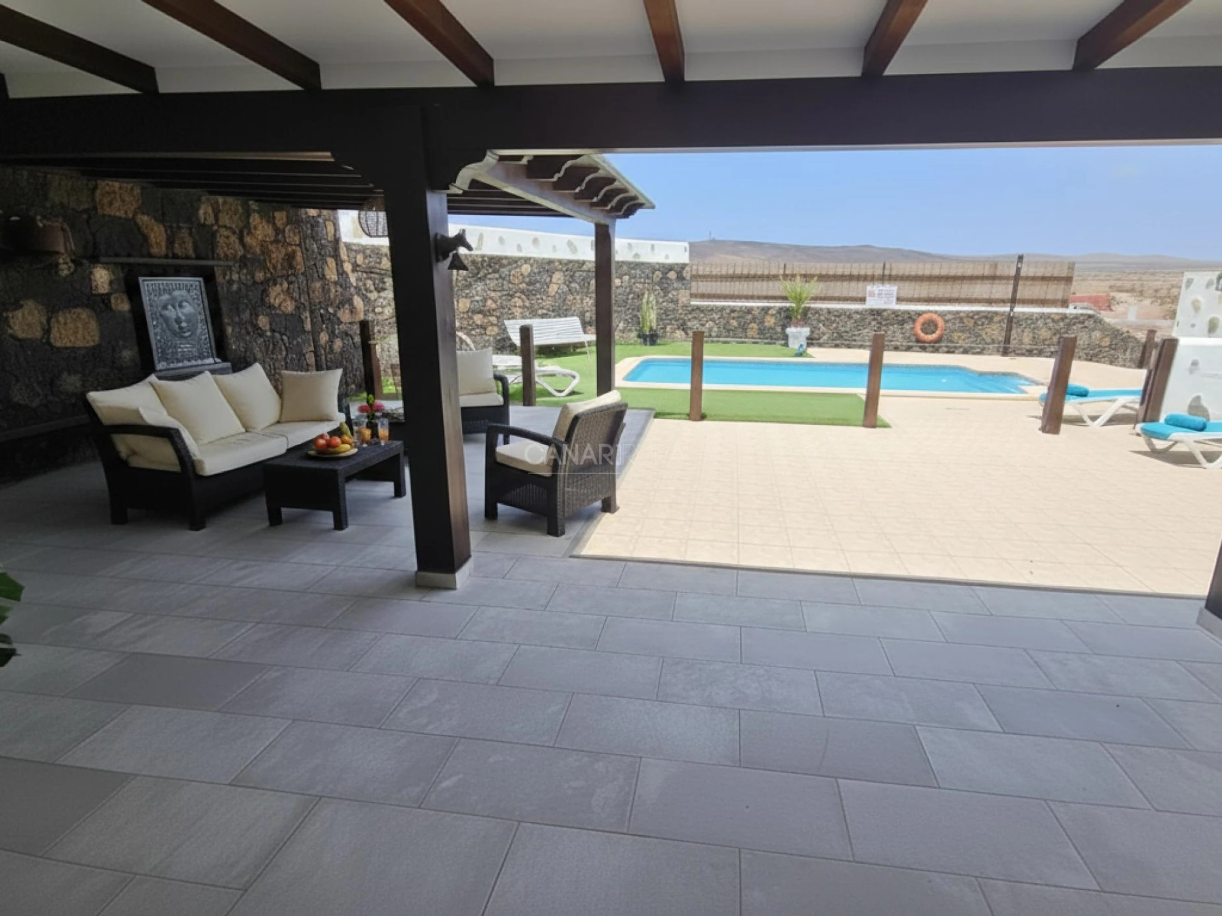 Es una casa cómoda y acogedora con una preciosa piscina privada en su terraza y un porche con mesas y sillas y barbacoa para poder deleitar de un buen almuerzo con las magníficas vistas al auténtico y desértico paisaje majorero.