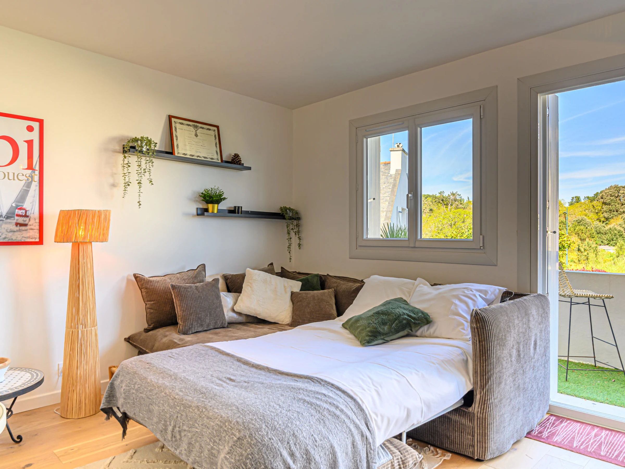 "Ty Breiz", apartamento de 2 estancias 40 m2, en la planta baja. Reformado en 2022: salón-comedor con 1 sofá-cama doble (1 x 140 cm, 190 cm de longitud), TV (pantalla plana). Salida al balcón. 1 dorm. con 1 cama de matrimonio (1 x 160 cm, 190 cm de longitud). Cocina abierta (horno, lavavajillas, 3 Placas de inducción, tostadora, hervidor de agua eléctrico, microondas, congelador, cafetera eléctrica). Ducha, WC separado. Calefacción eléctrica. Balcón 5 m2, orientación este y orientación sur. Muebles de balcón. El alojamiento dispone de: lavadora, secadora, cuna, secador de pelo. Internet (Wifi, gratis). Plaza de aparcamiento n. 2. A tener en cuenta: permitido máximo 1 mascota / perro. Detector de humo. Oferta de un particular según el art. 155, IV del CGI. [hidden]