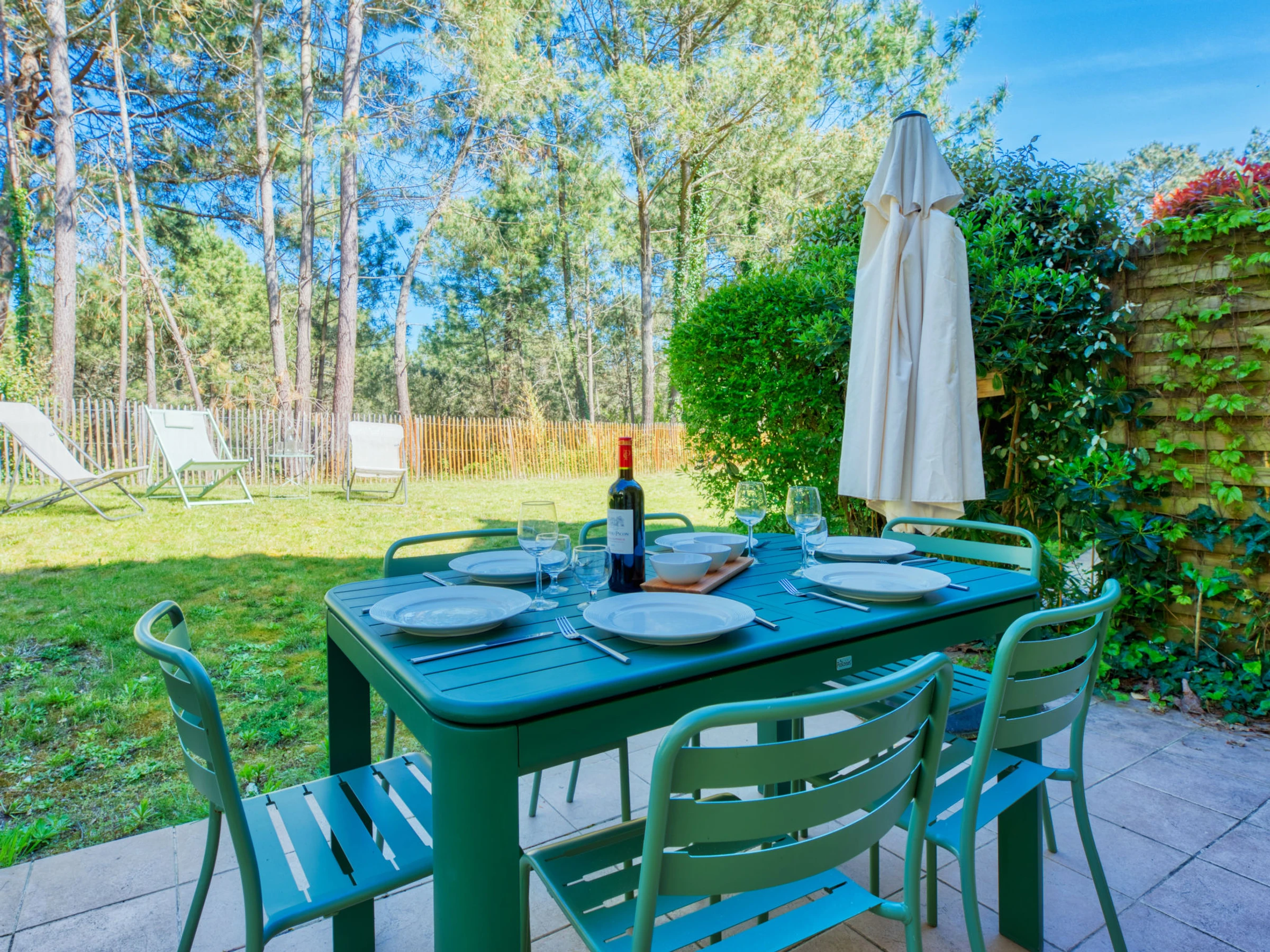 Pueblo vacacional "Domaine Golf Resort", rodeada de árboles. En la localidad, a 2 km del centro de Lacanau ocean, a 2 km del mar, a 3 km de un lago, a 2 km de la playa, en campo de golf. Comunitario: piscina vallada (400 m2, Disponible por temporada: [hidden] [hidden] [hidden] horario piscina: 10:00[hidden]19:45). Piscina para niños, tenis de mesa, básquet, petanca, campo de voleibol, parque infantil. En el complejo: recepción, lavandería (uso comunitario, extra), alquiler de bicicletas. Servicio a domicilio de panecillos y servicio a domicilio de bebidas. Aparcamiento. Tienda 2 km, supermercado 2 km, alquiler de bicicletas 300 m, parada autobús "Marie Curie" 1.7 km, playa de arena "Plage des Ecureuils" 4 km, lago Du Moutchic 6 km. Campo de golf (18 hoyos) 500 m, escuela de surf 2 km, tenis, centro ecuestre 12 km, caminos para bicicletas 200 m. Atracciones en los alrededores: Bordeaux 60 km, Saint Emilion 60 km, Dune du Pyla 60 km.