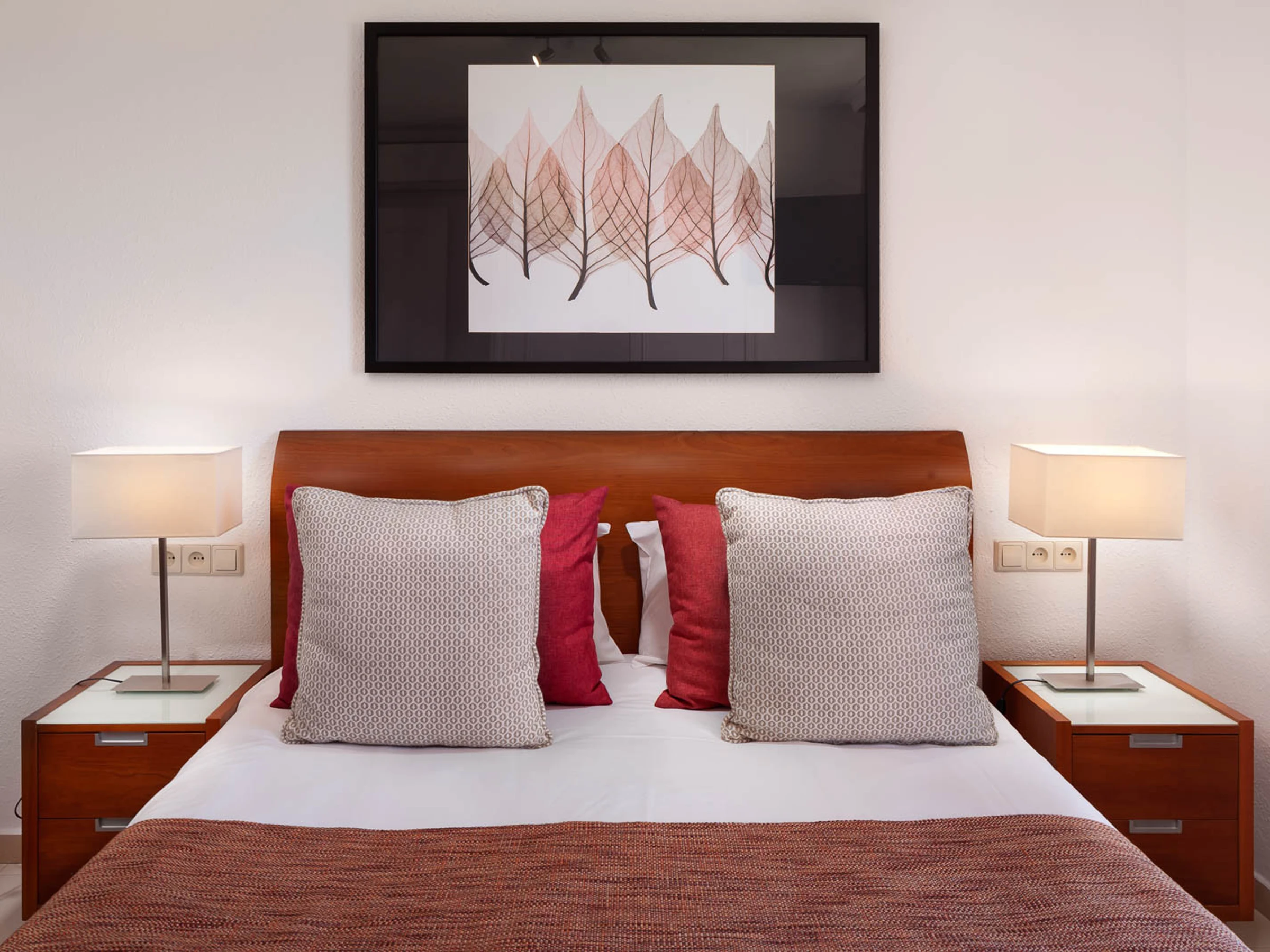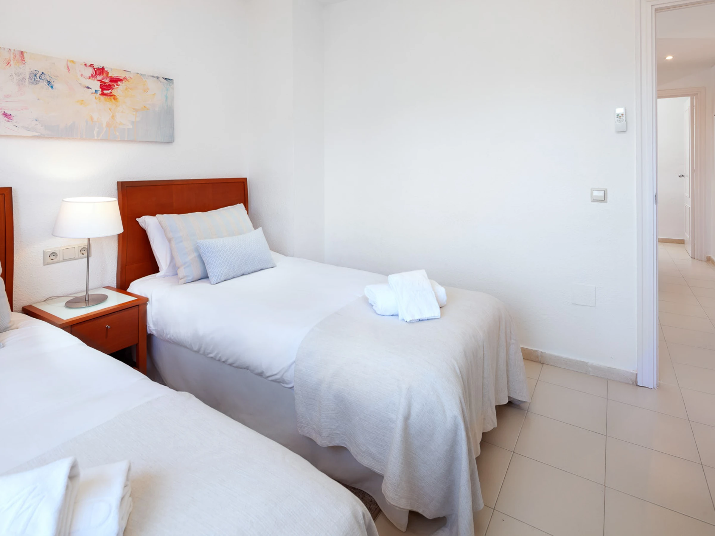 Dispone de mobiliario jardín, 10 m² de terraza, plancha, caja fuerte, acceso internet (wifi), secador, zona infantil, pista de tenis, pista de padel, alarma, calefacción bomba de calor, aire acondicionado, piscina comunitaria+infantil, piscina climatizada comunitaria, parking aire libre en edificio cercano, 2 Televisores, tv satelite (Idiomas: Español, Inglés, Alemán, Francés), radio.