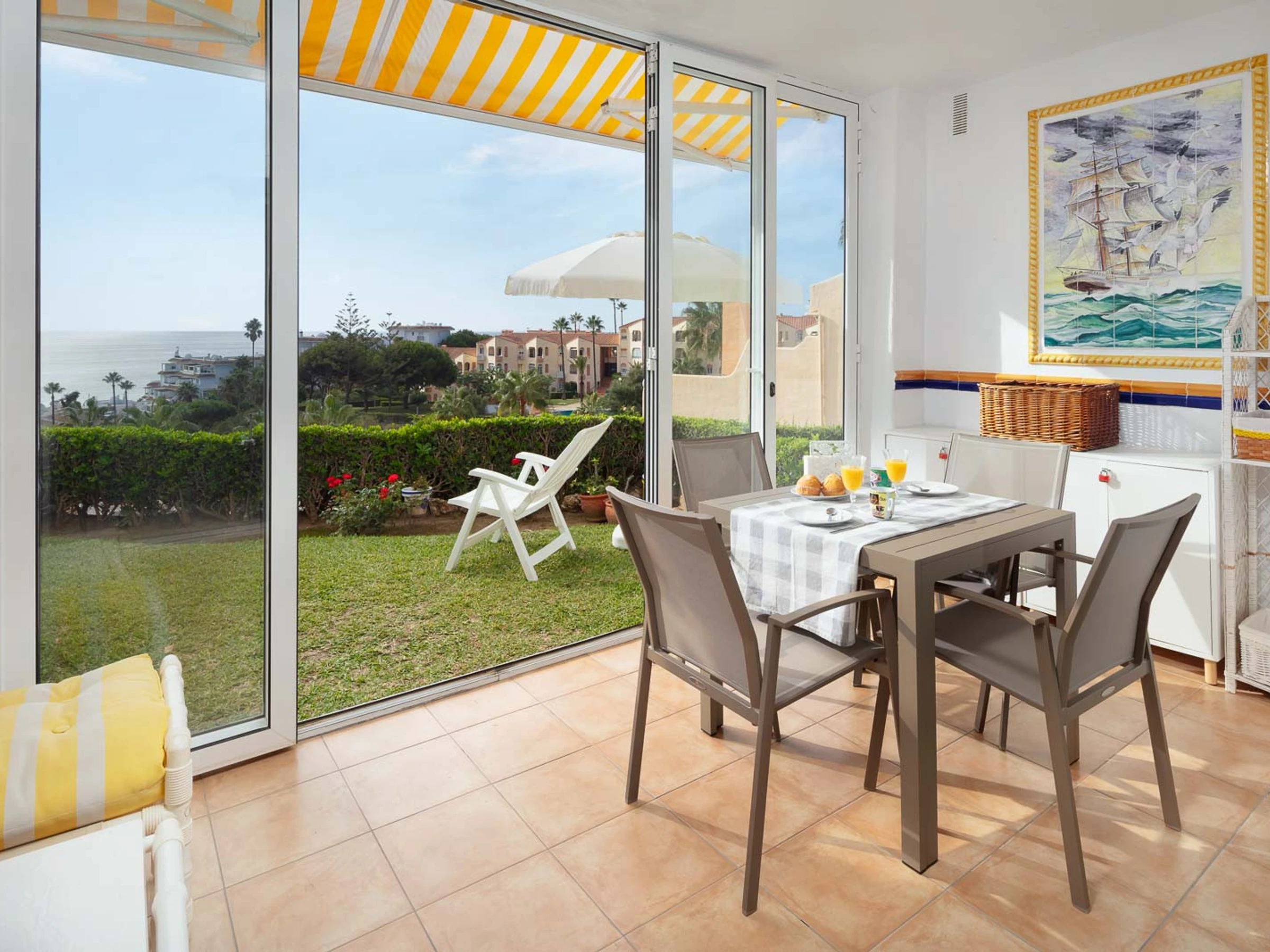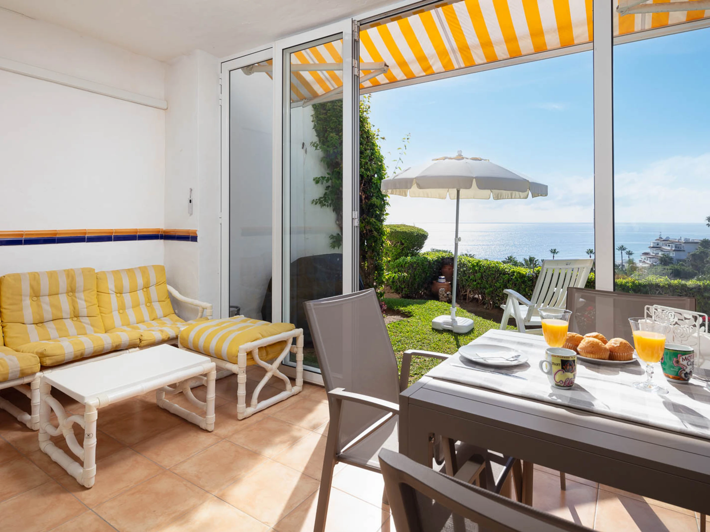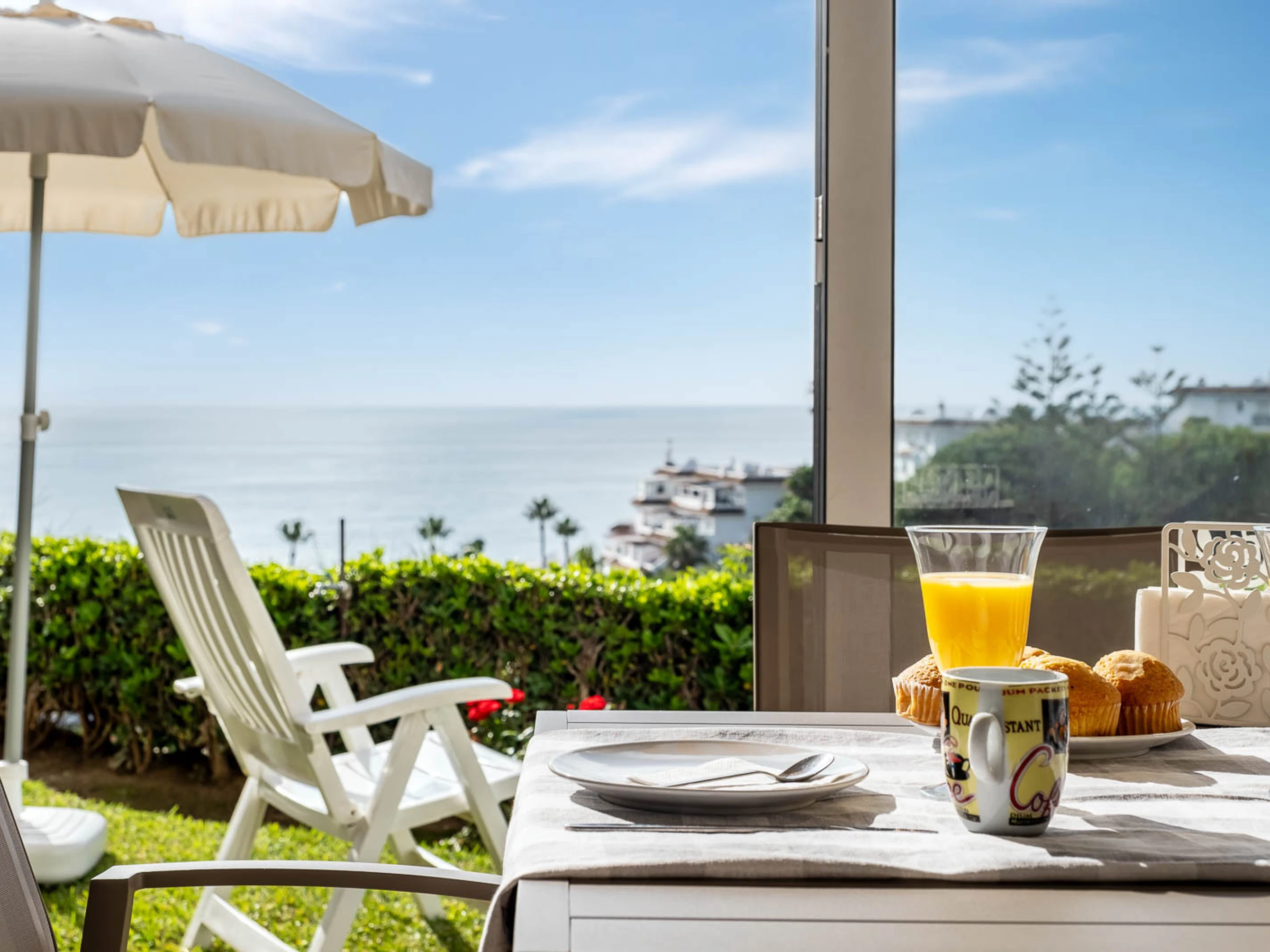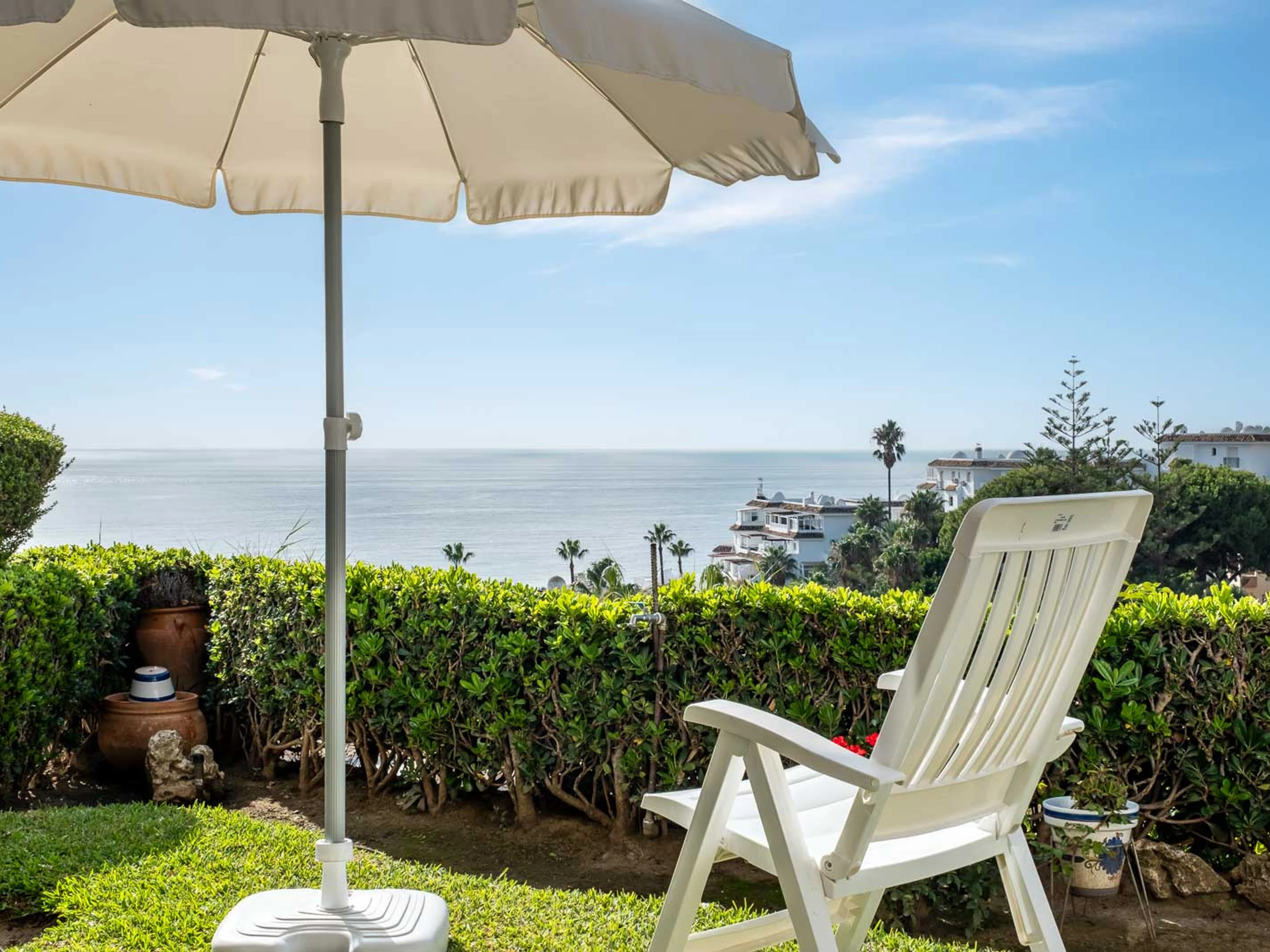 - Terraza cerraza con acceso directo a pequeño jardin con vistas panoramicas al mar.
