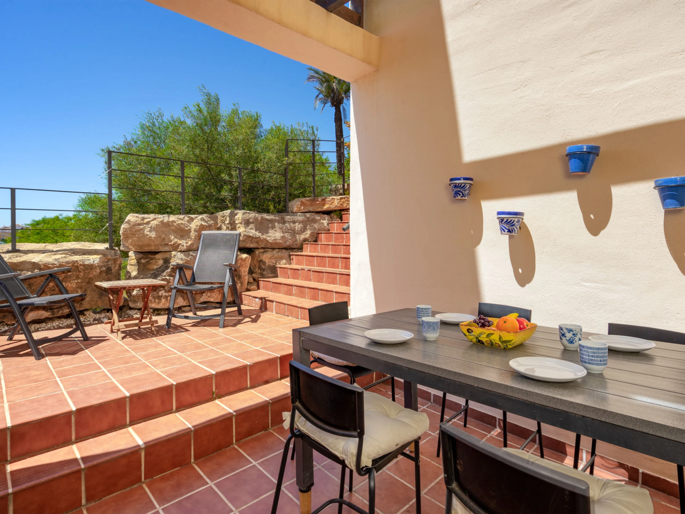 Casa de apartamentos "Terrazas Calamijas", muy bonito, agradable. En el distrito La Cala de Mijas, lugar tranquilo, soleado, a 900 m del mar, orientación sureste. Comunitario: jardín, piscina en forma de riñon (7 x 20 m, 140 - 140 cm de profundidad, Disponible por temporada: [hidden] - [hidden] Piscina para niños, ducha exterior. Acceso por escaleras (30 escalones) hasta la casa. Aparcamiento n. 236. Tienda 400 m, supermercado, restaurante, bar 300 m, panadería 150 m, café 300 m, parada autobús "Lidl La Cala" 700 m, playa de arena 900 m. Vecindario muy sensible a ruidos. Se ruega respetar la tranquilidad y normas de buen comportamiento. La urbanizacion cuenta con pista de padel.
