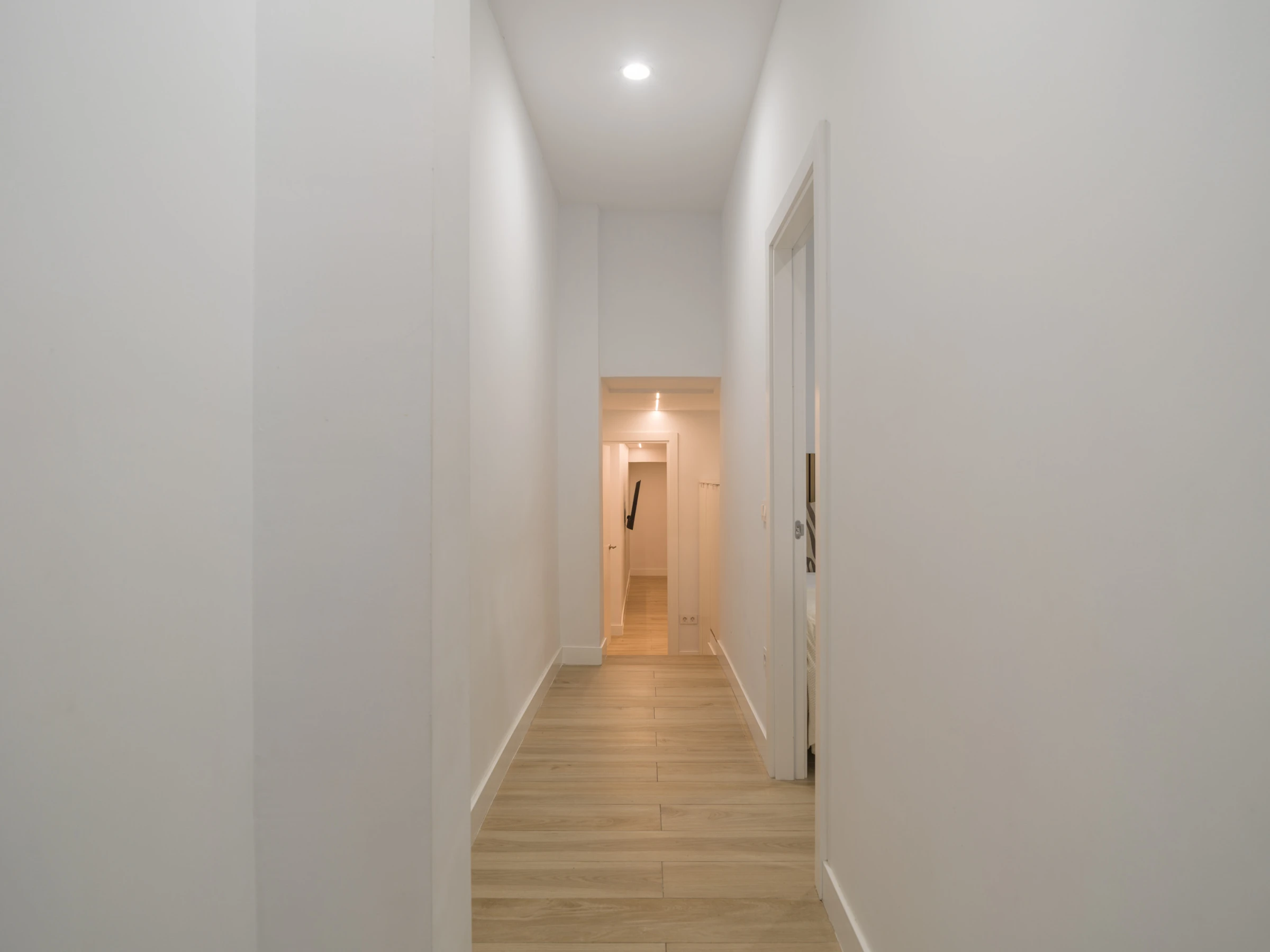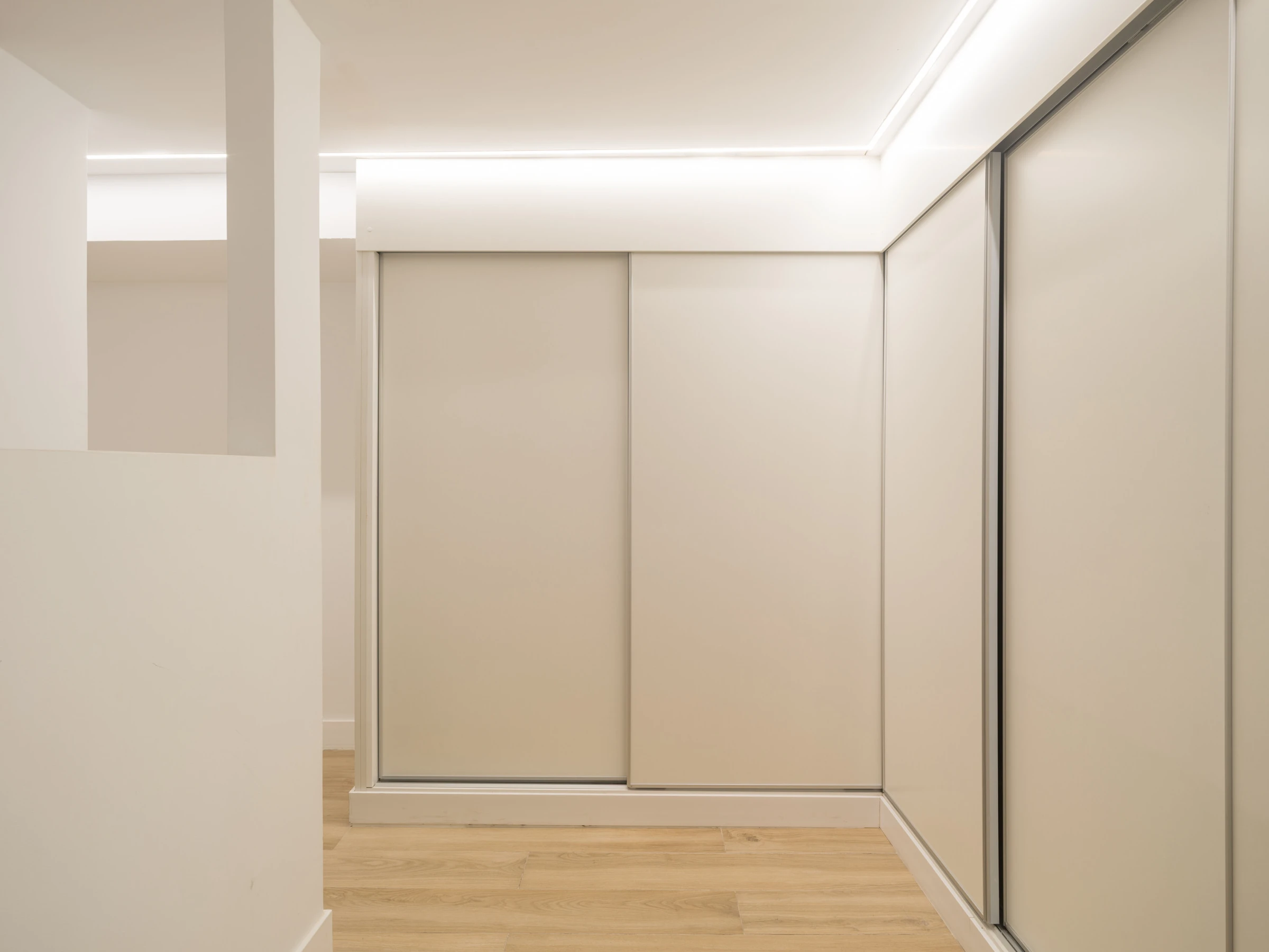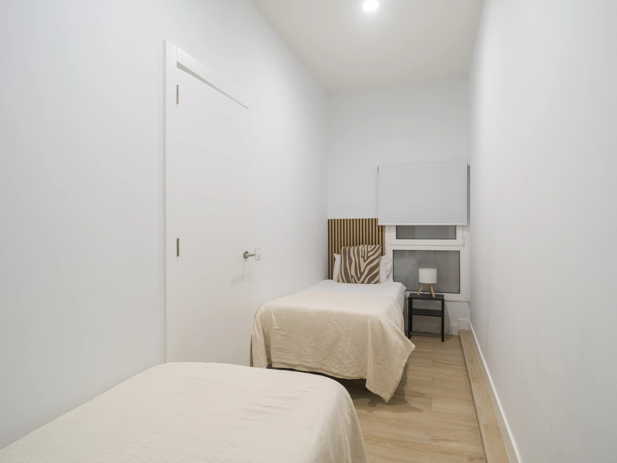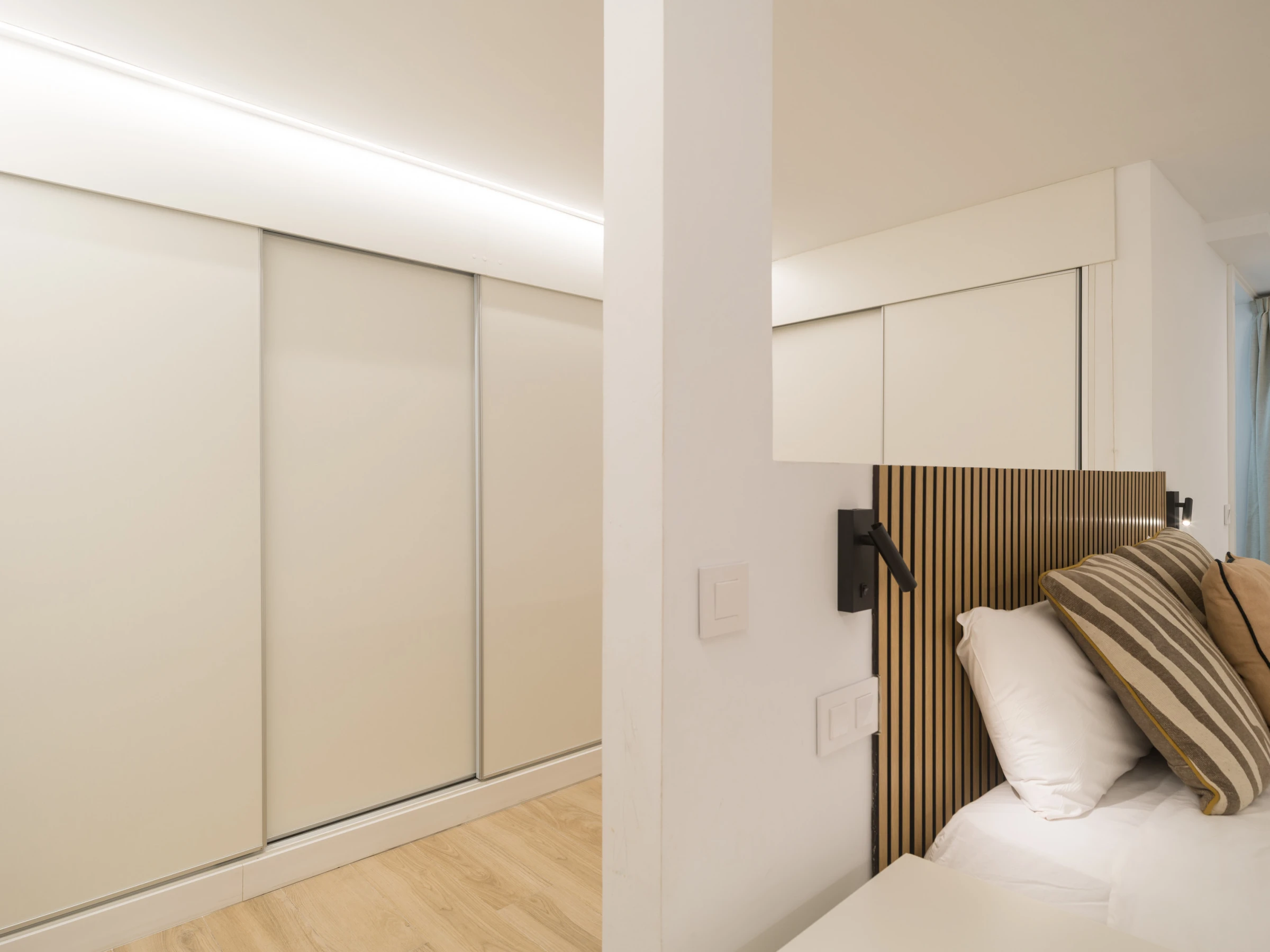 La vivienda cuenta con dos dormitorios, el primero con una cama queen size, al final de casa, para llegar a él hay que bajar dos peldaños, con un gran vestidor, smart tv y baño y el otro dos camas individuales, los cuales, ofrecen flexibilidad para diferentes configuraciones de huéspedes. Los dos baños con ducha garantizan comodidad y privacidad durante su estancia, un baño está en la suite y el otro en las zonas comunes.