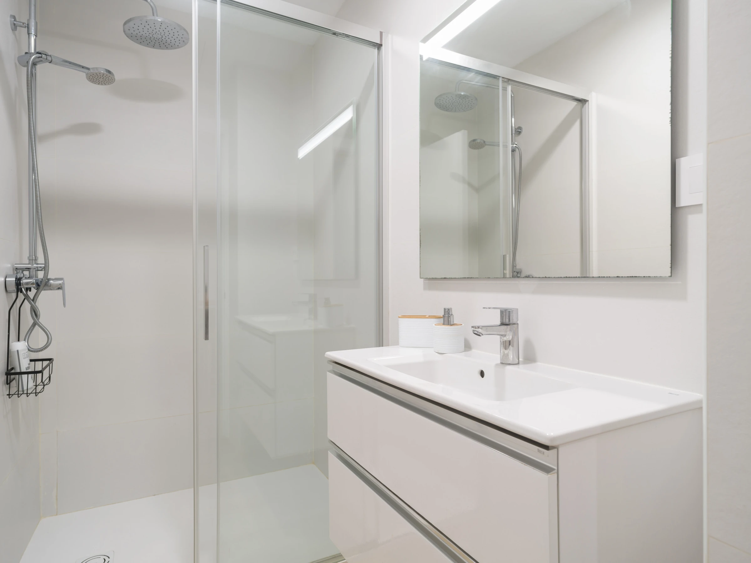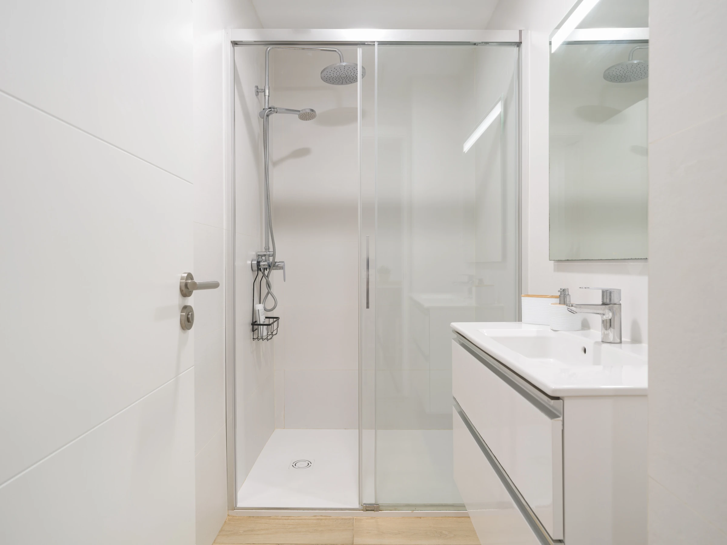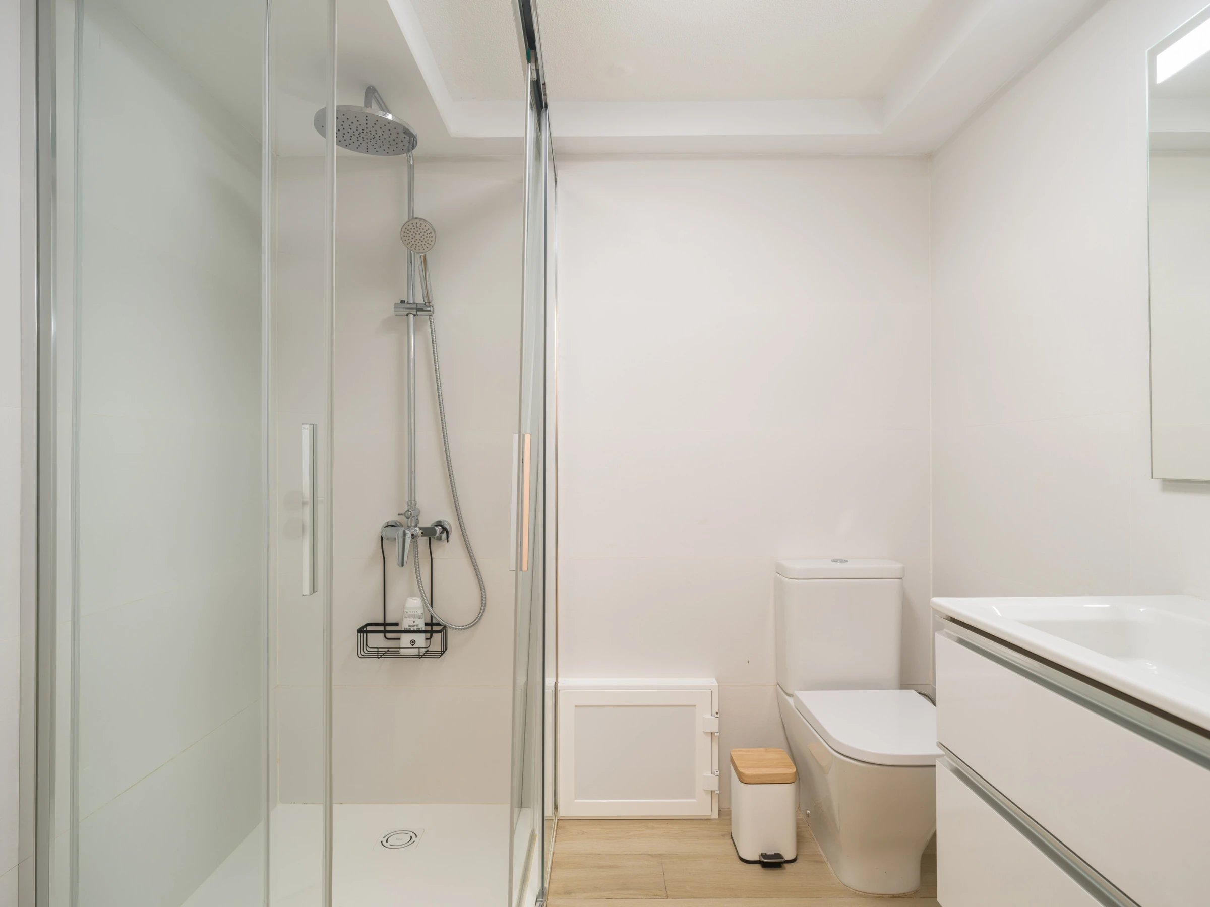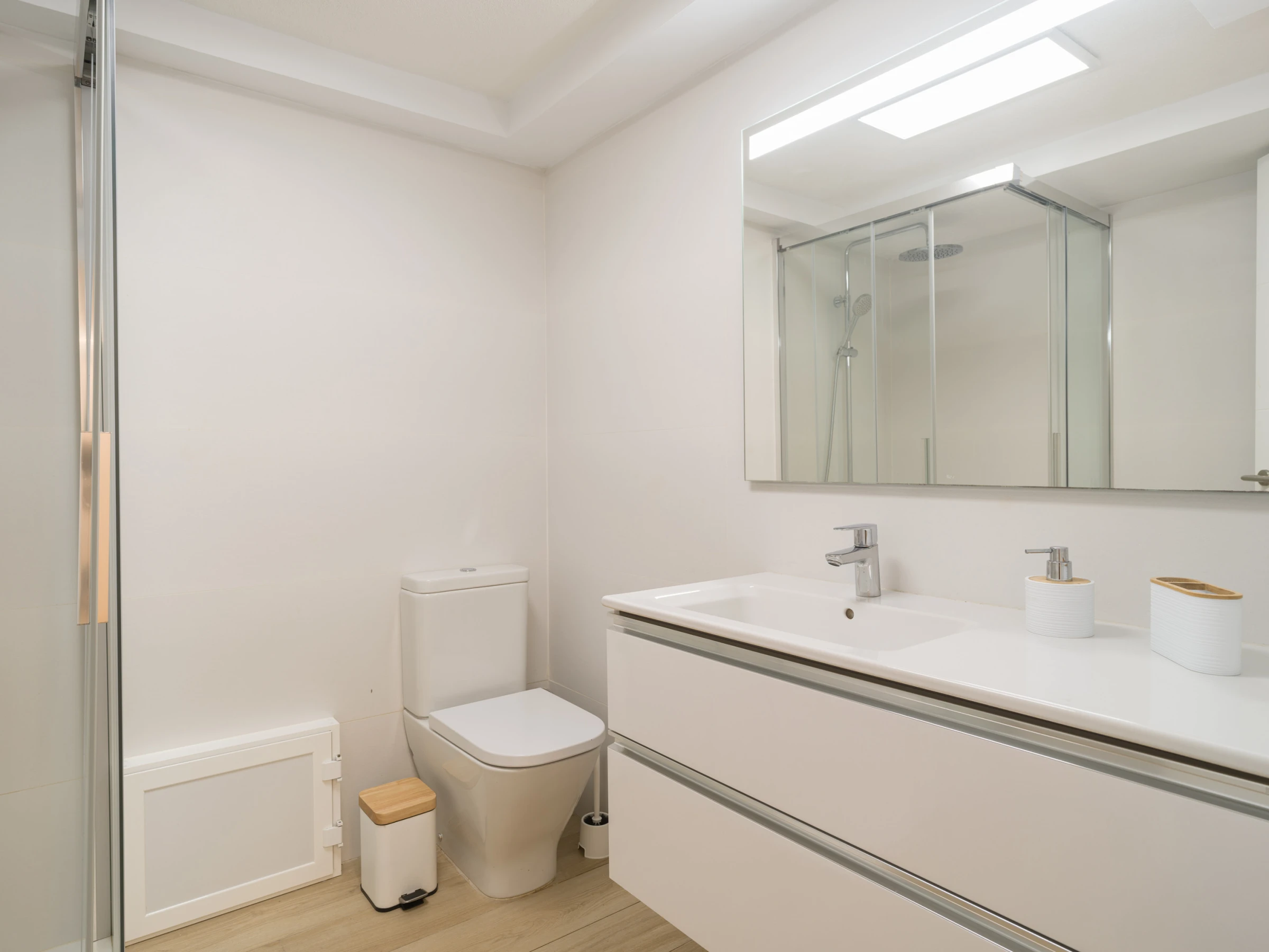 La vivienda cuenta con dos dormitorios, el primero con una cama queen size, al final de casa, para llegar a él hay que bajar dos peldaños, con un gran vestidor, smart tv y baño y el otro dos camas individuales, los cuales, ofrecen flexibilidad para diferentes configuraciones de huéspedes. Los dos baños con ducha garantizan comodidad y privacidad durante su estancia, un baño está en la suite y el otro en las zonas comunes.