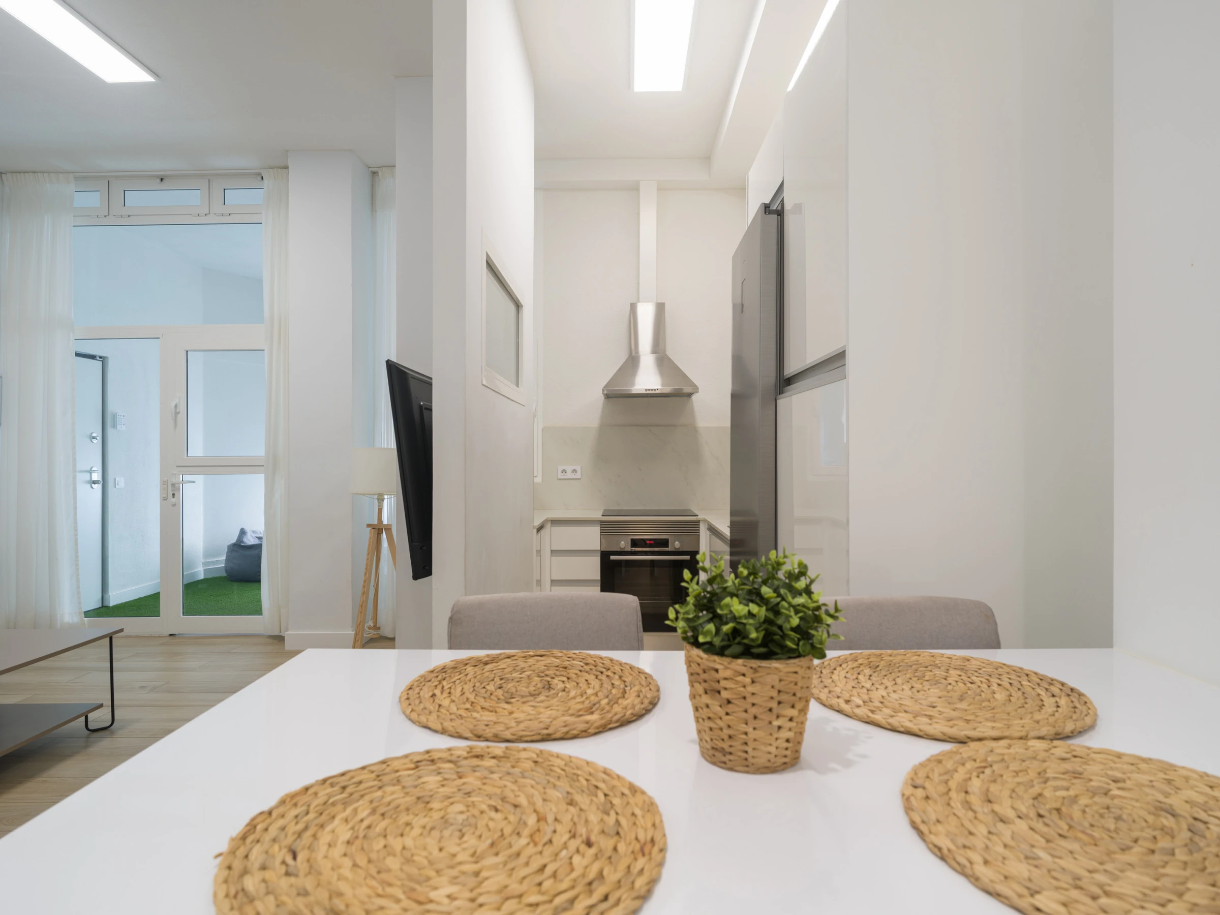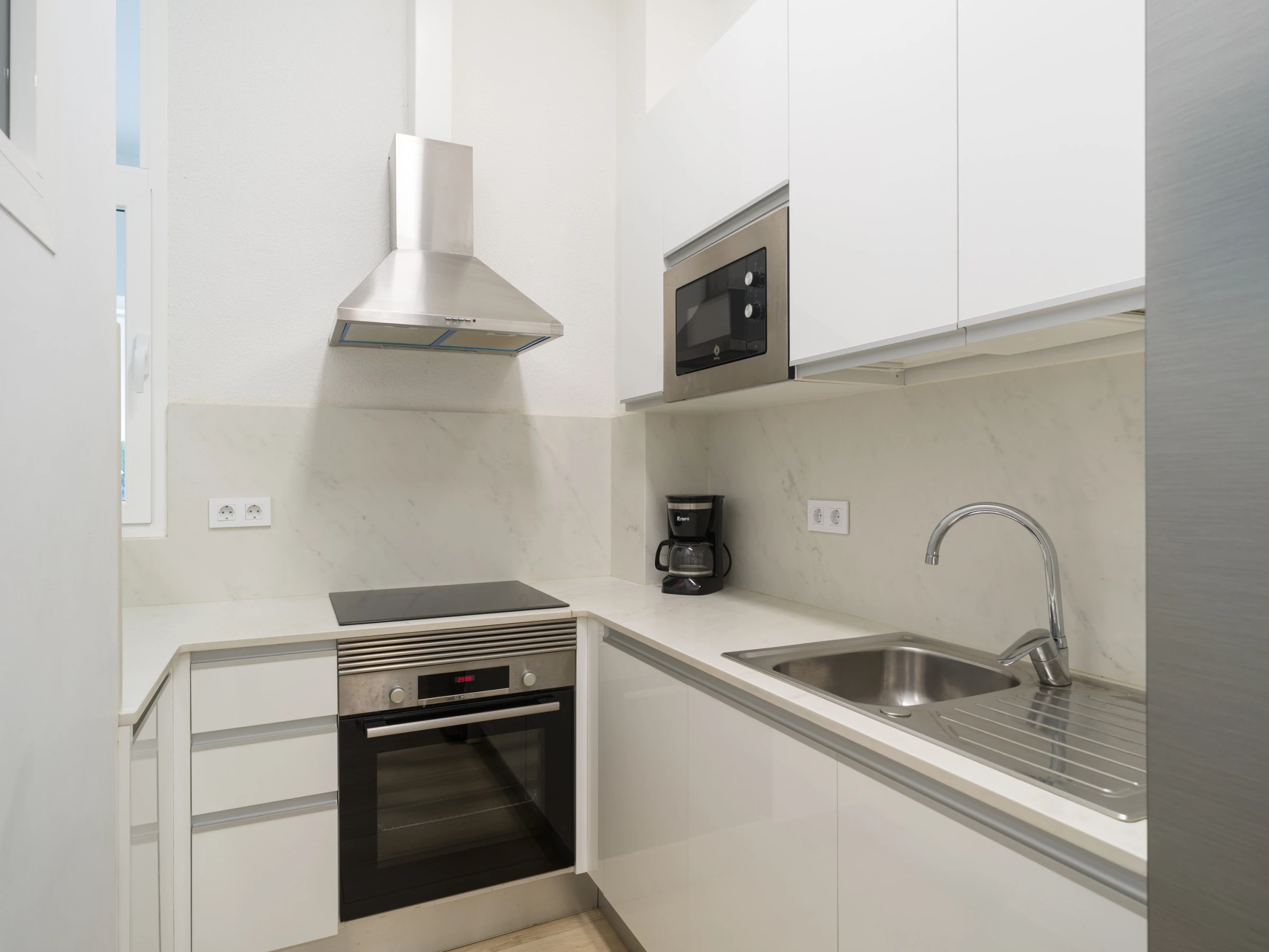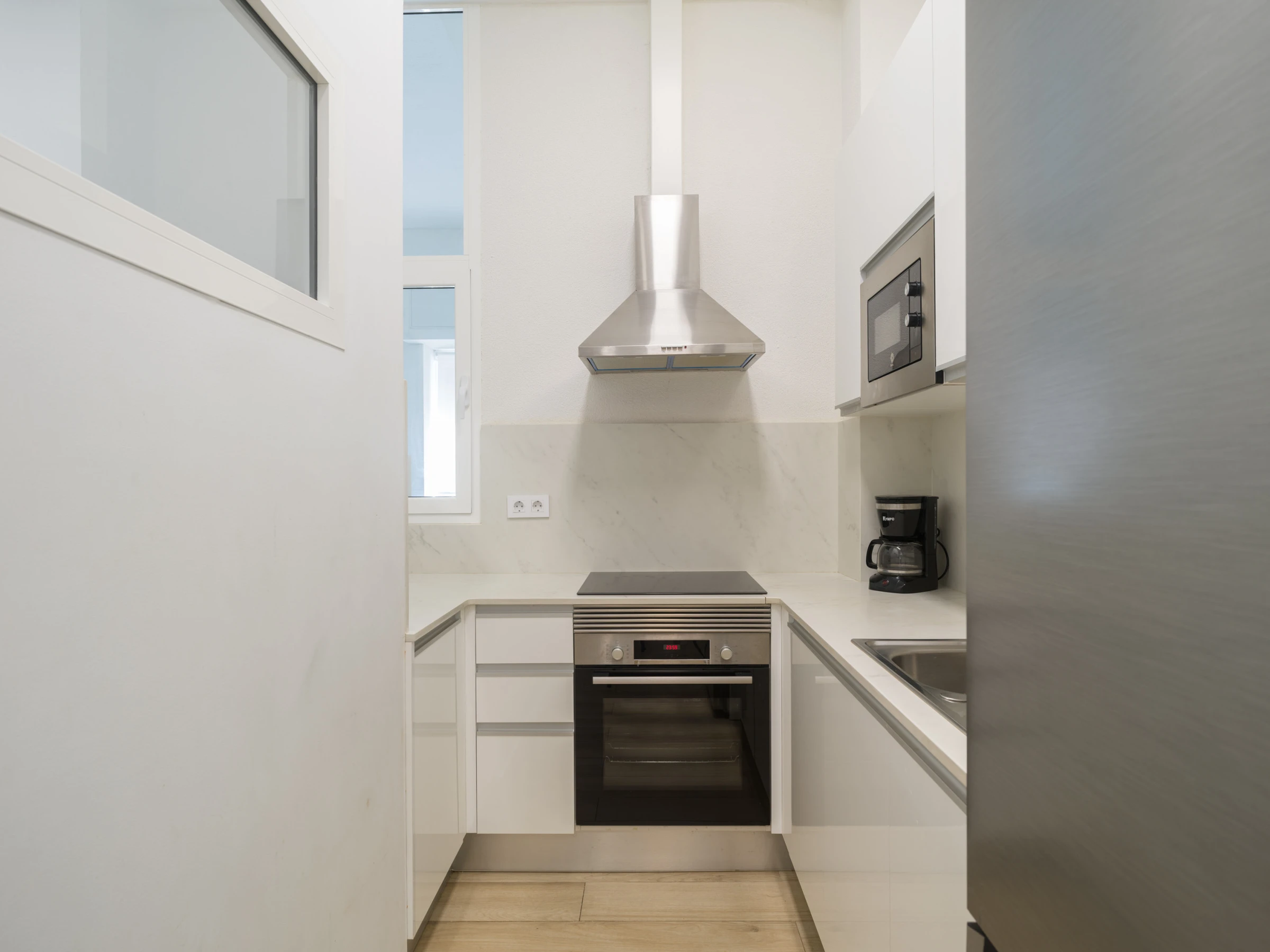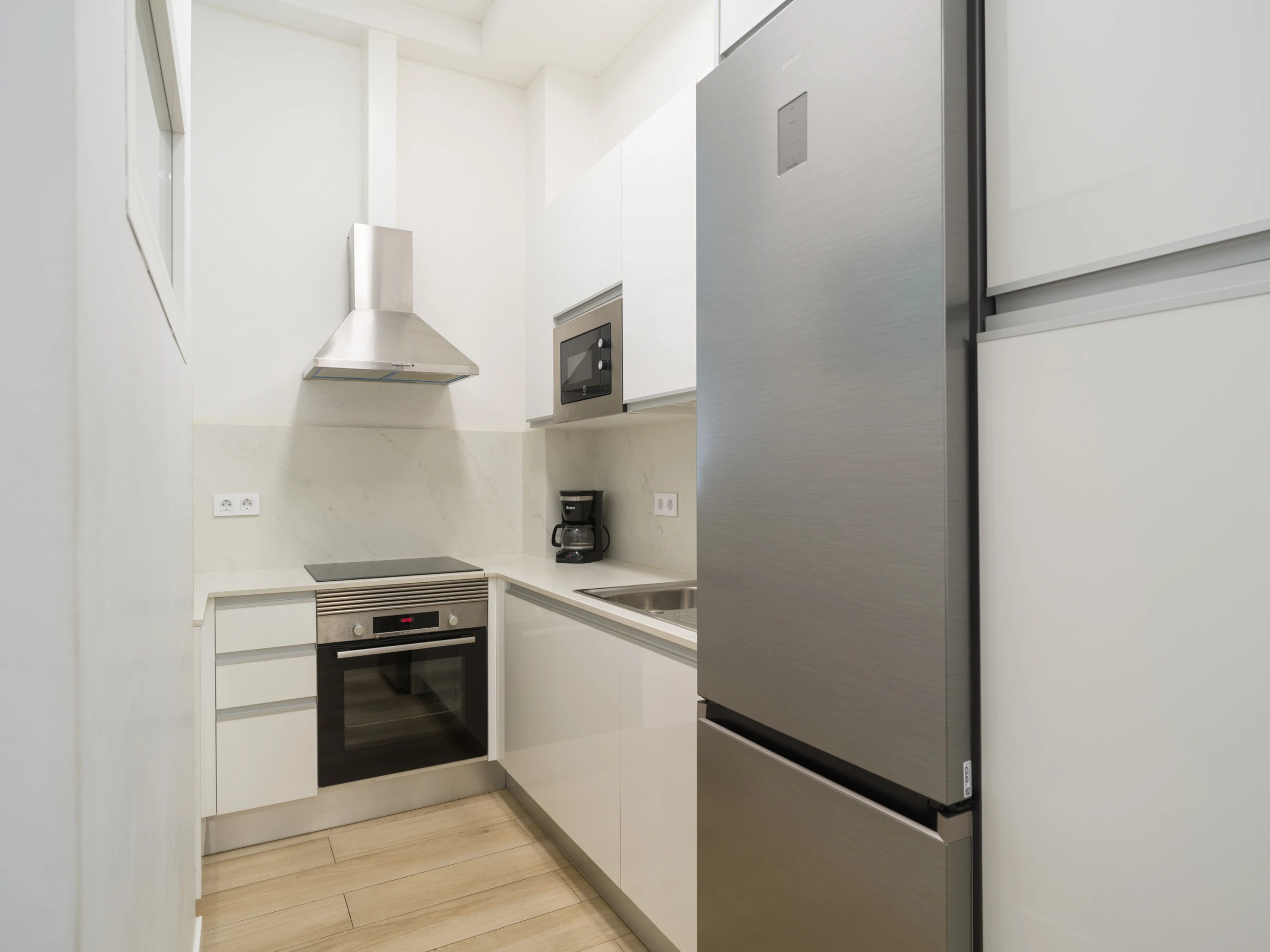 La cocina independiente está totalmente equipada con electrodomésticos de última generación, incluyendo cocina de inducción, nevera, congelador, lavadora, horno, microondas, cafetera, tostadora, hervidor, exprimidor y una completa dotación de menaje y utensilios de cocina. Esto permite a los huéspedes preparar comidas y disfrutar de momentos gastronómicos.